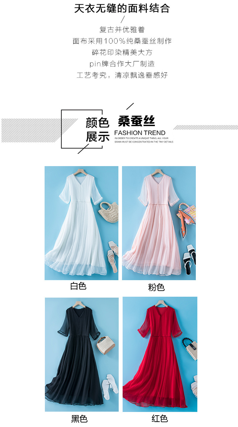 항주 실크 원피스 여성 여름 새로운 7 점 소매 슬림 A-워드 요정 스커트 도매스토어 가기