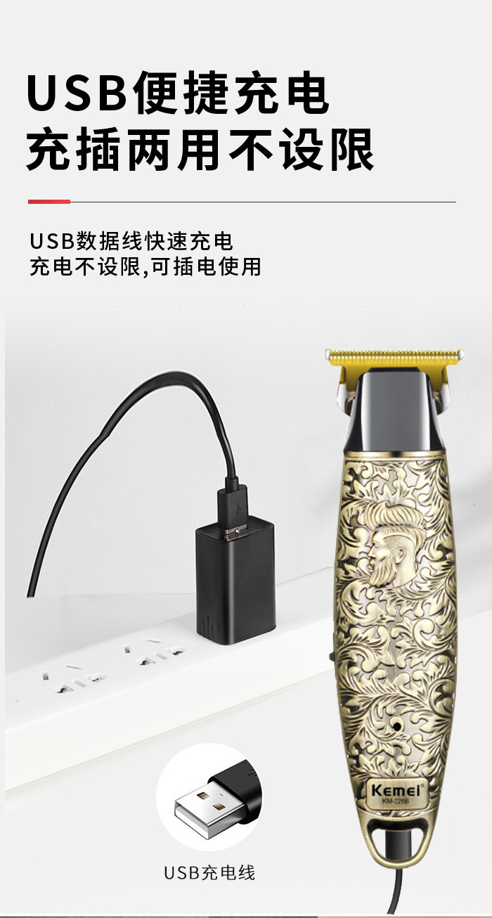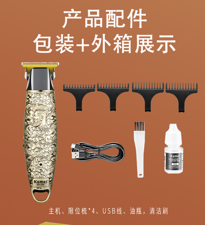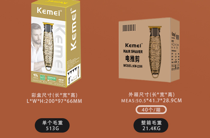 Kemei KM-2266 국경 간 복고풍 금속 바디 미용실 전문 전기 클리퍼 새로운 스마트 디지털 디스플레이 헤어 클리퍼