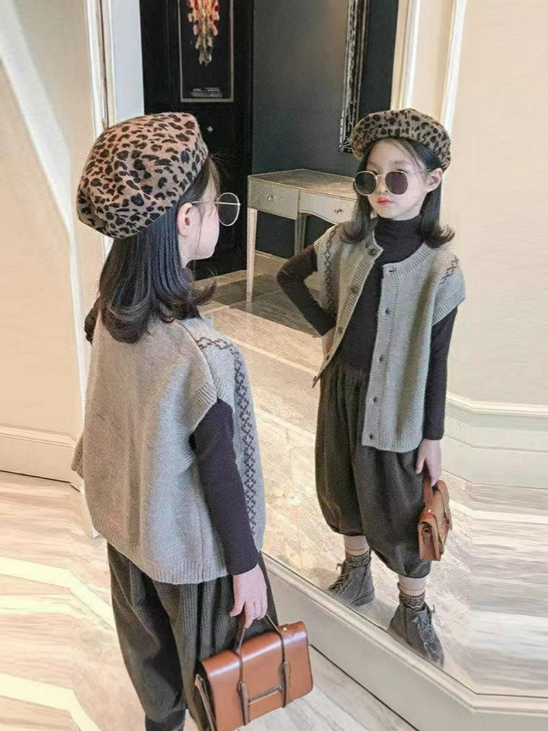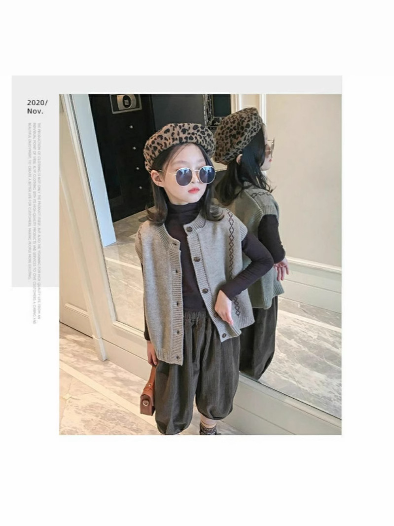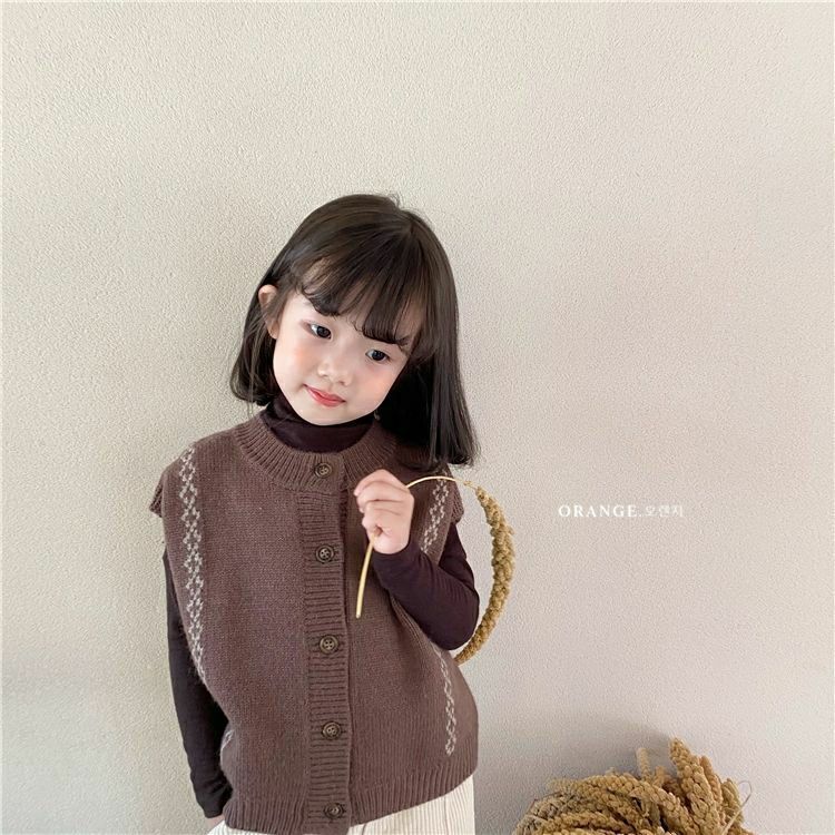 소녀 니트 조끼 봄과 가을 외부 착용 2024 새로운 한국 스타일 서양식 아동복 어린이 가을 스웨터 조끼 패션스토어 가기