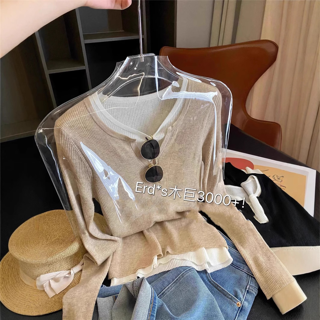블루 우드 거인 3000! 100 여성용 양모 가짜 투피스 디자인 긴팔 스웨터 슬림핏 베이스 셔츠스토어 가기