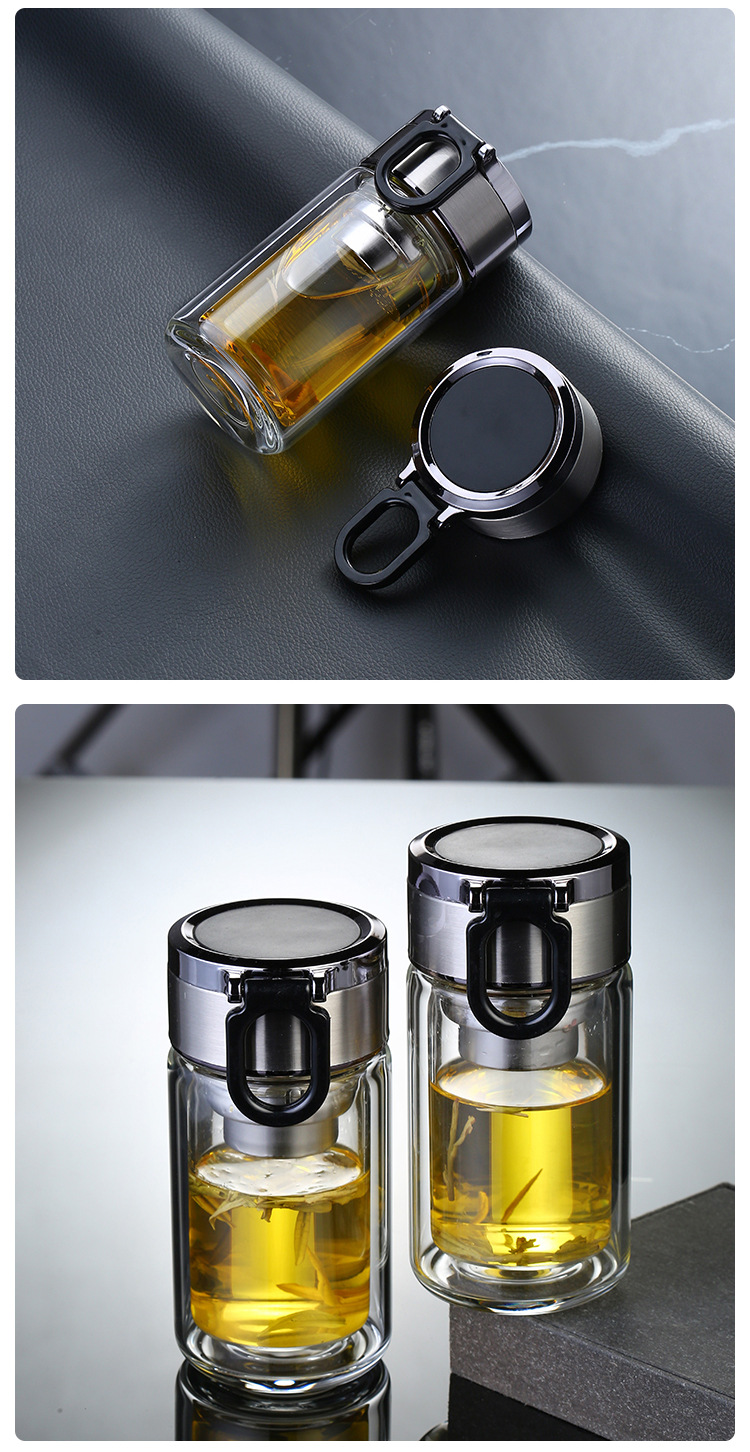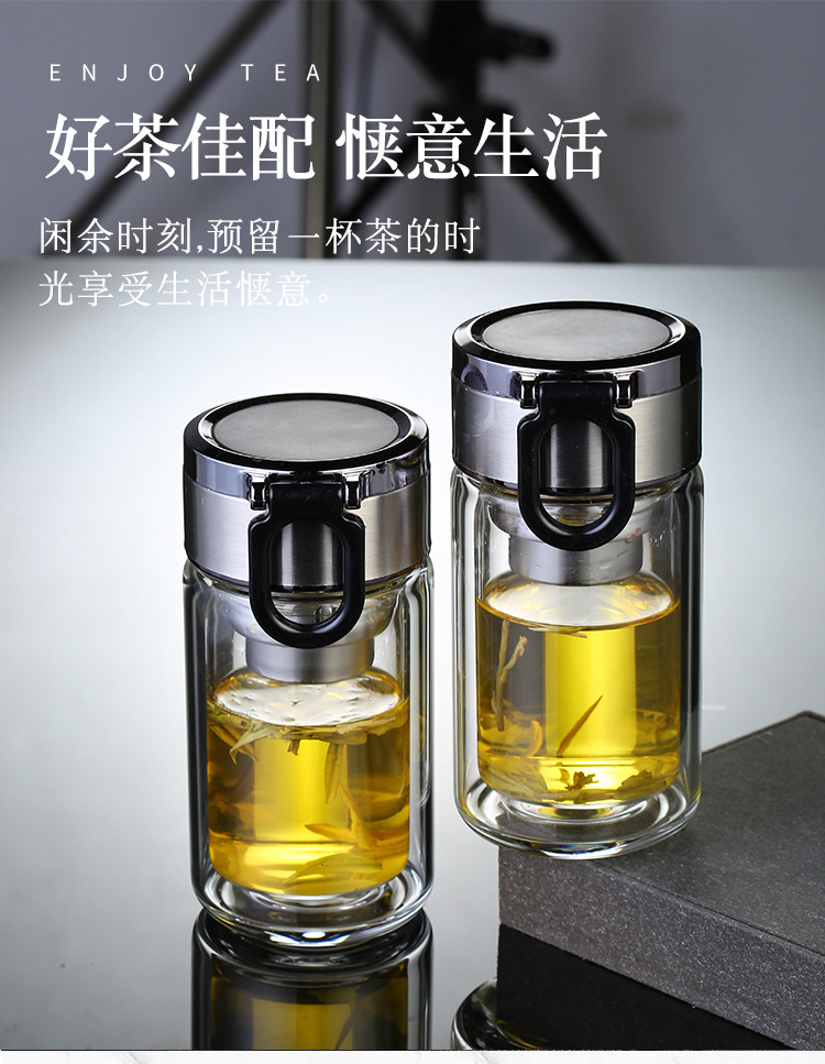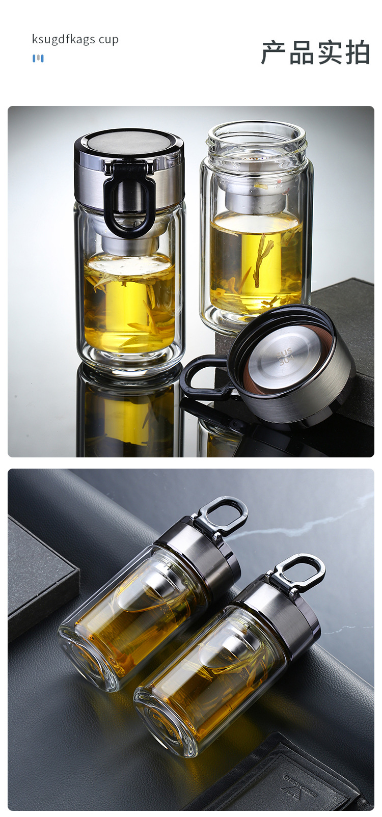 사무실 유리 차 컵 남자 사업 미니 휴대용 더블 레이어 광고 선물 높은 붕규산염 유리 컵