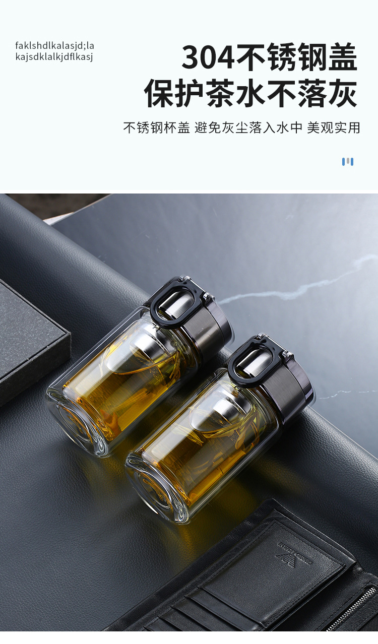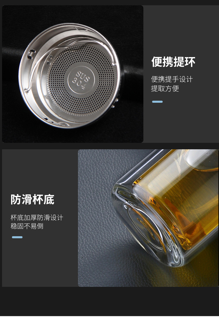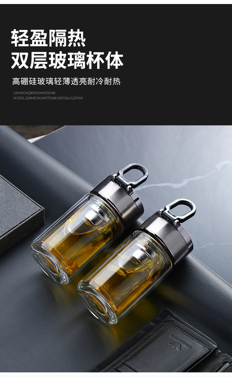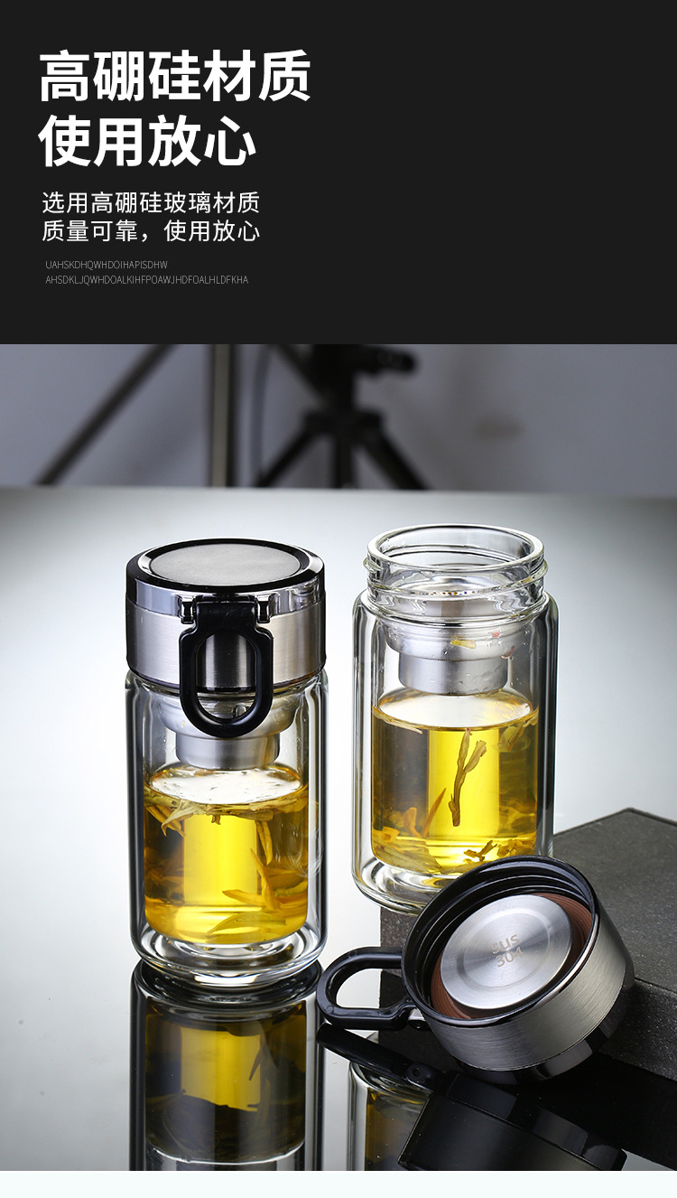 사무실 유리 차 컵 남자 사업 미니 휴대용 더블 레이어 광고 선물 높은 붕규산염 유리 컵