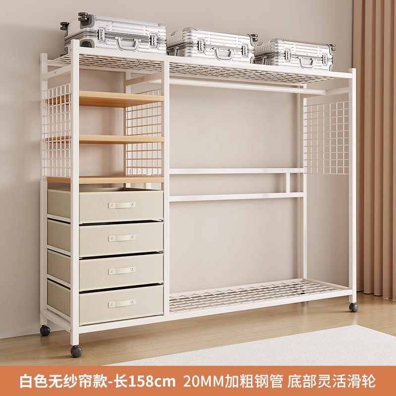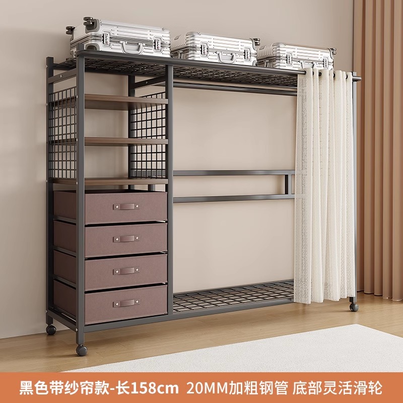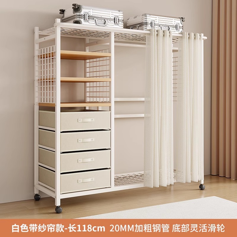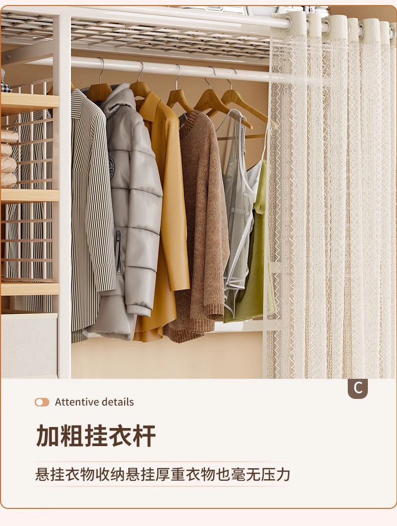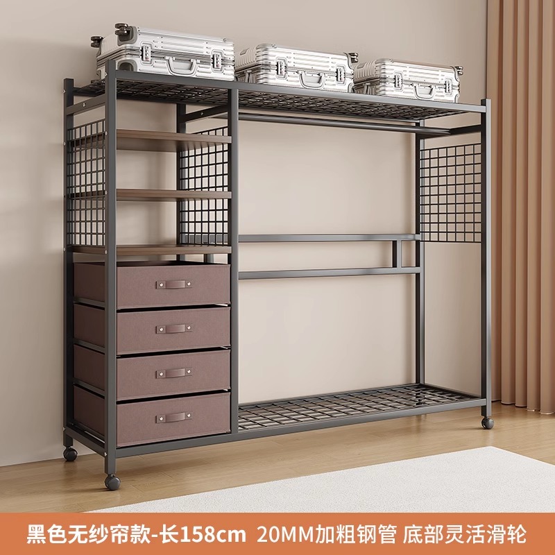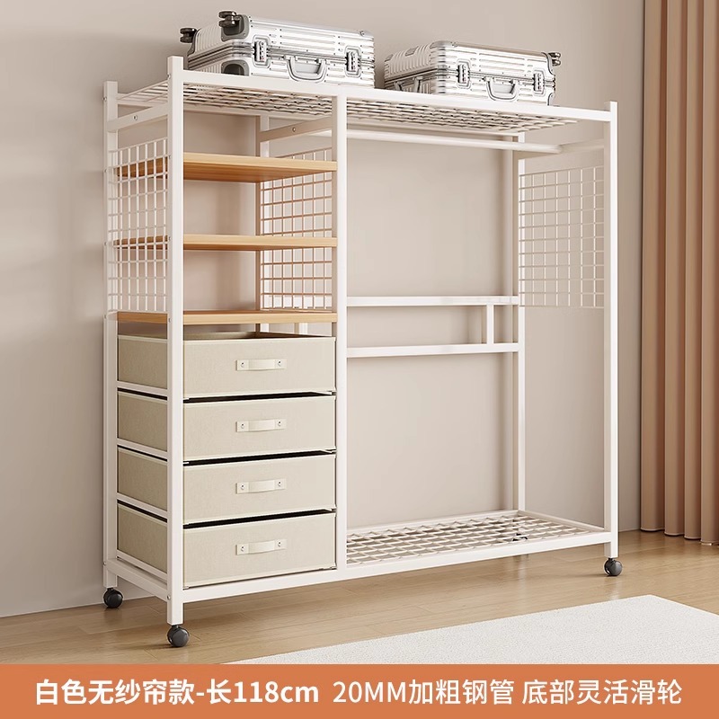 간단한 옷장 강철 옷감 옷장 침실 계층화 된 보관 가구 방진 옷장 대여 룸 오픈 코트 랙스토어 가기