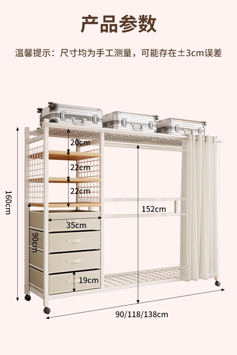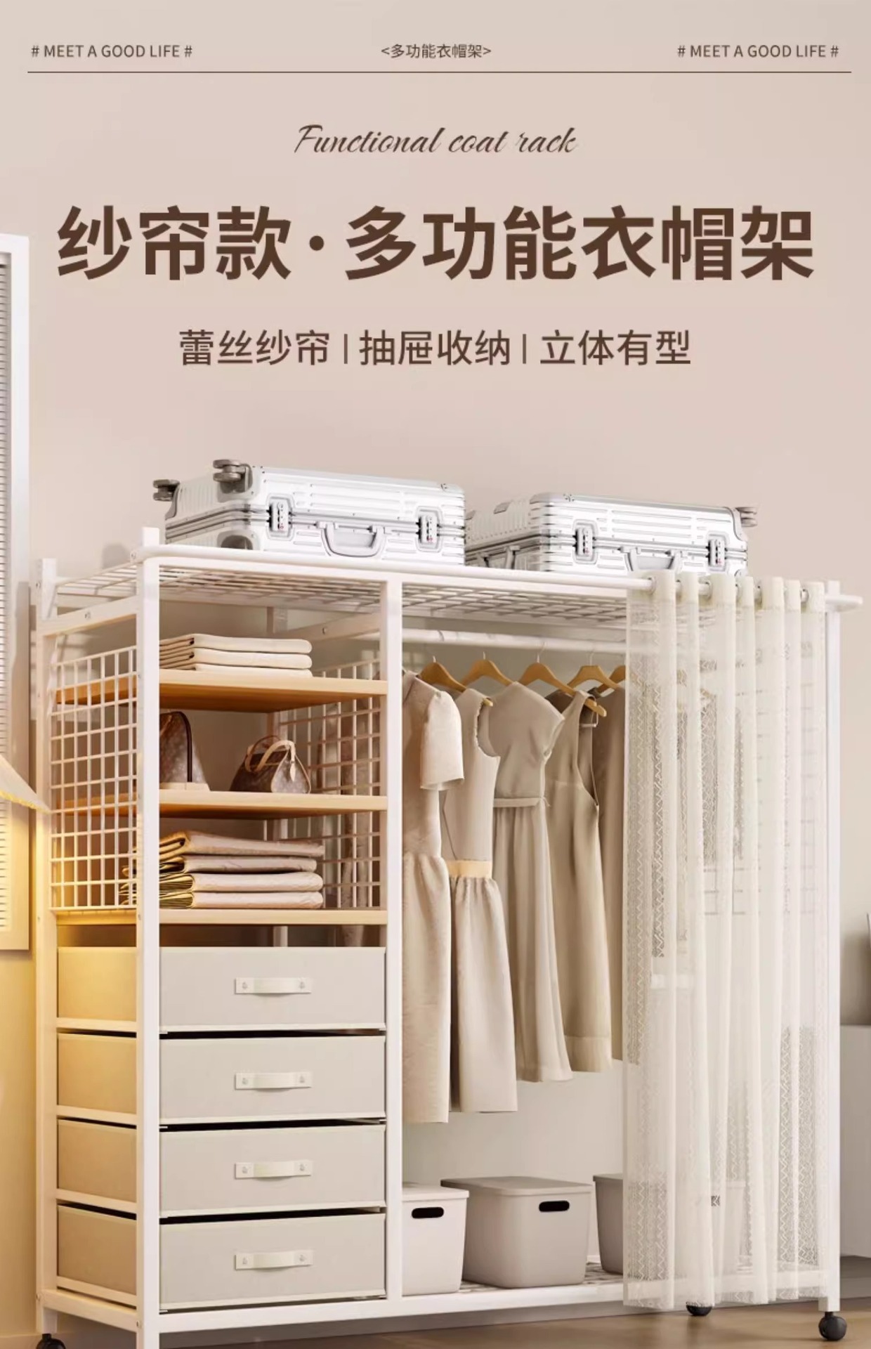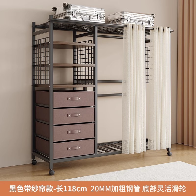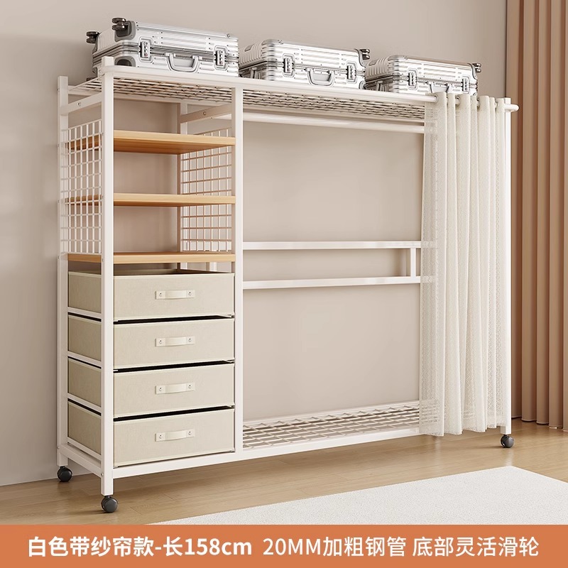 간단한 옷장 강철 옷감 옷장 침실 계층화 된 보관 가구 방진 옷장 대여 룸 오픈 코트 랙스토어 가기