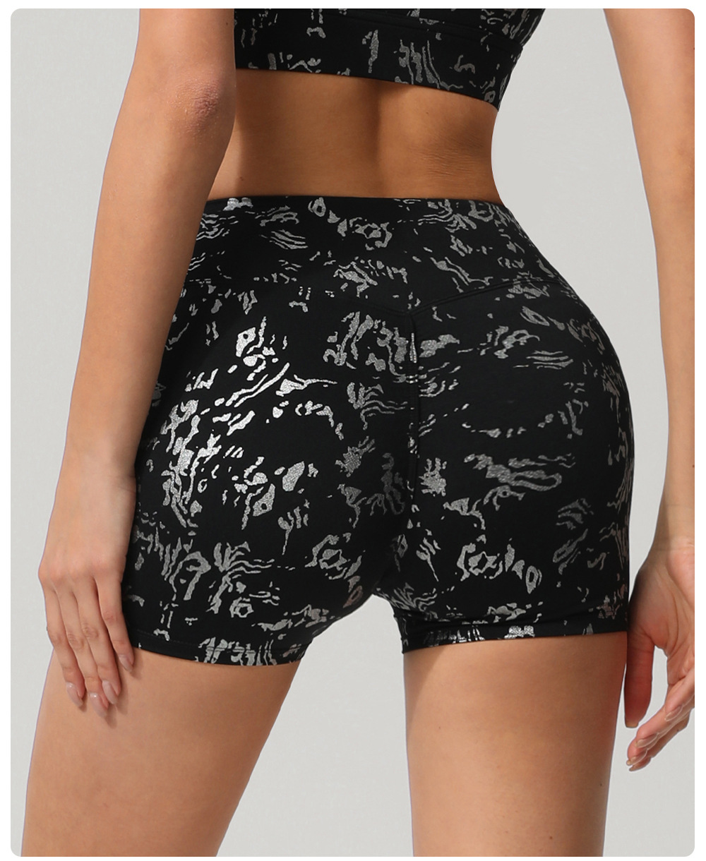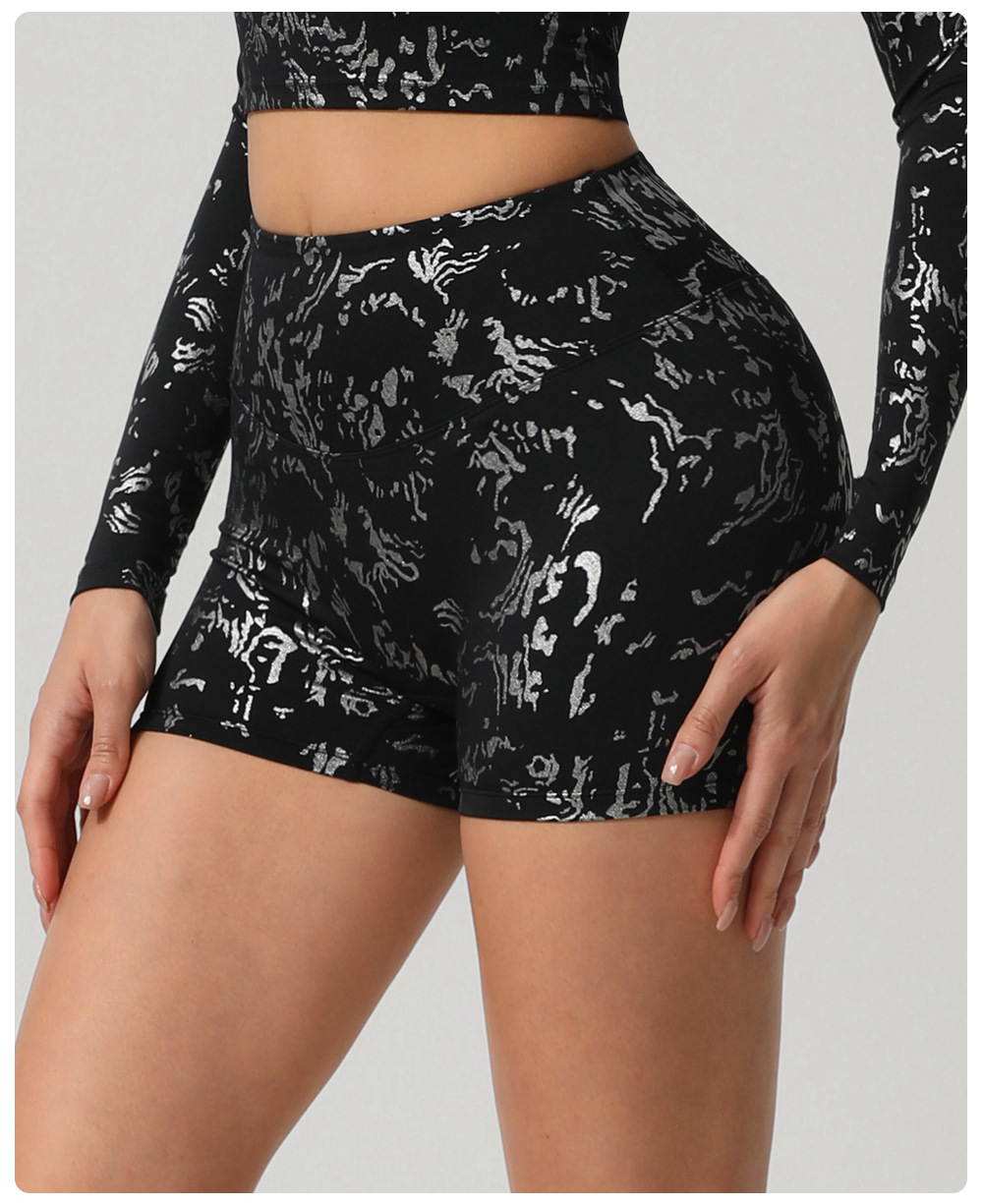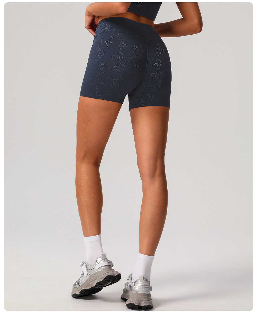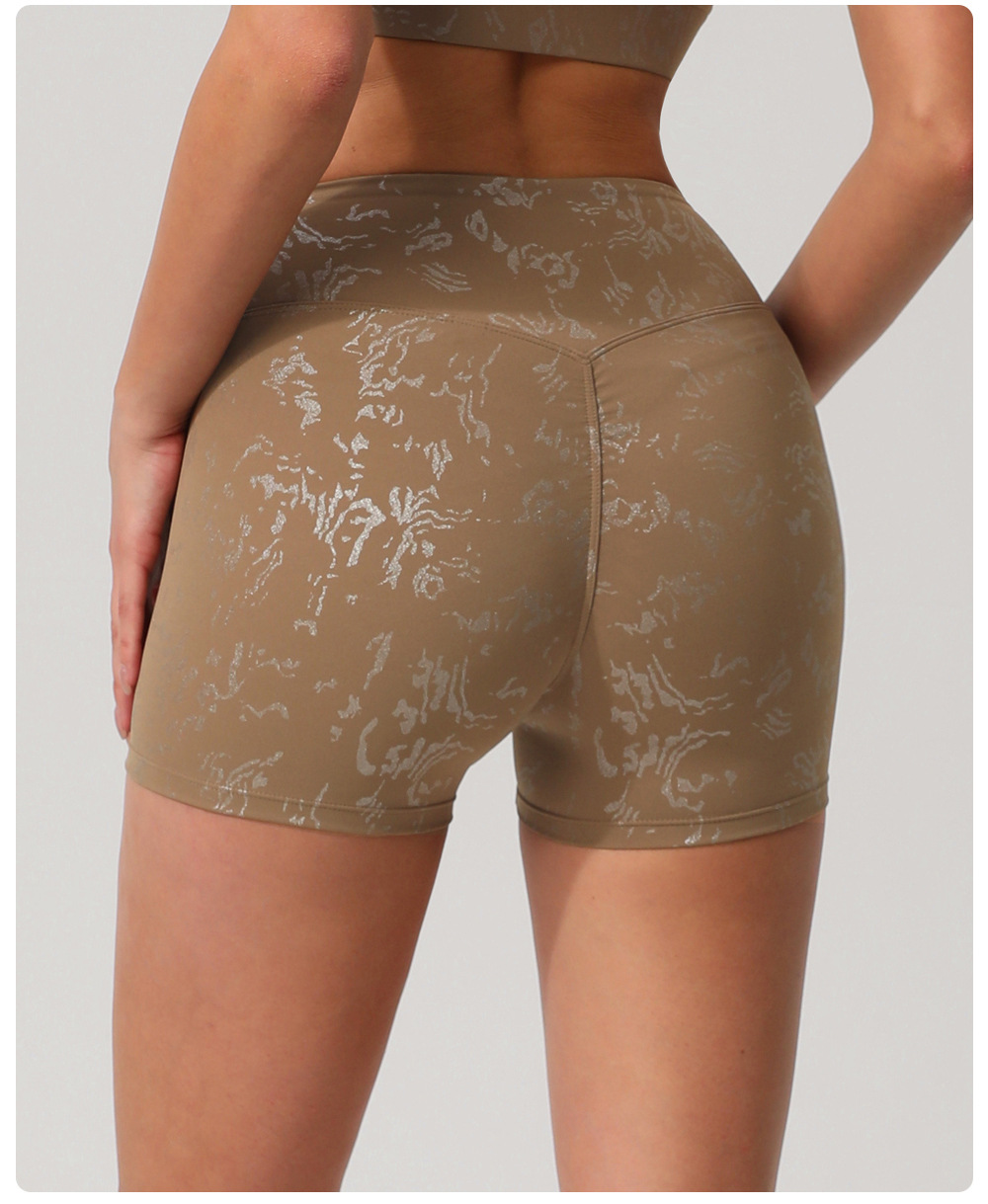 유럽과 미국의 핫 실버 타이트한 하이 엔드 요가 반바지 여성 엉덩이 들어 올리는 알몸 피트니스 바지 달리기 스포츠 반바지스토어 가기