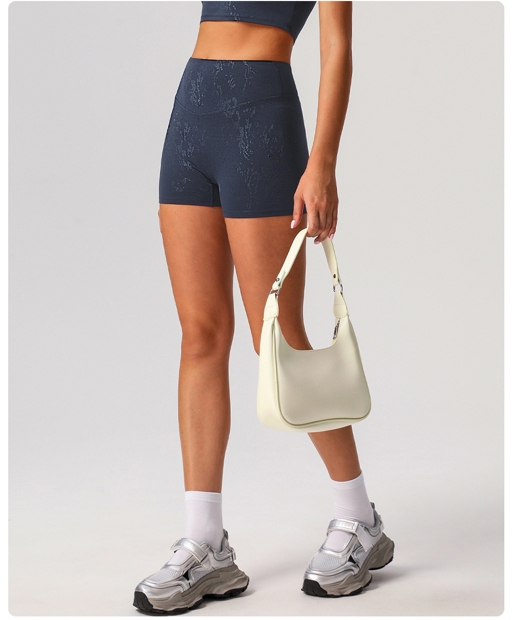 유럽과 미국의 핫 실버 타이트한 하이 엔드 요가 반바지 여성 엉덩이 들어 올리는 알몸 피트니스 바지 달리기 스포츠 반바지