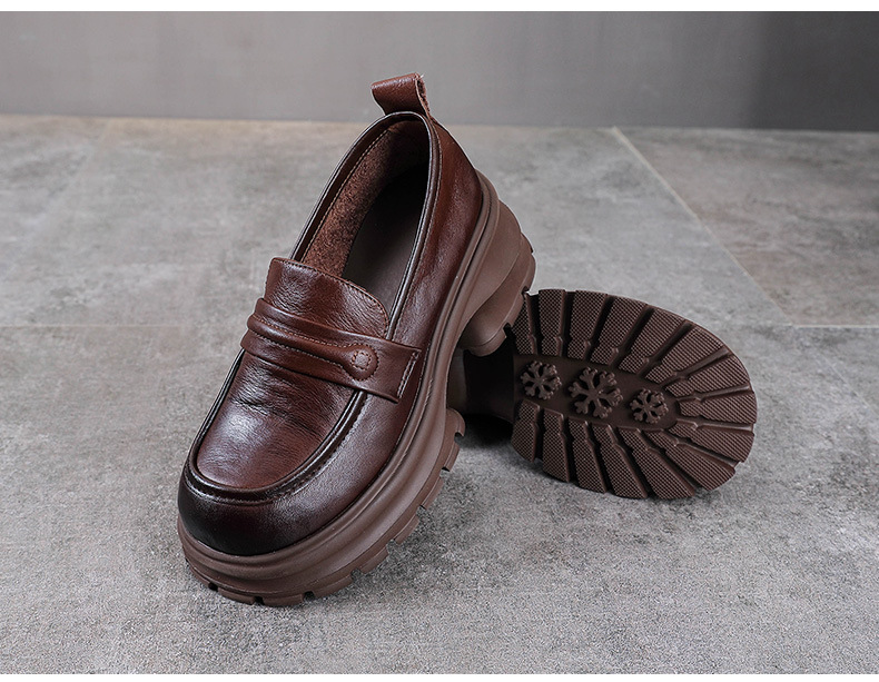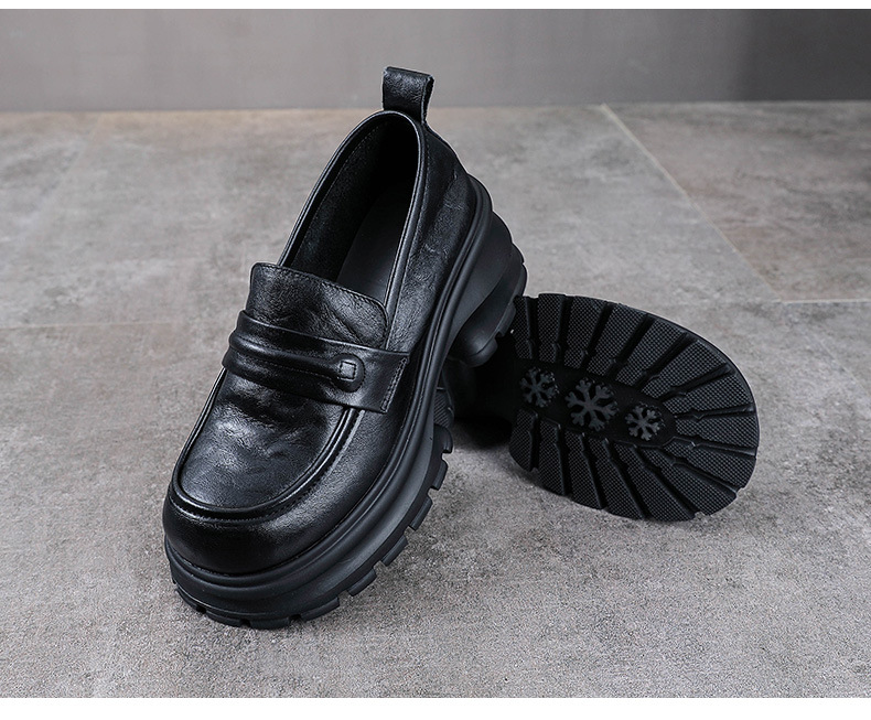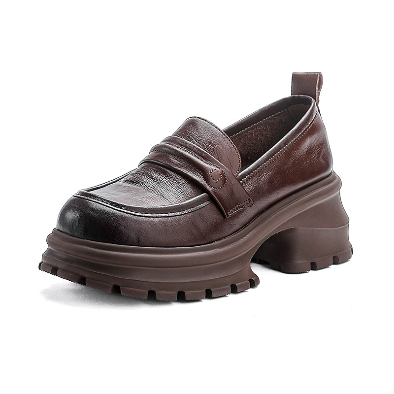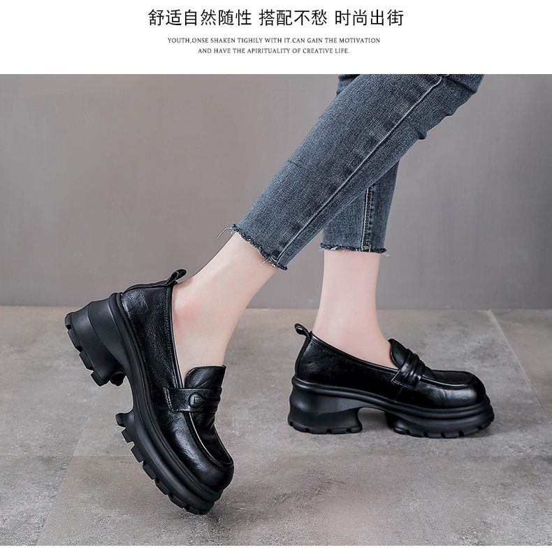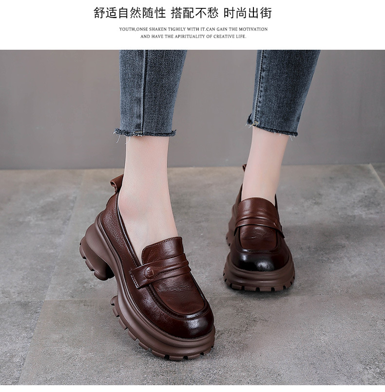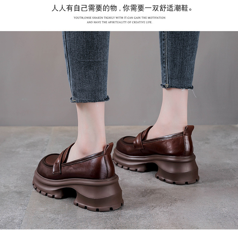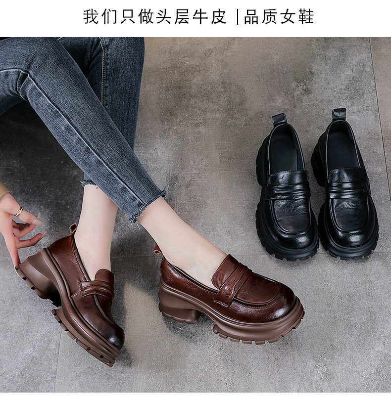 탑 레이어 Cowhide Loafers 2025 봄과 가을 새로운 정품 가죽 캐주얼 여성 신발 플랫폼 단층 신발 조커 작은 가죽 신발스토어 가기