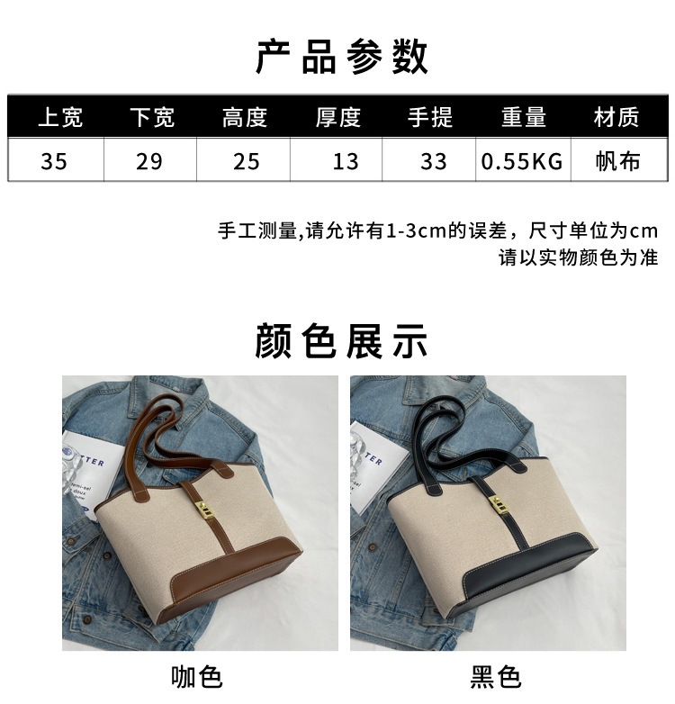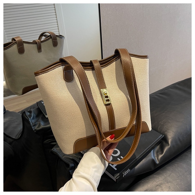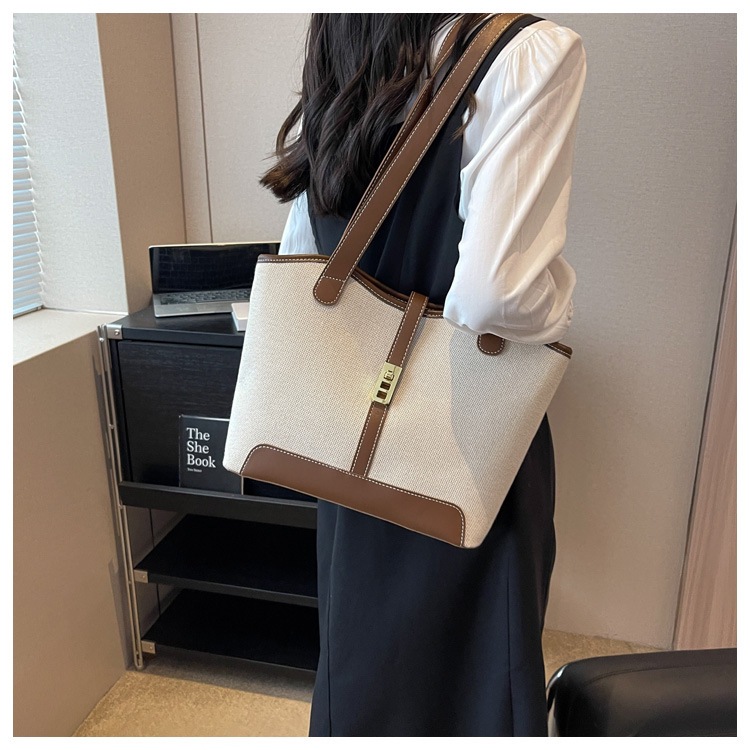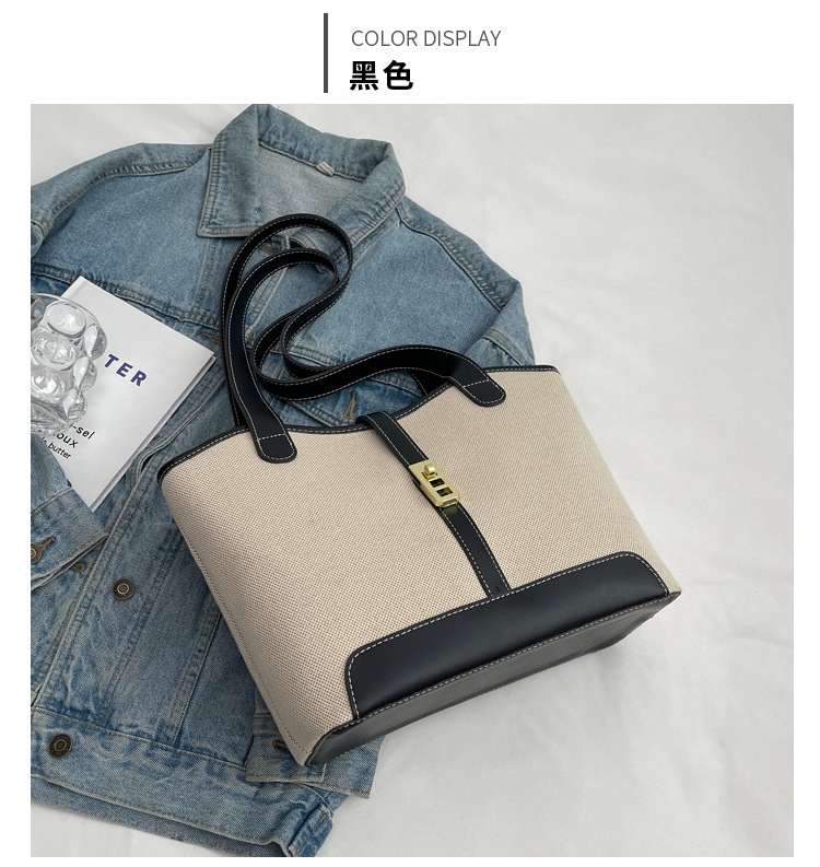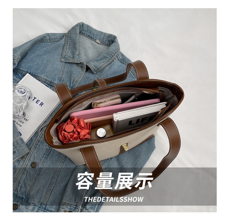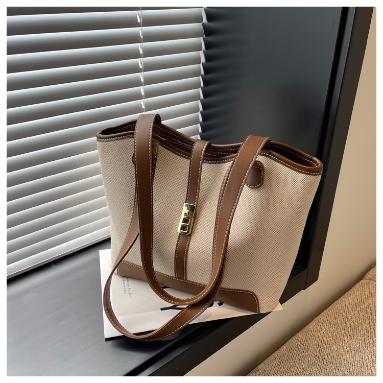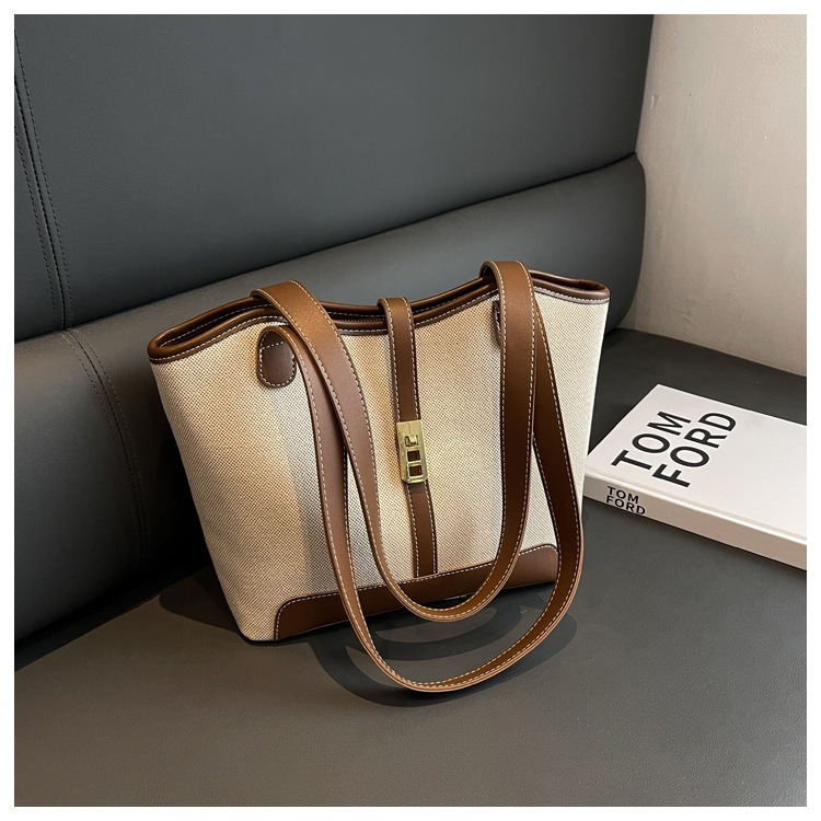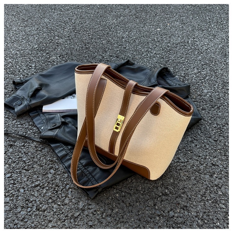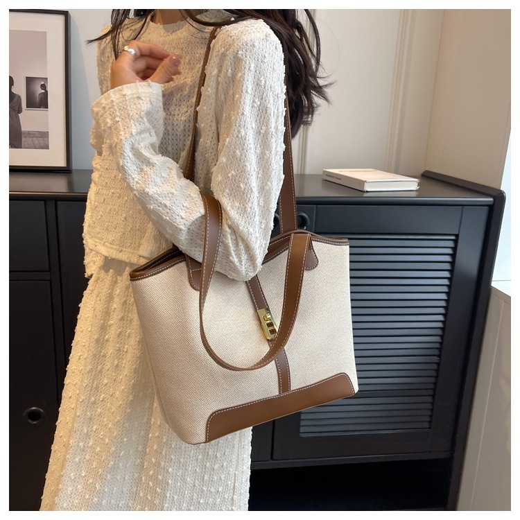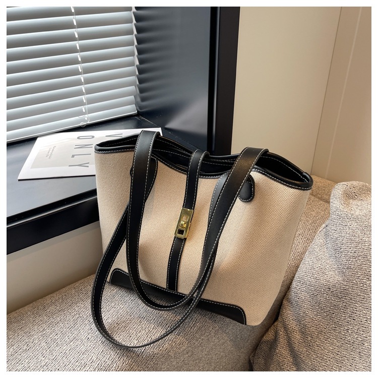 토트 백 여성의 2024 새로운 패션 콘트라스트 컬러 인기있는 어깨 핸드백 캐주얼 올 매치 대용량 버킷 백