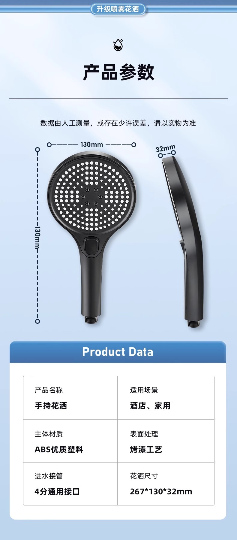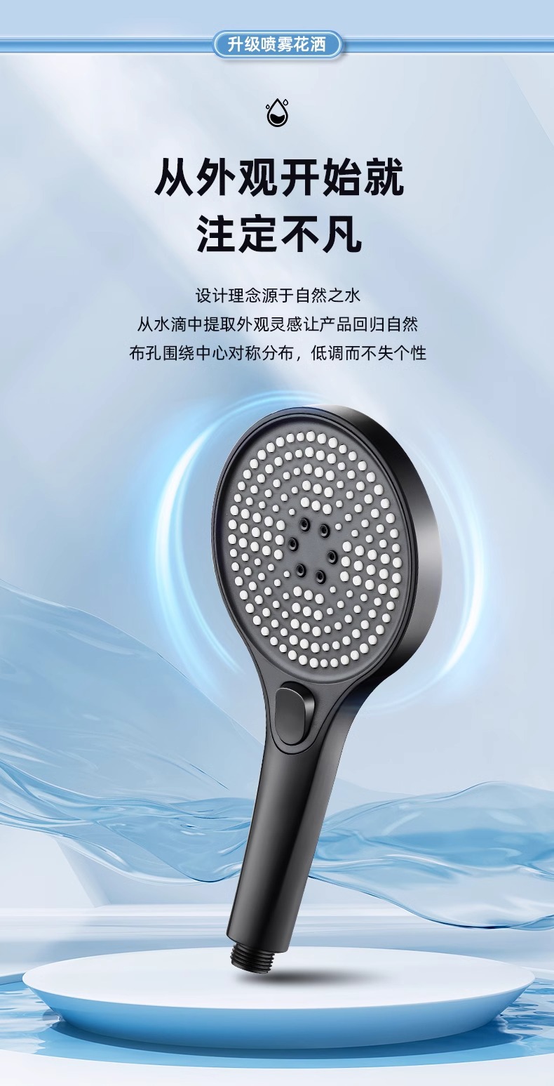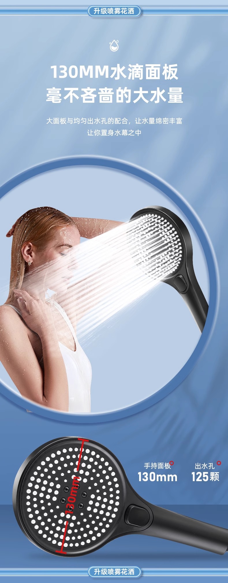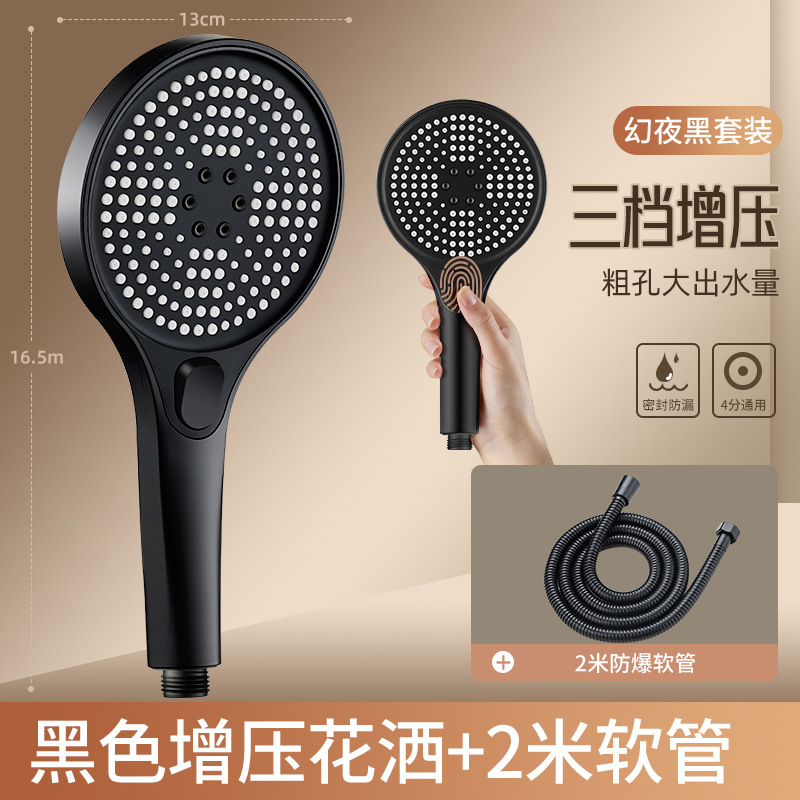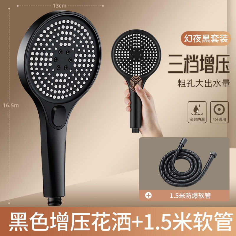 • [피아노 블랙 세트 1] 과급형 대형 물 배출 샤워 + 1.5m 샤워 호스