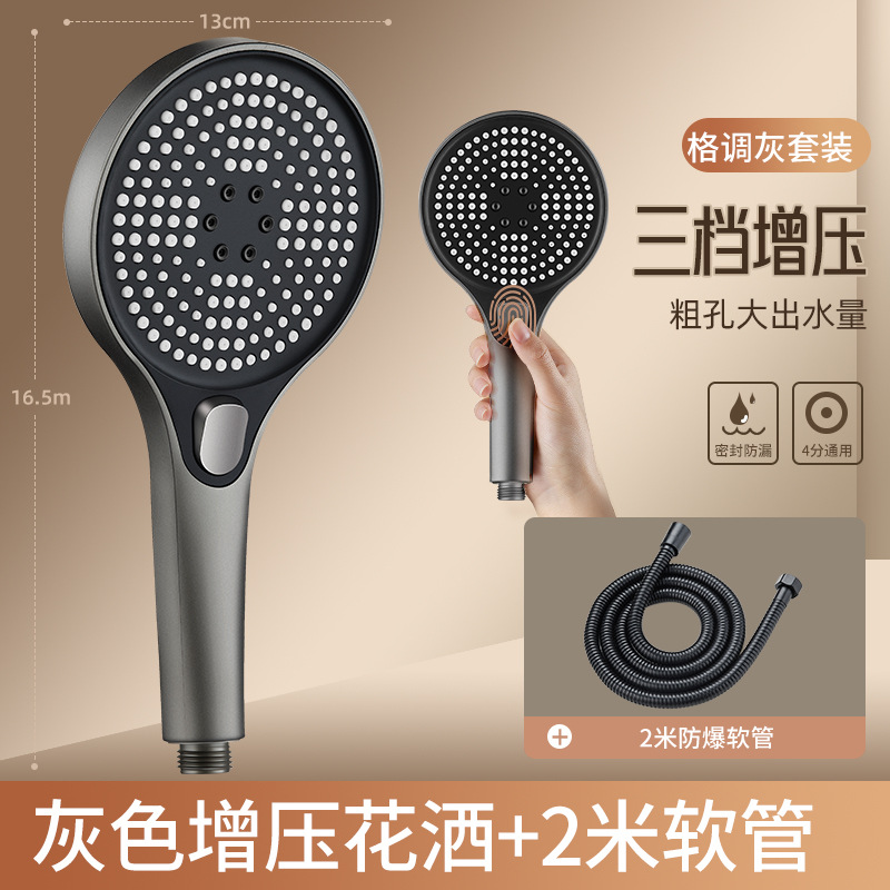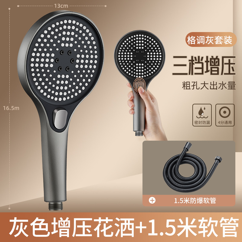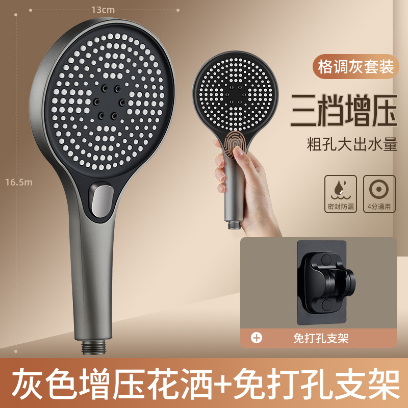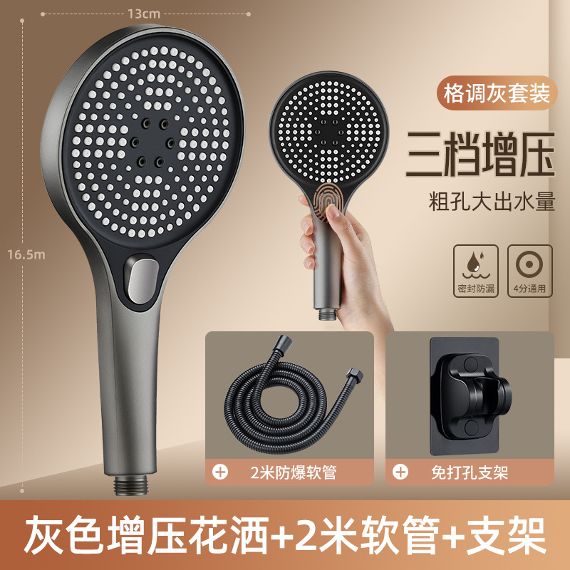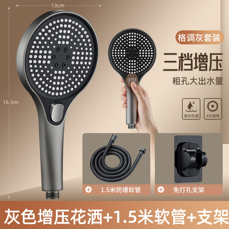 • [텀 그레이 세트 3] 가압식 대형 물 배출 샤워 + 1.5m 샤워 호스 + 펀치 프리 브래킷