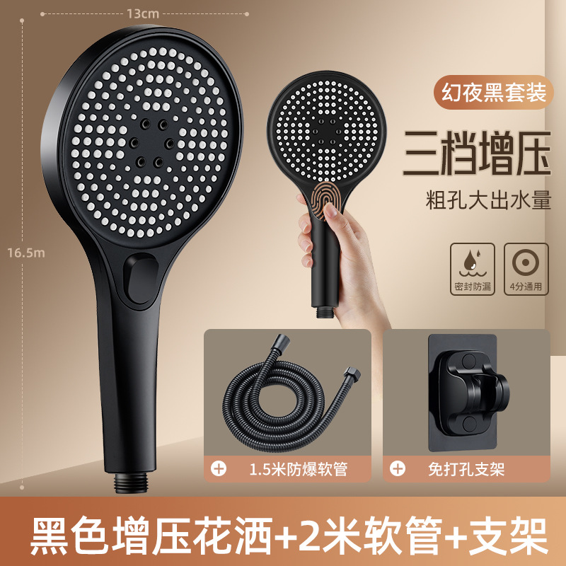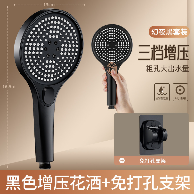 • [피아노 블랙 세트 3] 가압식 대형 물 배출 샤워 + 1.5m 샤워 호스 + 펀치 프리 브래킷