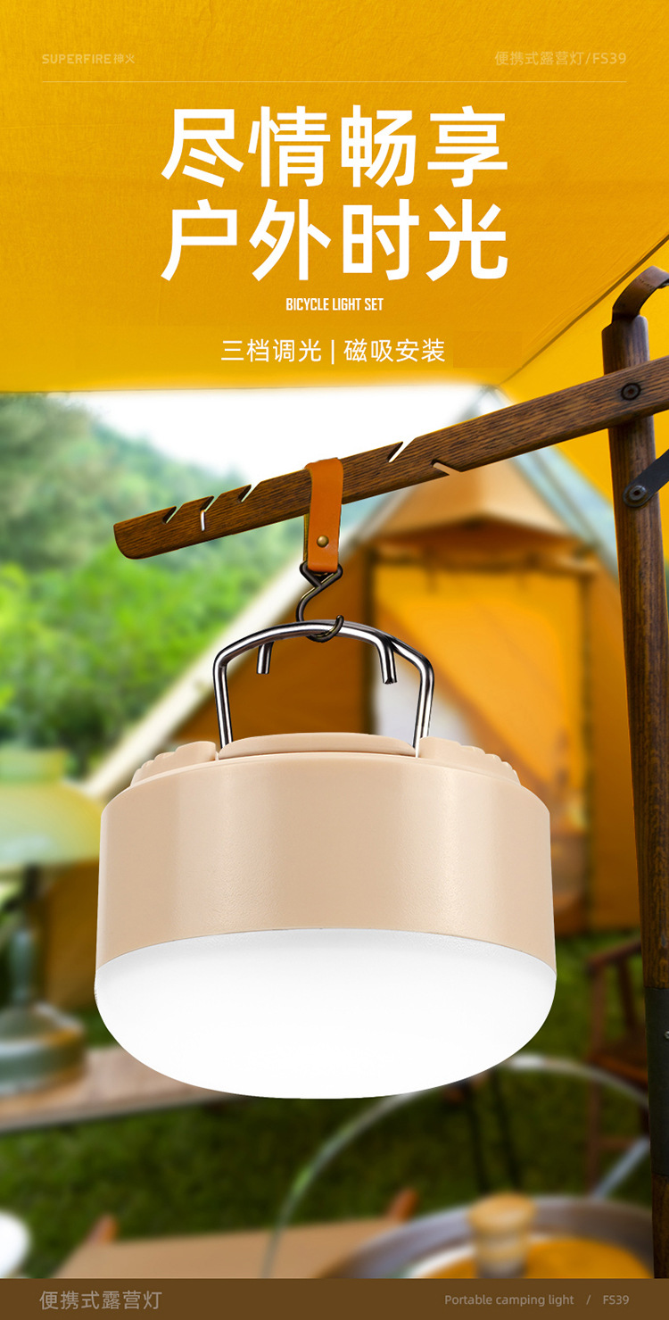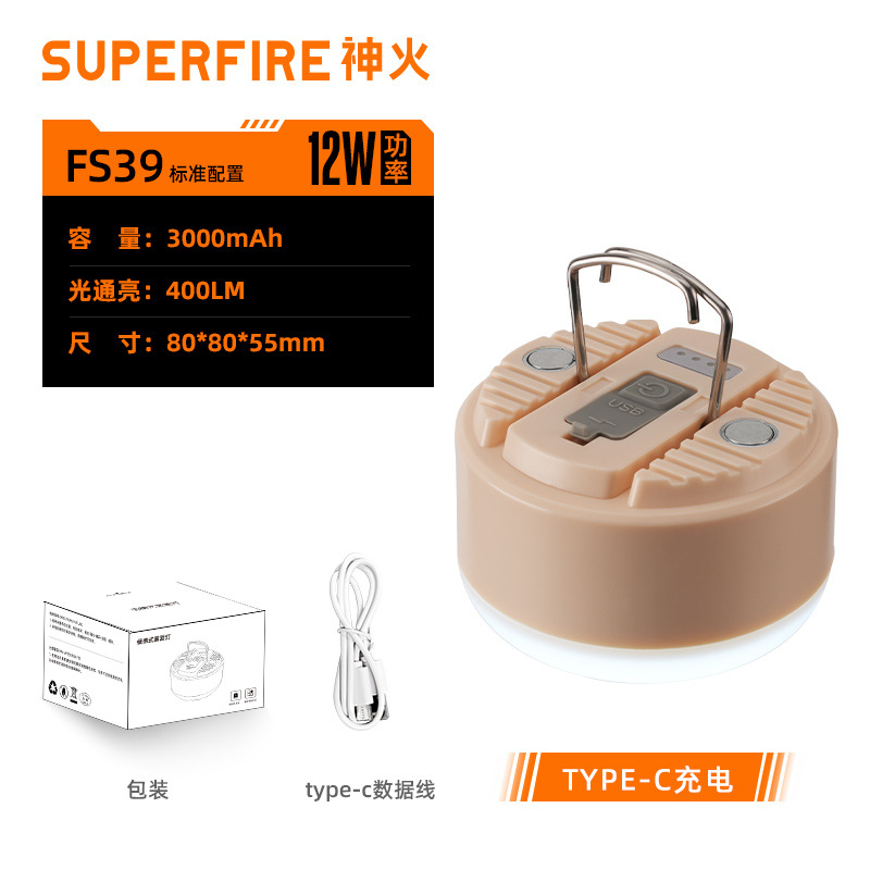 Shenhuo FS39 충전식 TYPE-C 자기 교수형 야외 조명 긴 배터리 수명 강한 빛 텐트 캠핑 캠프 램프