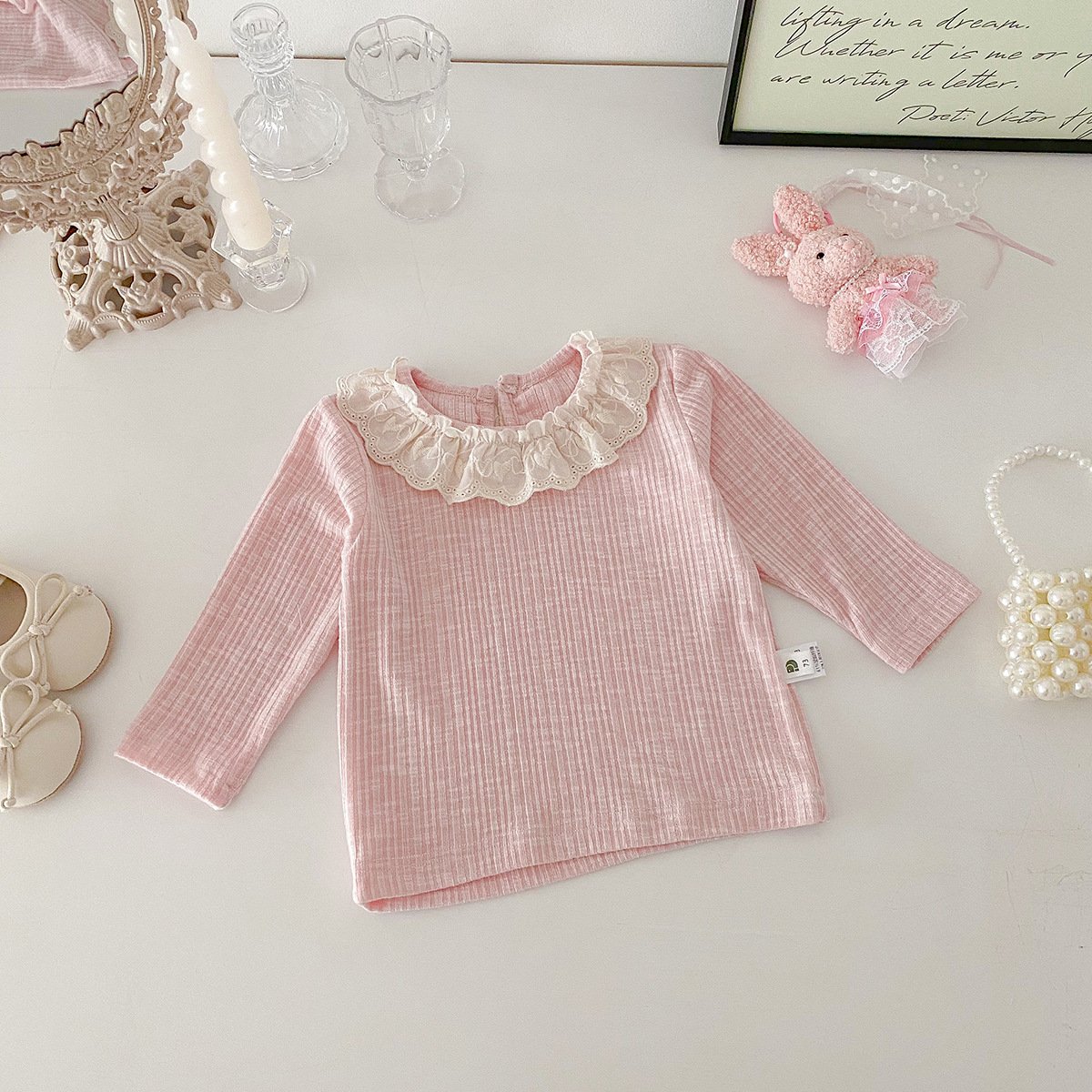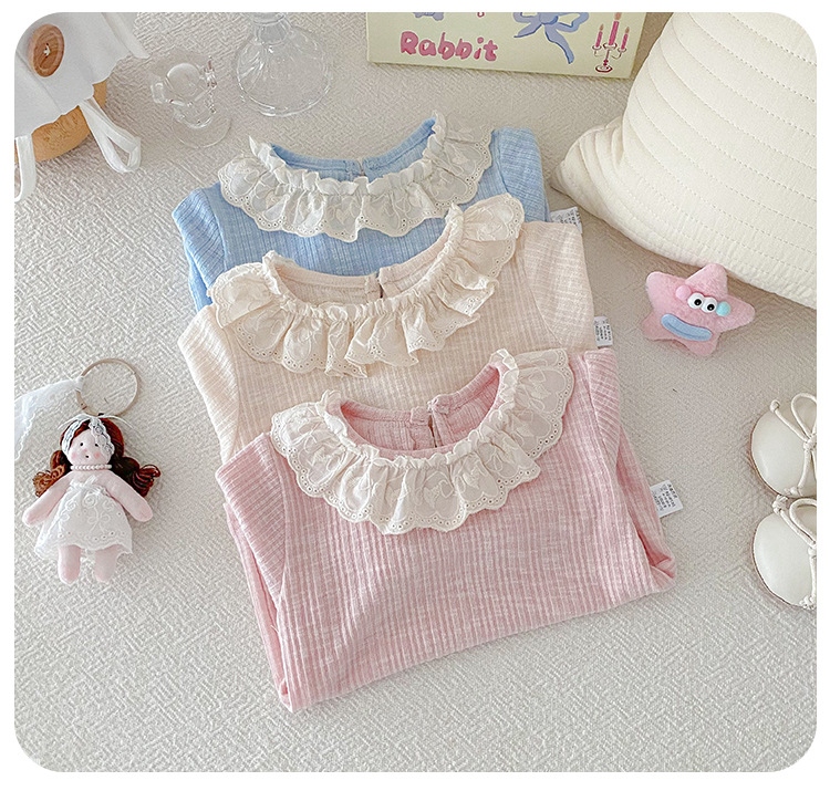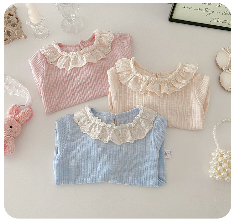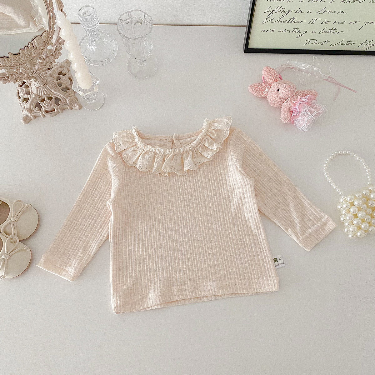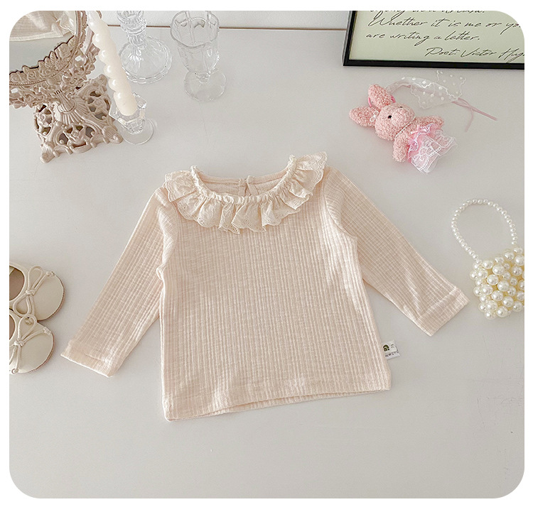 아기 소녀 긴팔 티셔츠 소녀 봄 새로운 한국어 스타일 달콤한 레이스 옷깃 탑 아기 유행 바닥 셔츠