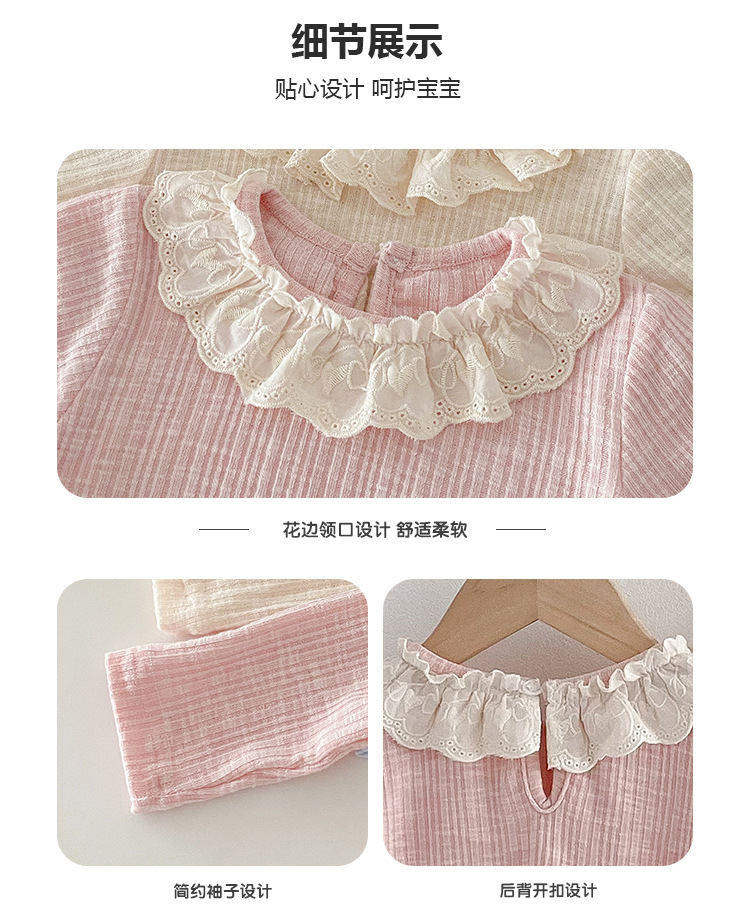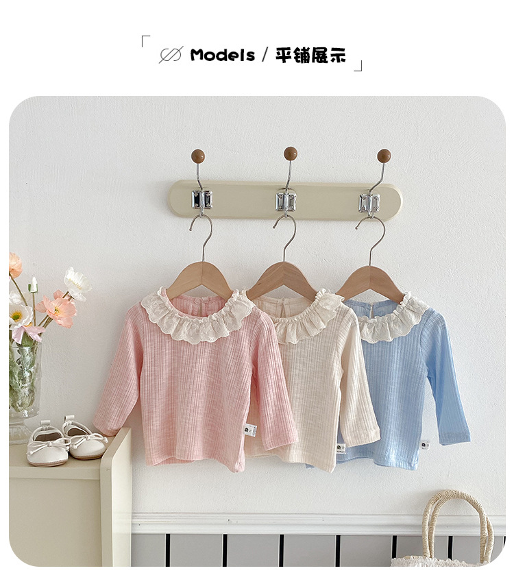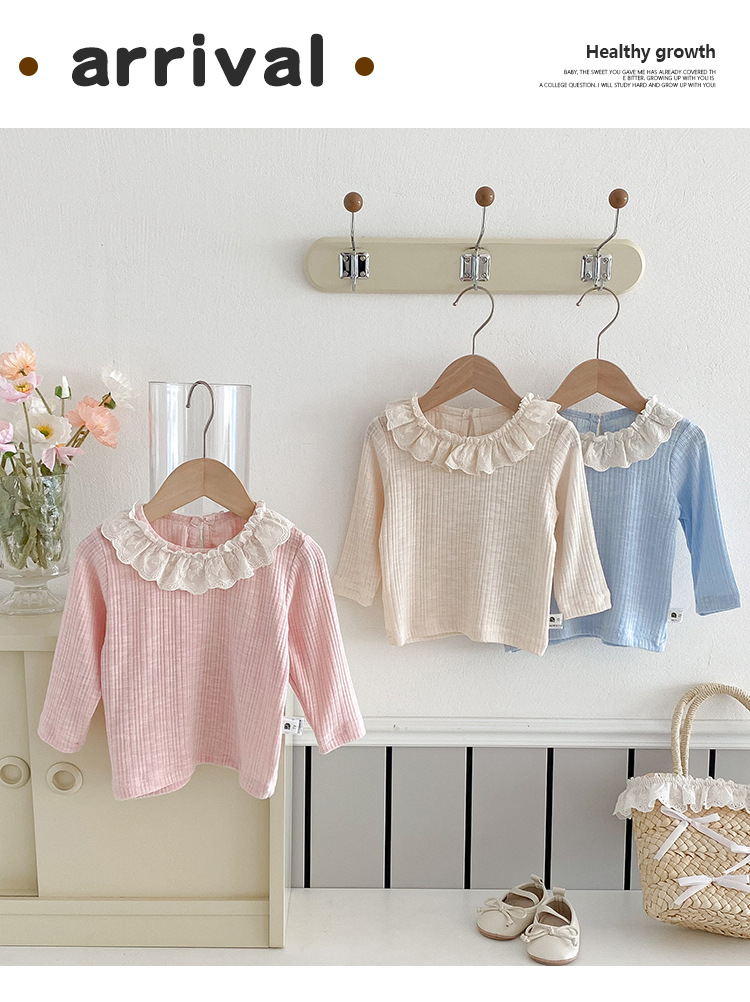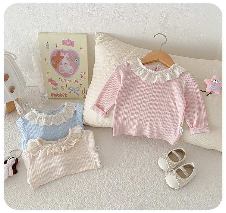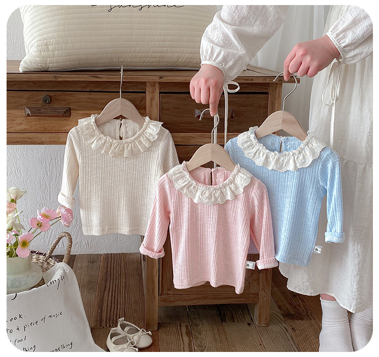 아기 소녀 긴팔 티셔츠 소녀 봄 새로운 한국어 스타일 달콤한 레이스 옷깃 탑 아기 유행 바닥 셔츠스토어 가기