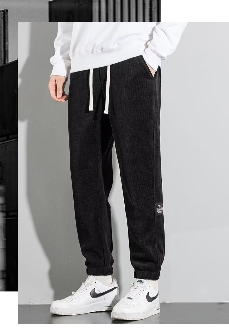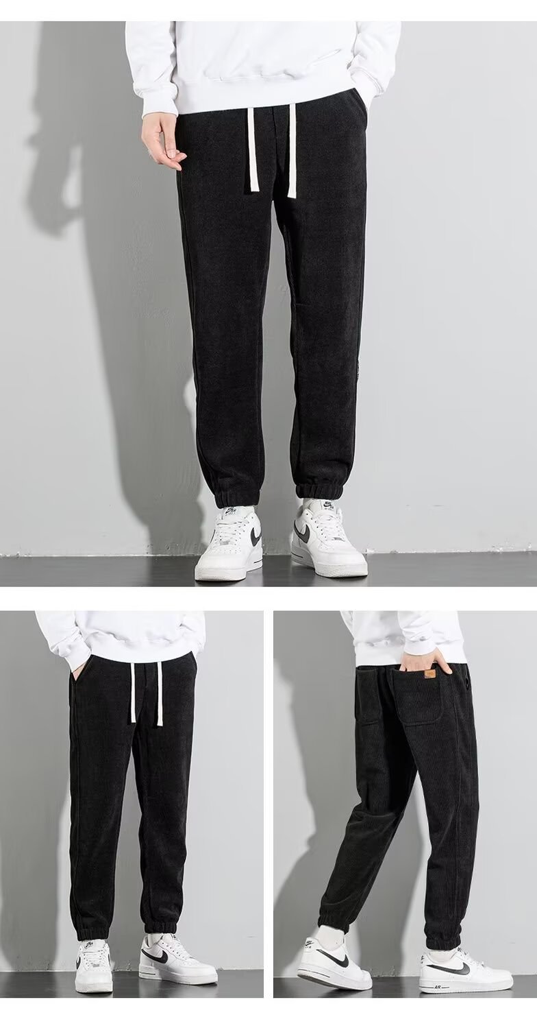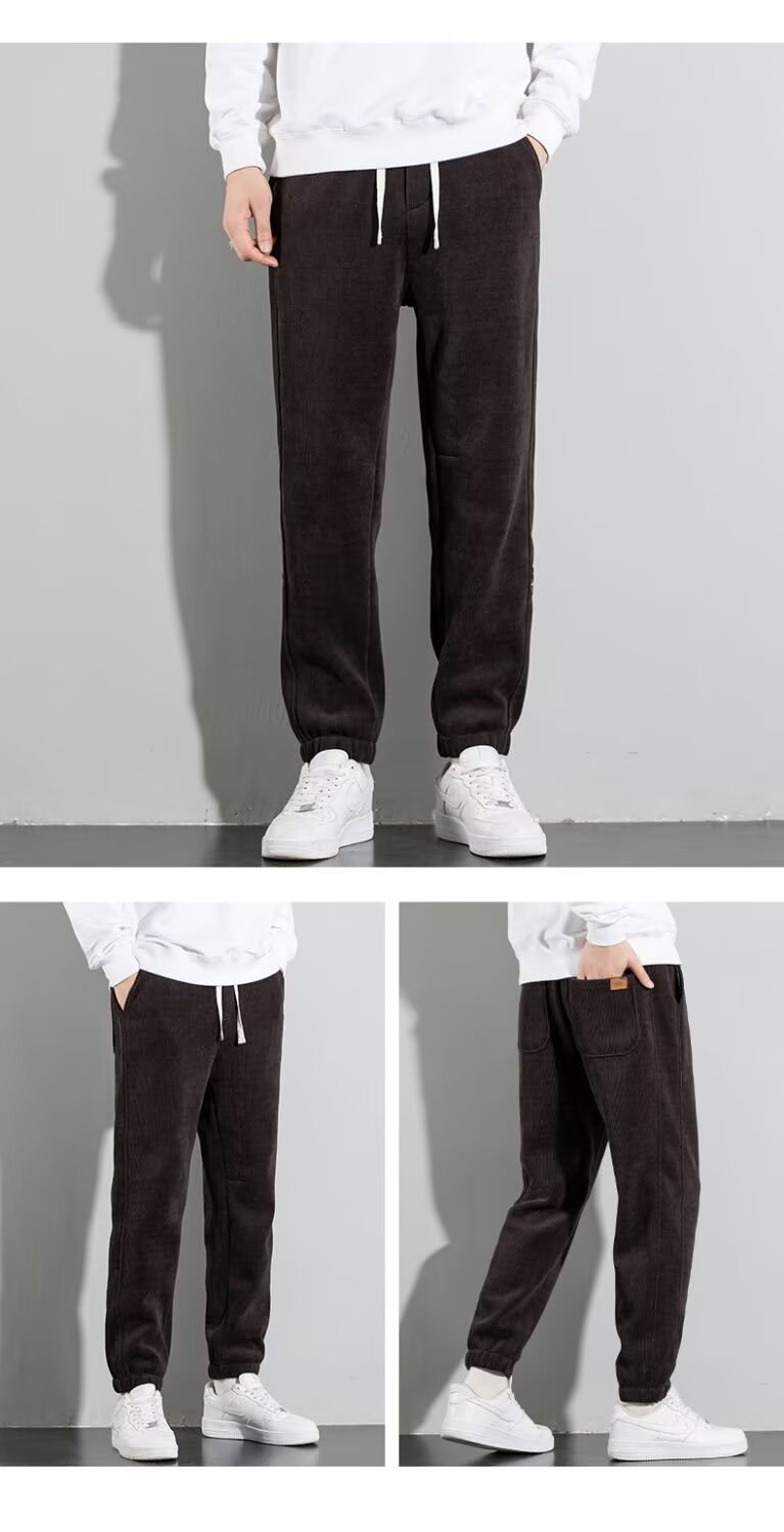 코듀로이 바지 남자 가을과 겨울 기모 발가락 땀 바지 청소년 느슨한 올매치 두꺼운 캐주얼 스포츠 바지스토어 가기