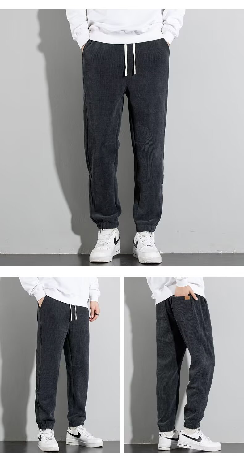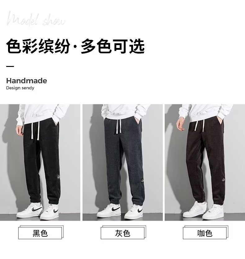코듀로이 바지 남자 가을과 겨울 기모 발가락 땀 바지 청소년 느슨한 올매치 두꺼운 캐주얼 스포츠 바지