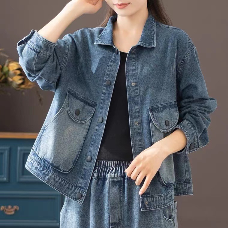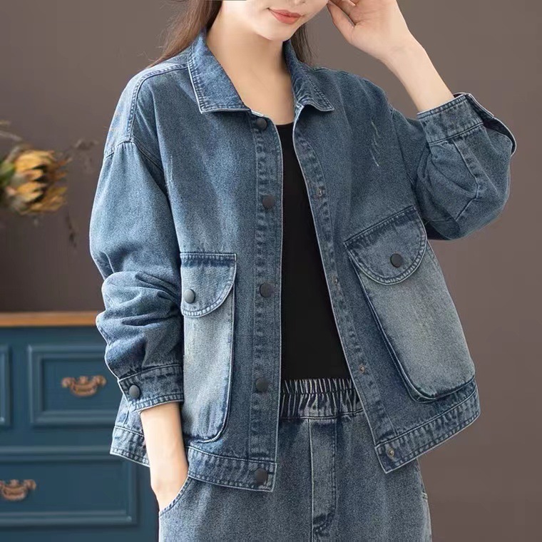 빈티지 홍콩 스타일 봄 및 가을 새로운 도착 데님 코트 여성용 워시 루즈 올 매치 웨스턴 스타일 플러스 사이즈 슬림 룩 재킷