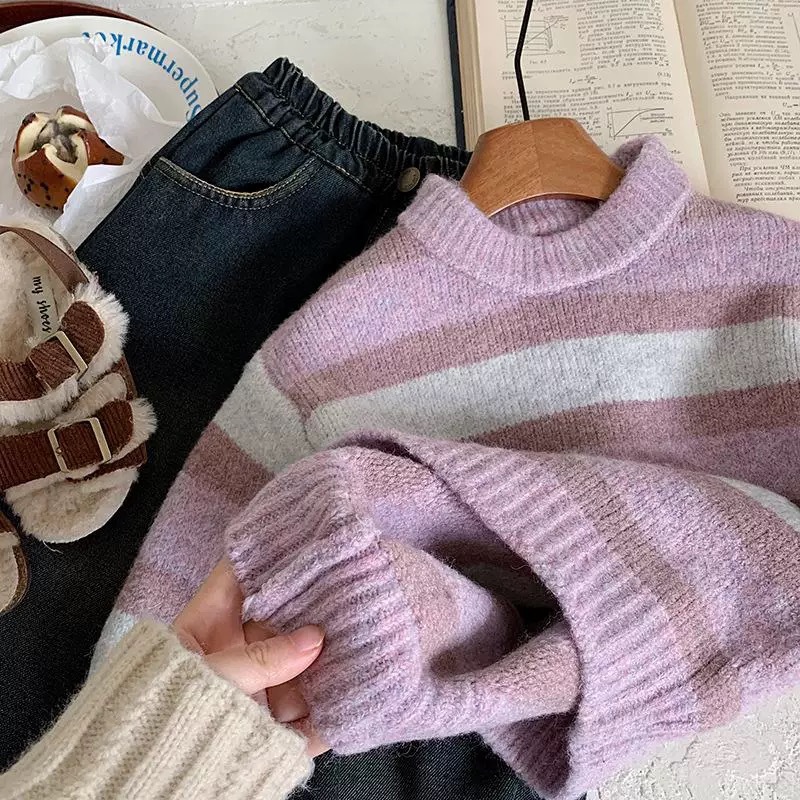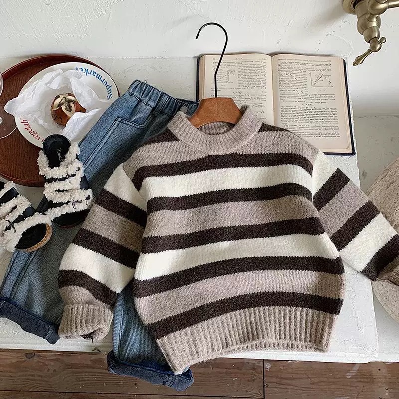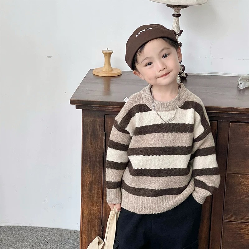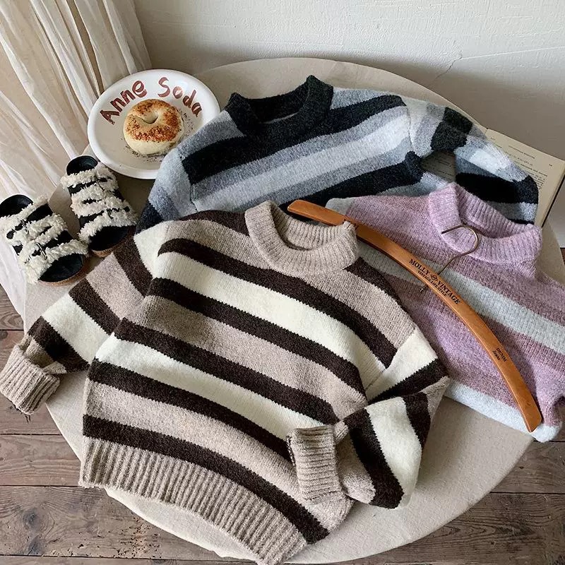 한국 스타일 소년 스웨터 가을 겨울 2024 새 줄무늬 한국 스타일 어린이 터틀넥 스웨터스토어 가기