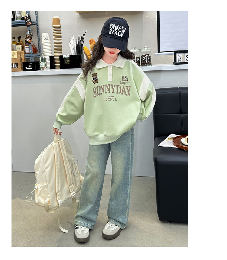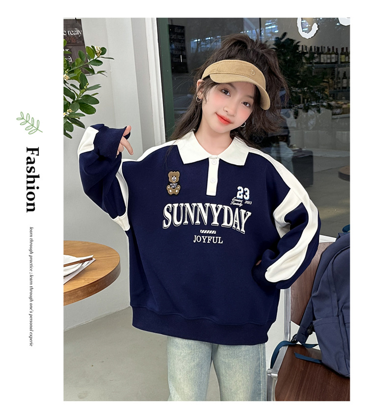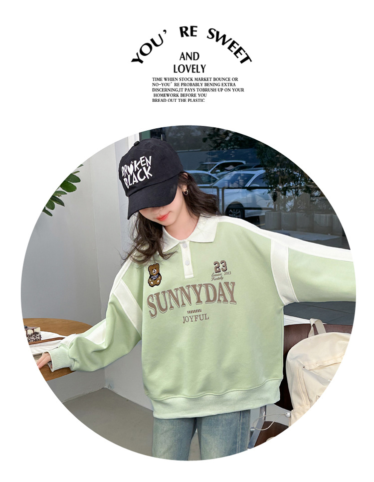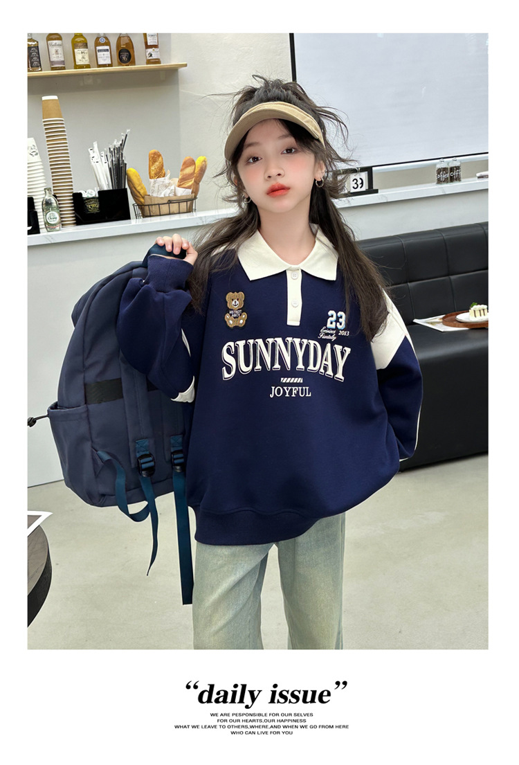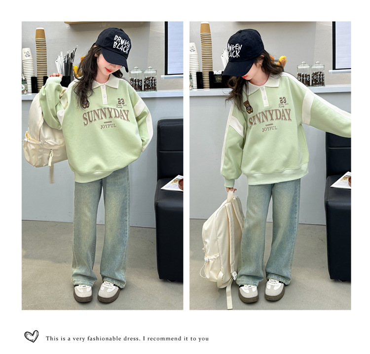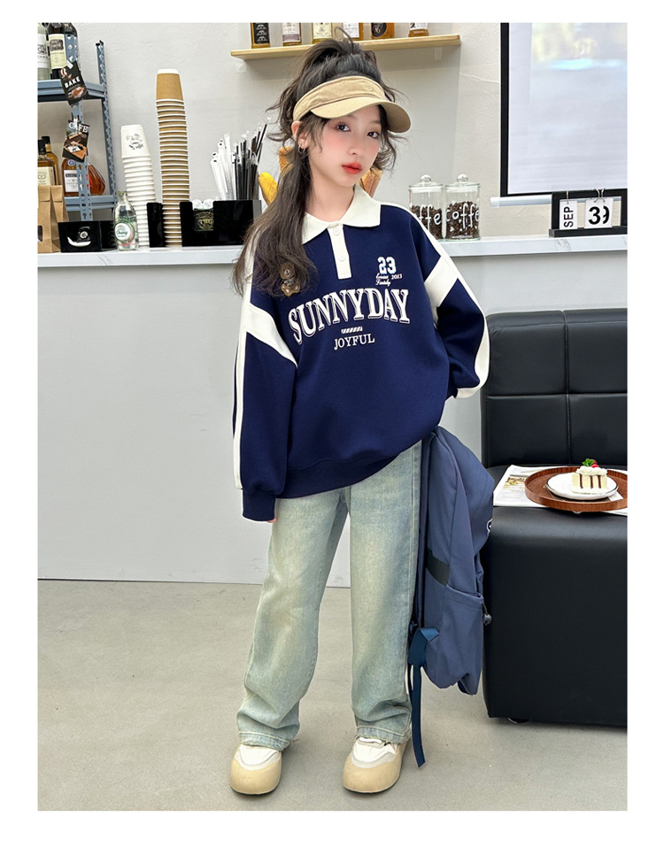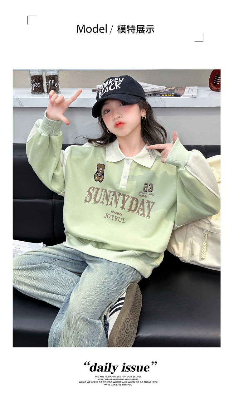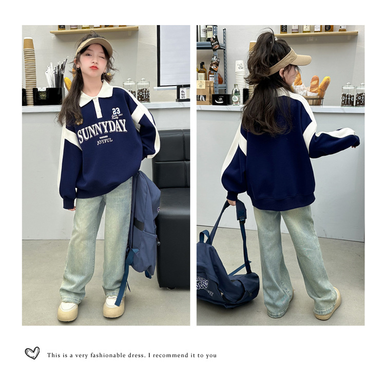 여아용 봄 캐주얼 스웨트셔츠 2026 신상 아동용 POLO 칼라 패셔너블 긴팔 상의, 어린 소녀들을 위한 봄 가을 스타일리쉬 상의
