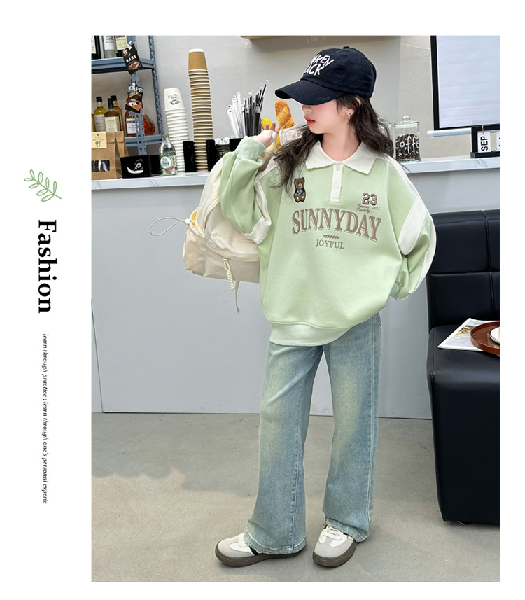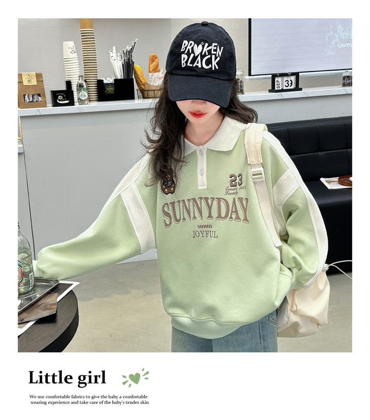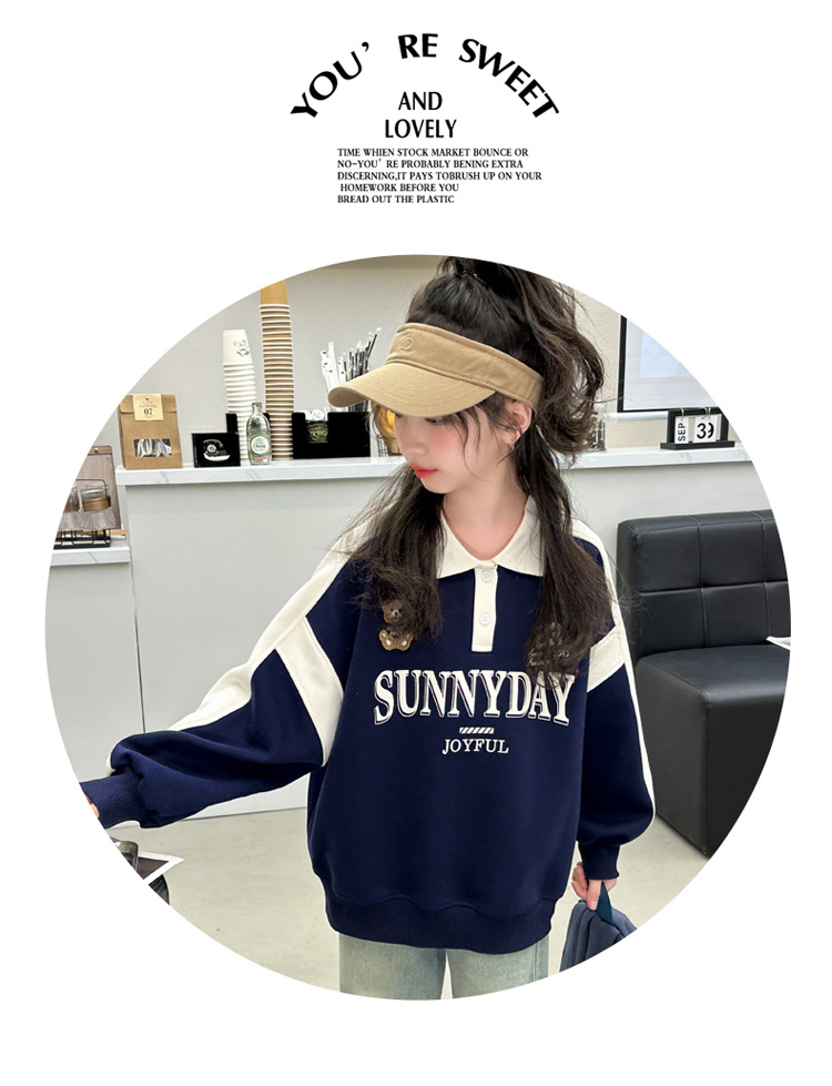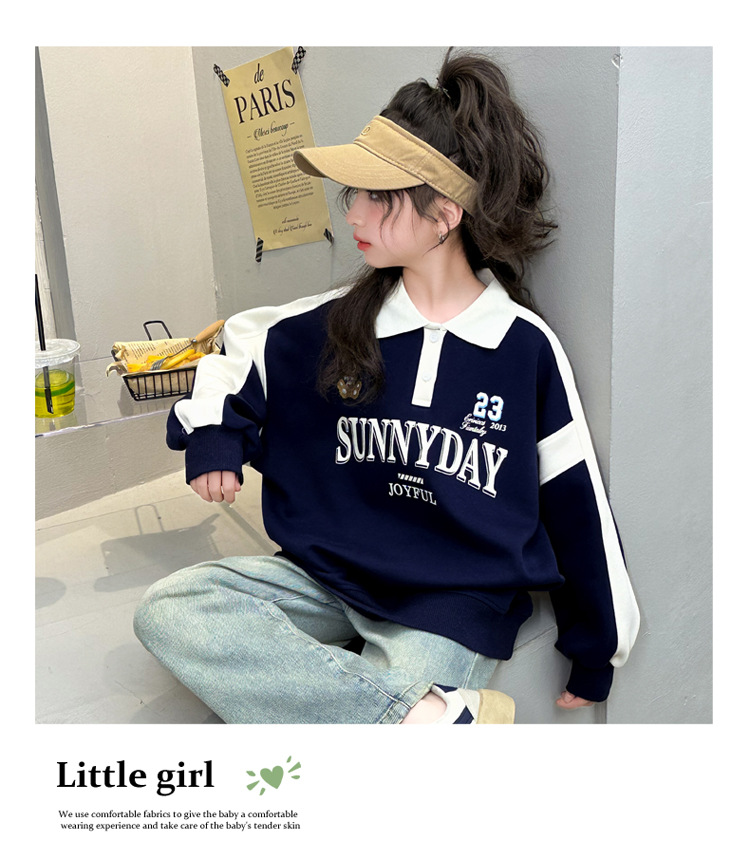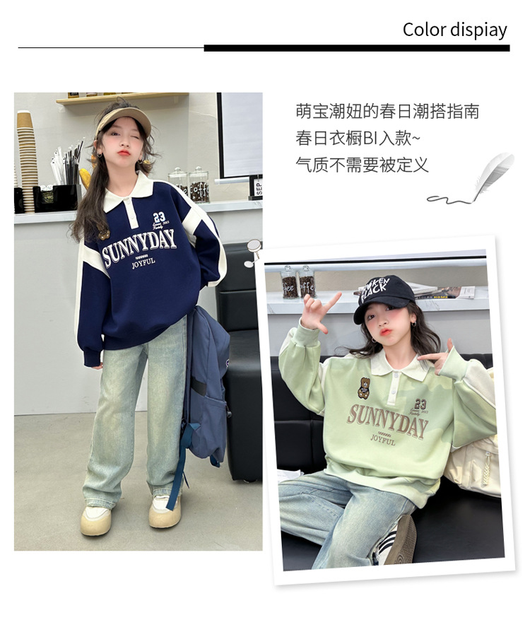 여아용 봄 캐주얼 스웨트셔츠 2026 신상 아동용 POLO 칼라 패셔너블 긴팔 상의, 어린 소녀들을 위한 봄 가을 스타일리쉬 상의스토어 가기