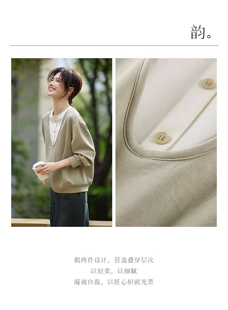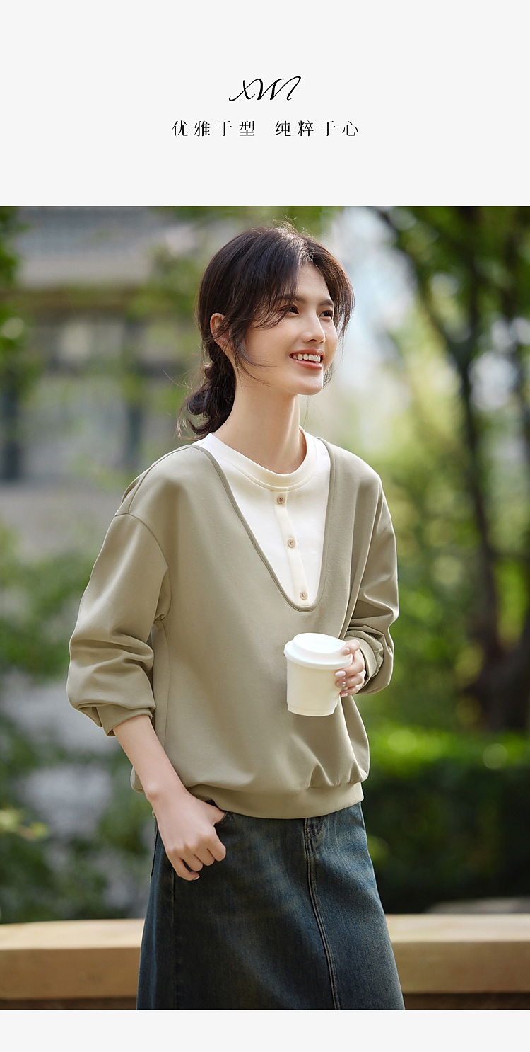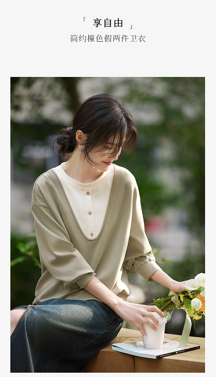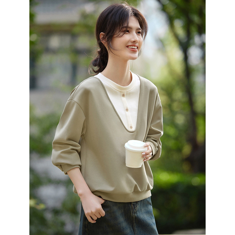 간단한 대비 컬러 가짜 투피스 스웨터 여성 2025 봄 새로운 디자인 독특한 세련된 탑스토어 가기