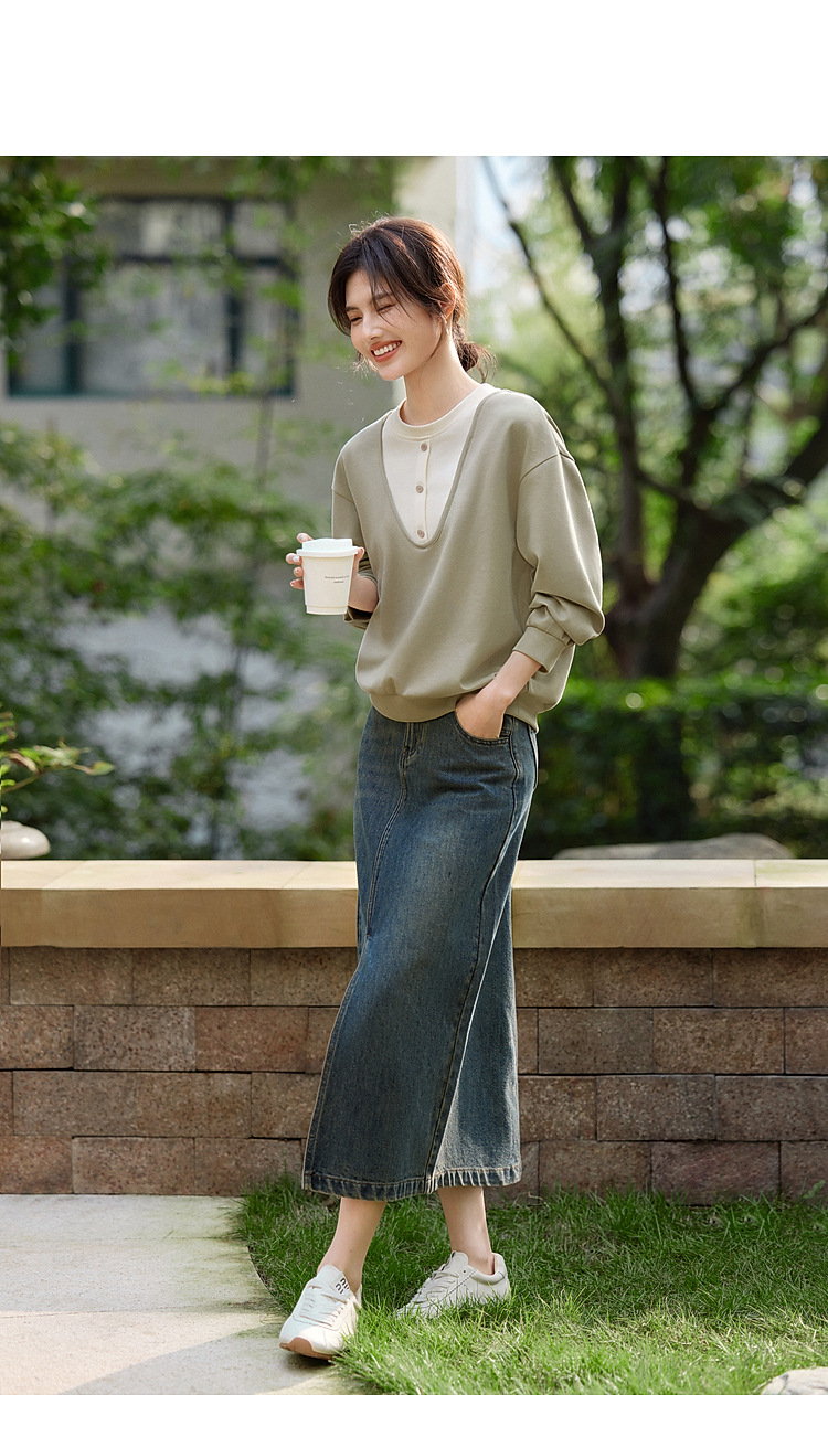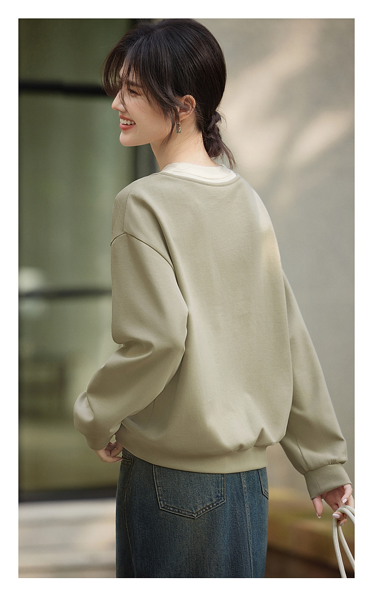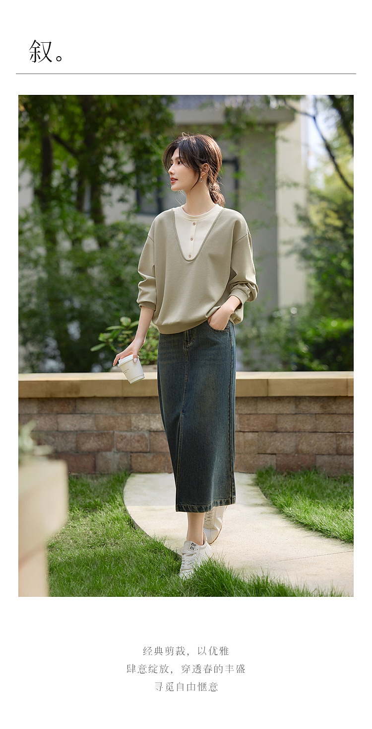 간단한 대비 컬러 가짜 투피스 스웨터 여성 2025 봄 새로운 디자인 독특한 세련된 탑스토어 가기