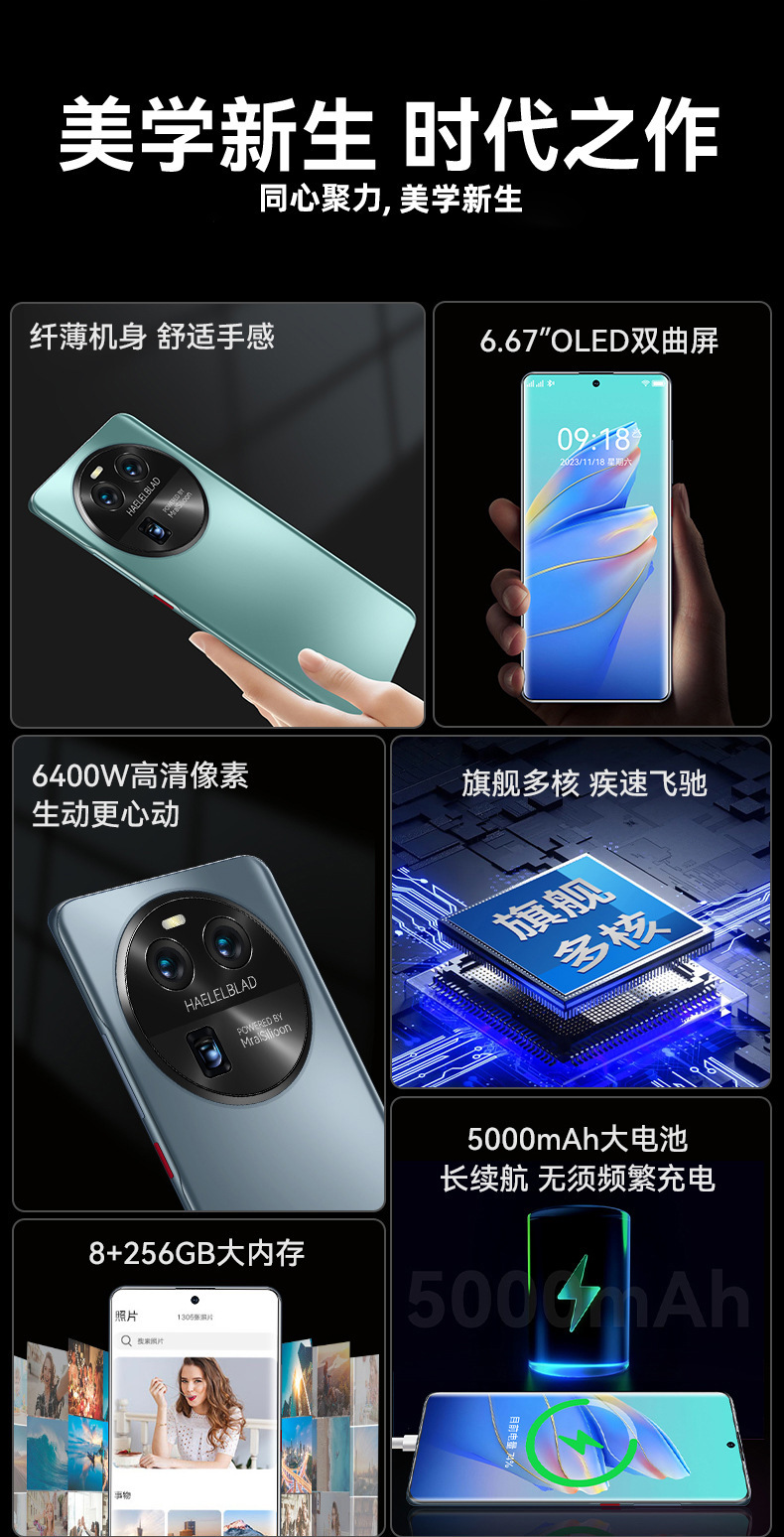 새로운 공식 정품 X80Pro 풀 넷콤 사업 5G 하이 엔드 안드로이드 국내 스마트 폰 곡선 화면 생성