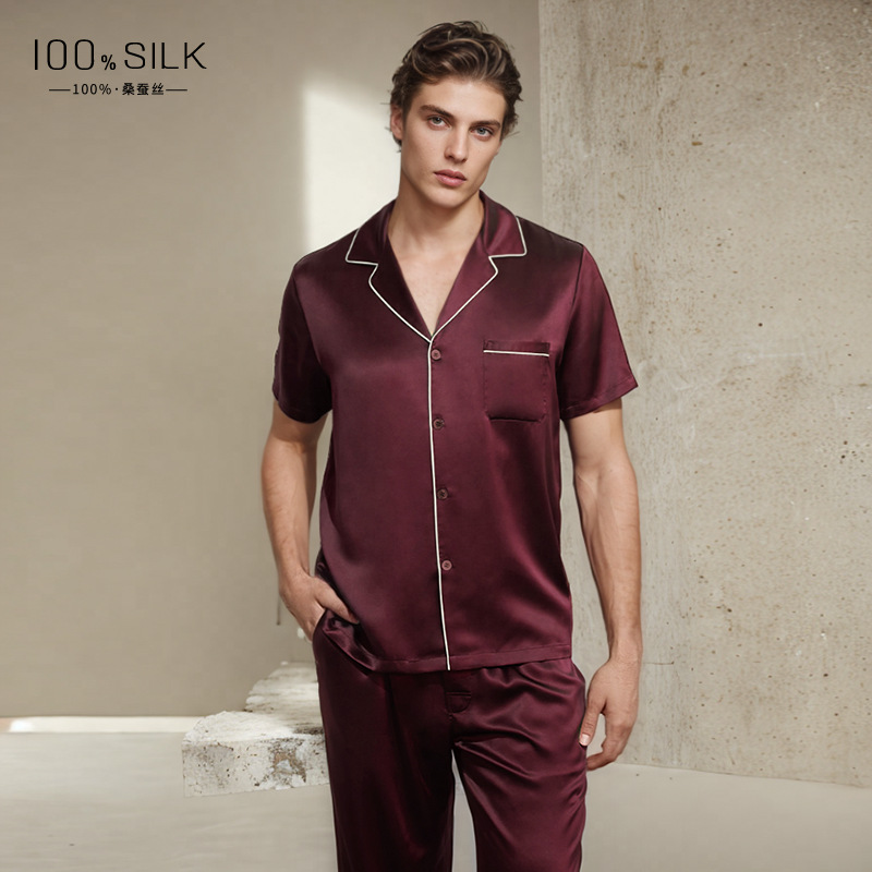 19mm 여름 실크 잠옷 남성용 반팔 긴바지 투피스 세트 100% 뽕나무 실크 외출복으로도 착용 가능한 홈웨어 세트