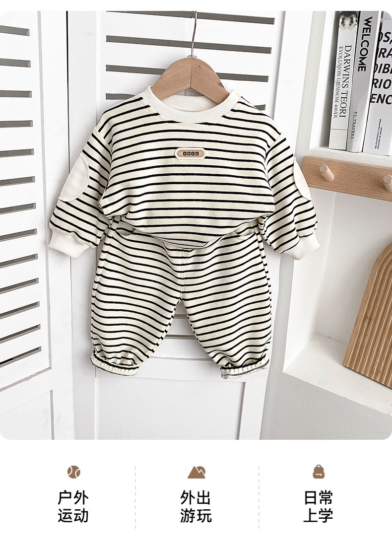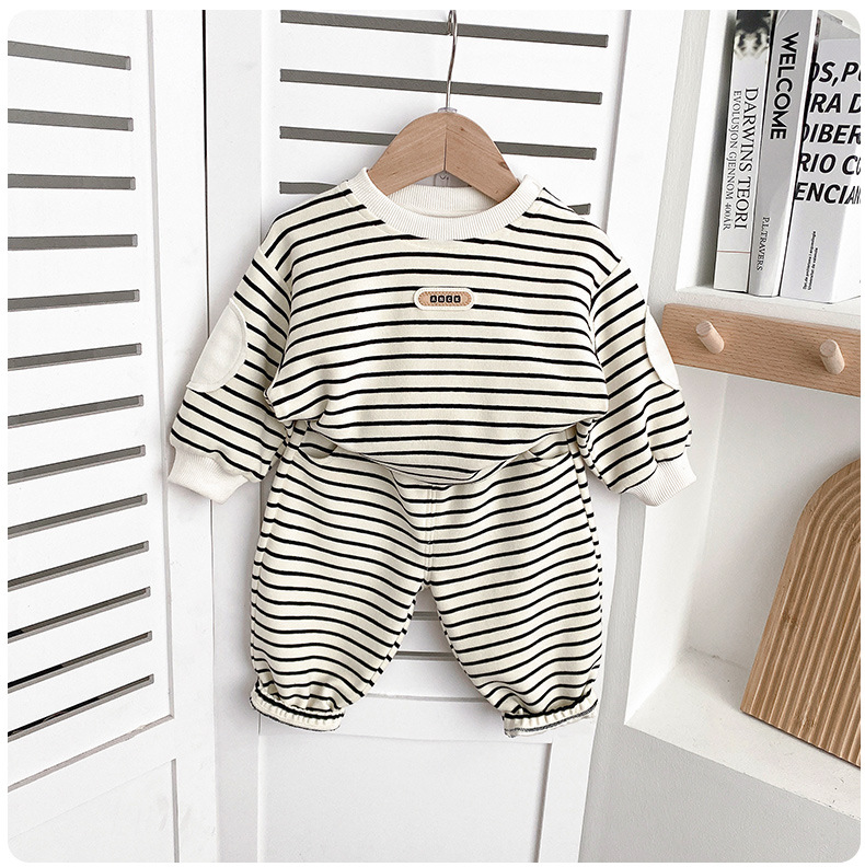 아기 옷 세트 가을옷 남아용 스트라이프 신상 유아 남아용 분리형 1세 봄 가을 투피스 세트