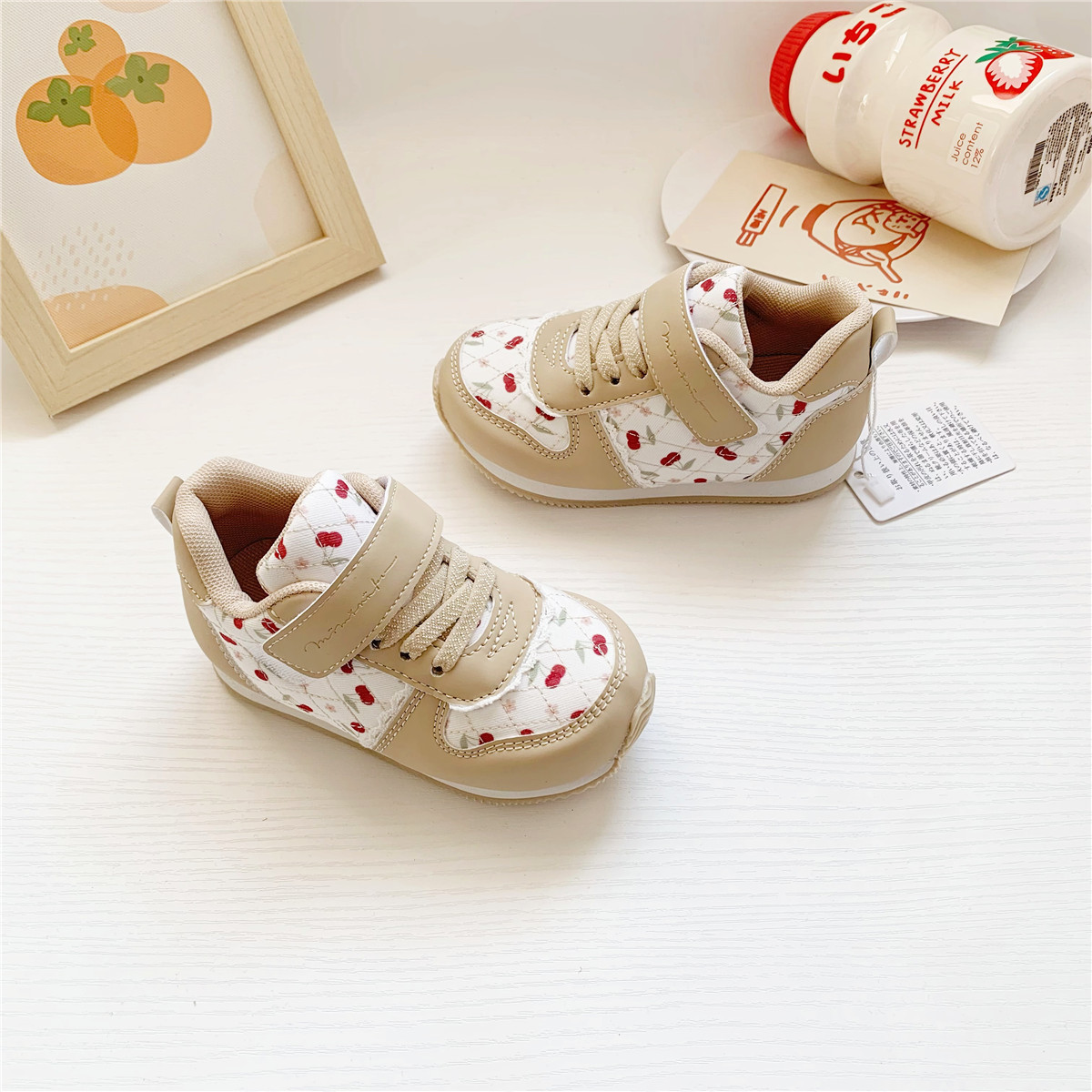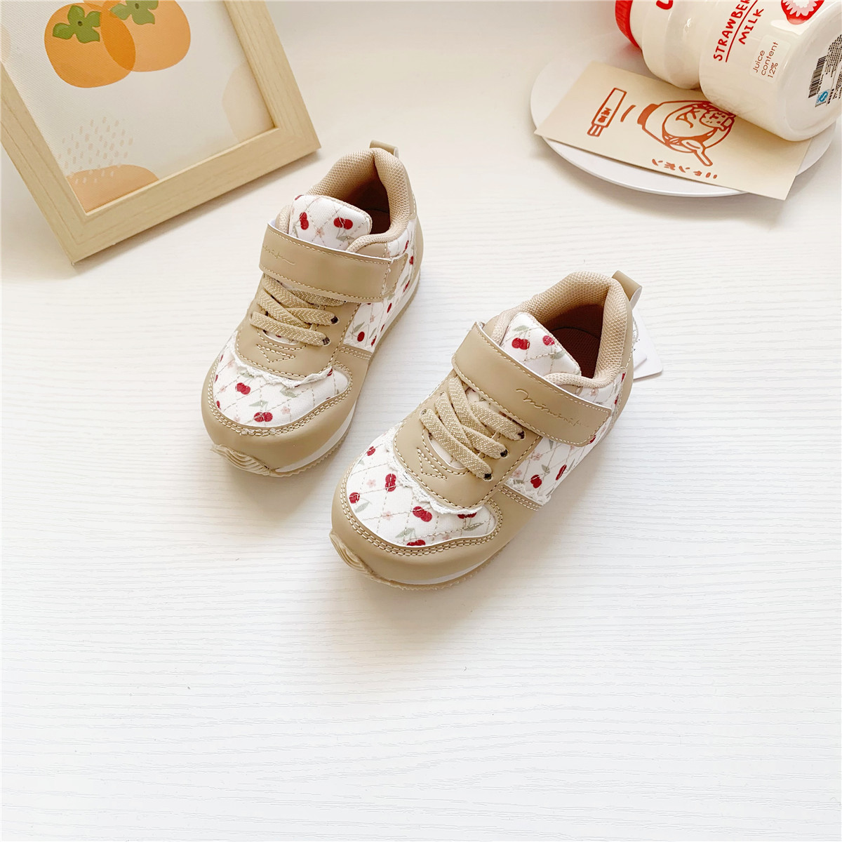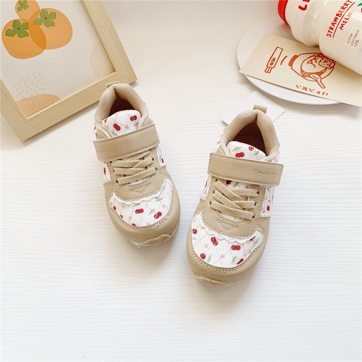일본 신제품 수출 봄 mmrk 체리 어린이 운동화 벨크로 포레스트 검프 신발 걸스 신발