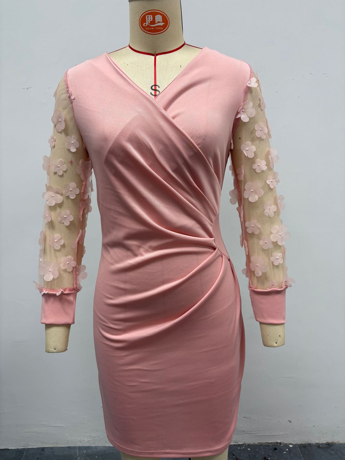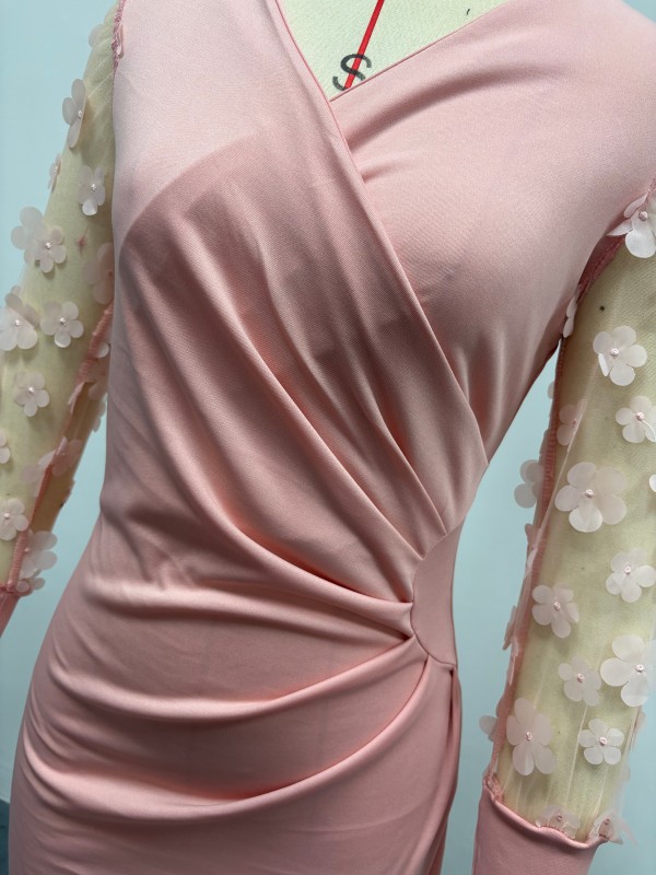 2023 독립 역은 아마존 폭발 가을과 겨울 새로운 V 넥 레이스 긴 소매 엉덩이 허리 원피스 여성을 기원합니다