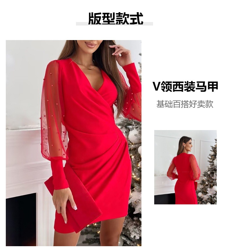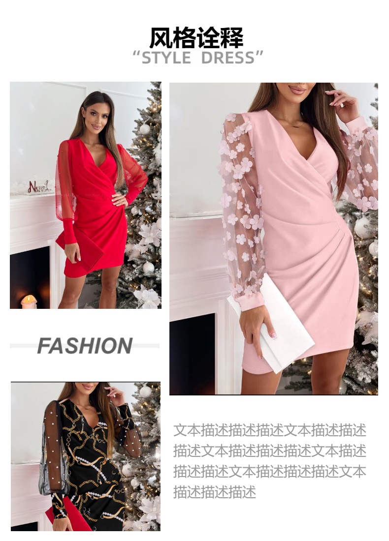 2023 독립 역은 아마존 폭발 가을과 겨울 새로운 V 넥 레이스 긴 소매 엉덩이 허리 원피스 여성을 기원합니다스토어 가기