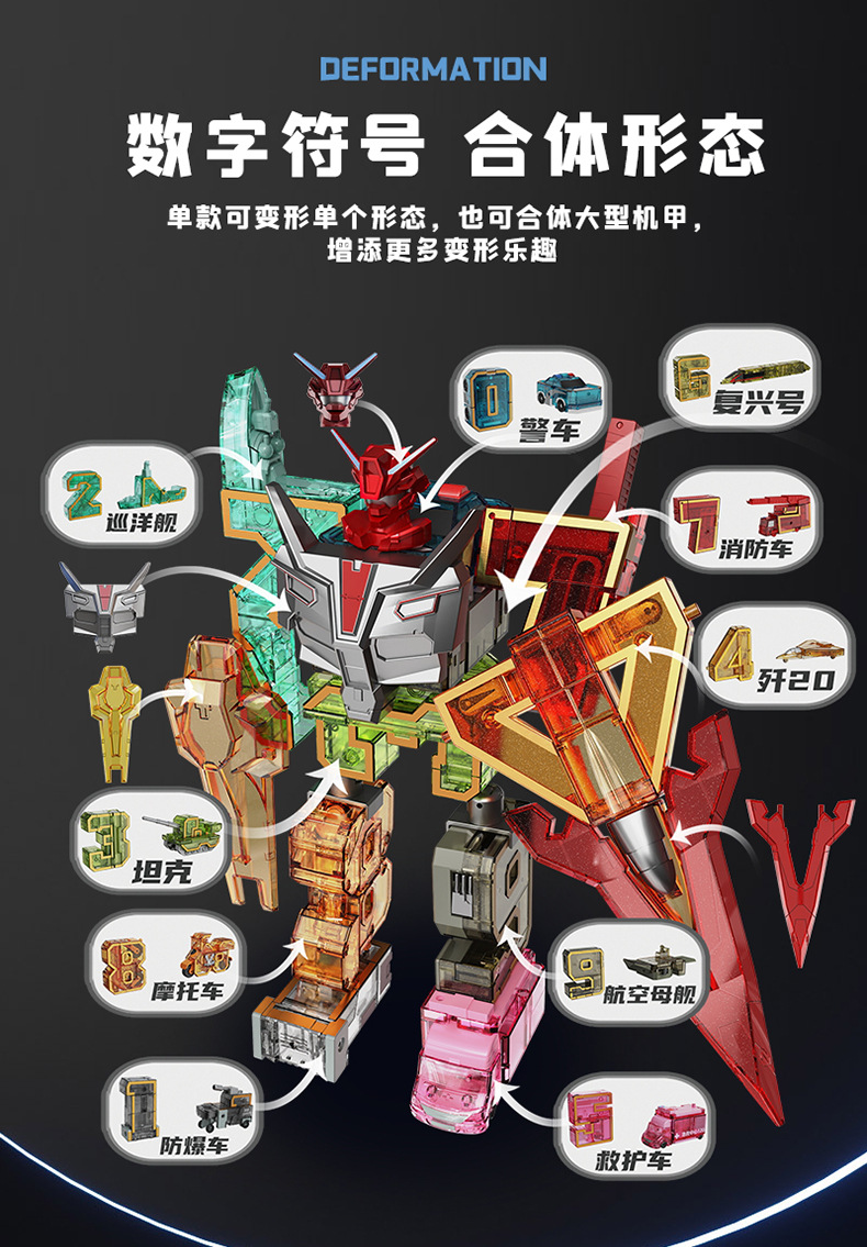 새로운 디지털 변형 장난감 소년 적합 로봇 킹 콩 빌딩 블록 퍼즐 편지 조립 자동차 새해 선물