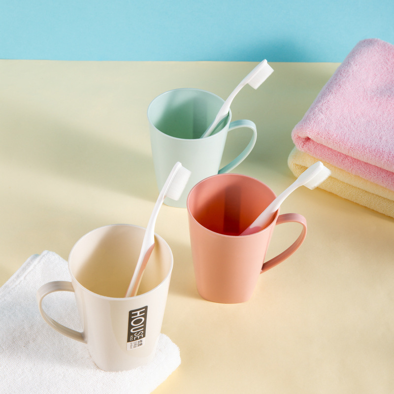 가정용 칫솔 컵 플라스틱 드롭 방지 두꺼운 세척 컵 핸들 어린이 커플 간단한 휴대용 칫솔 컵