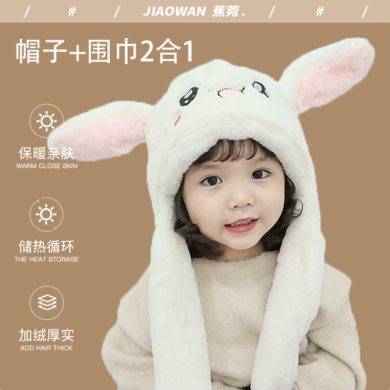 어린이 모자와 목 통합 가을과 겨울 소녀 토끼 귀 움직일 수있는 스카프 두꺼운 봉제 귀여운 아기 귀 보호