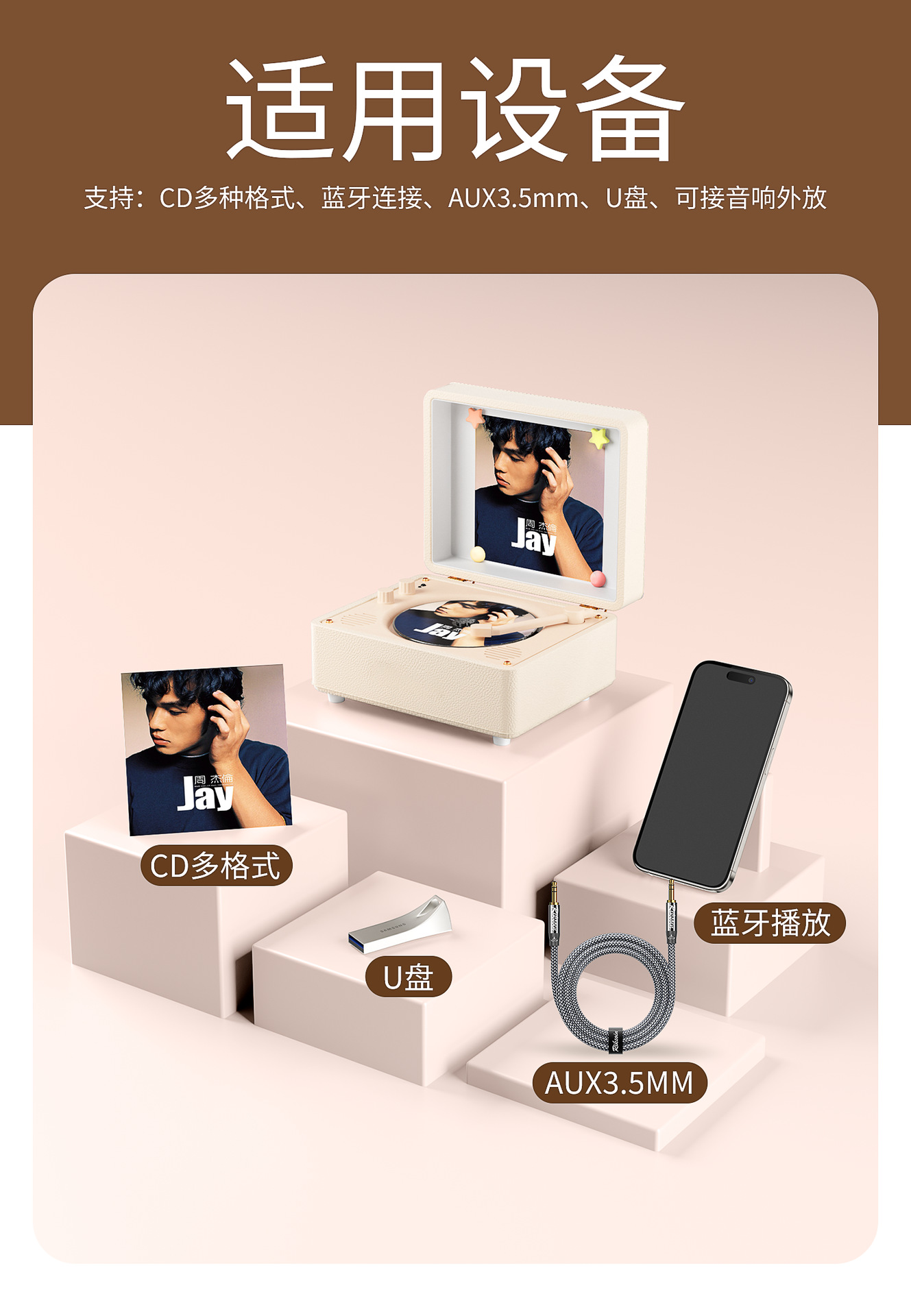 크로스보더 무역 메이링 M525i 레트로 CD 플레이어 라디오 가죽 크리에이티브 앨범 디스크 블루투스 스피커스토어 가기