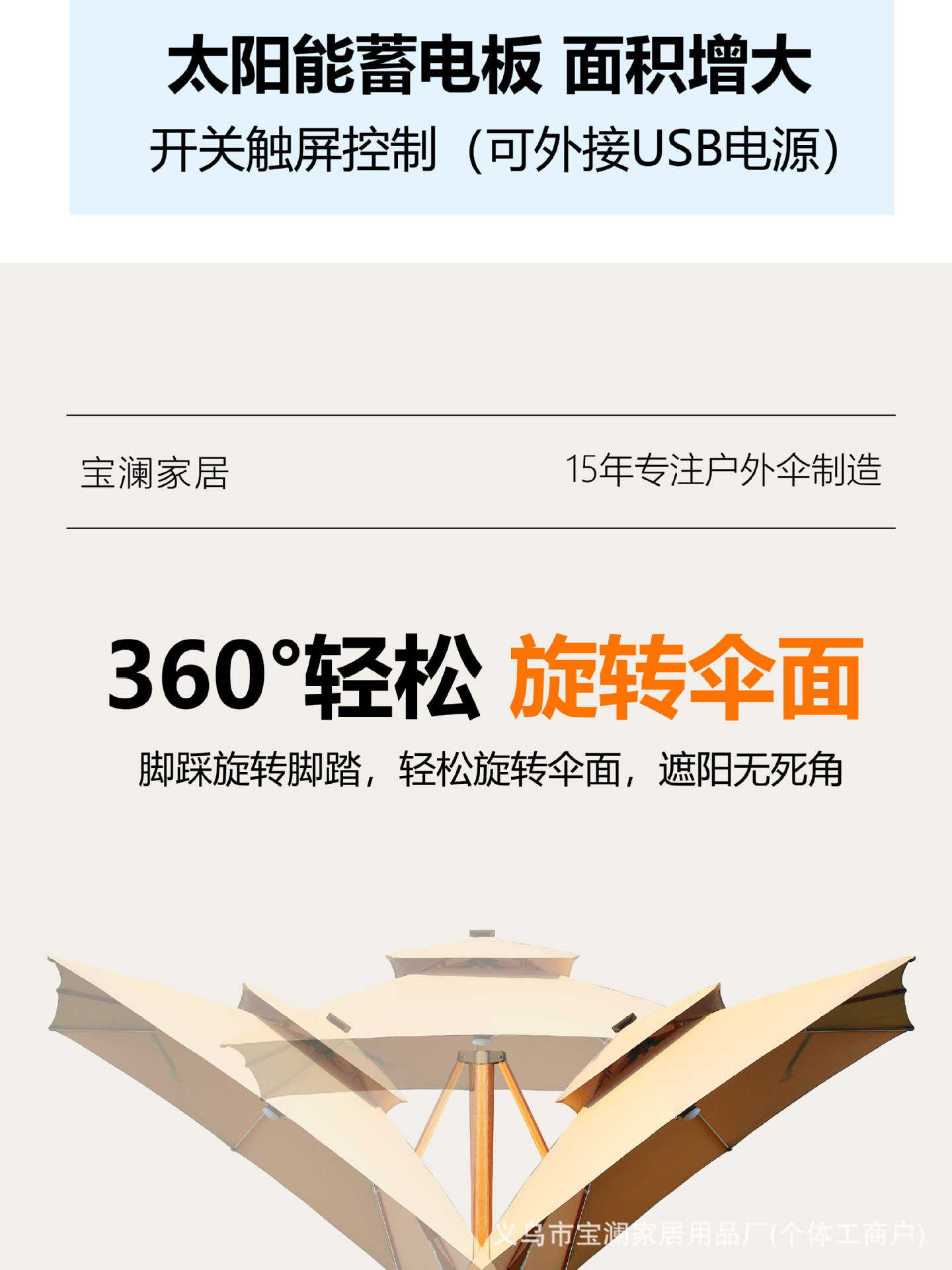 코트야드 로마 우산 야외 정원 태양 우산 태양 에너지 조명 카페 야외 상업용 대형 태양 우산 태양 보호