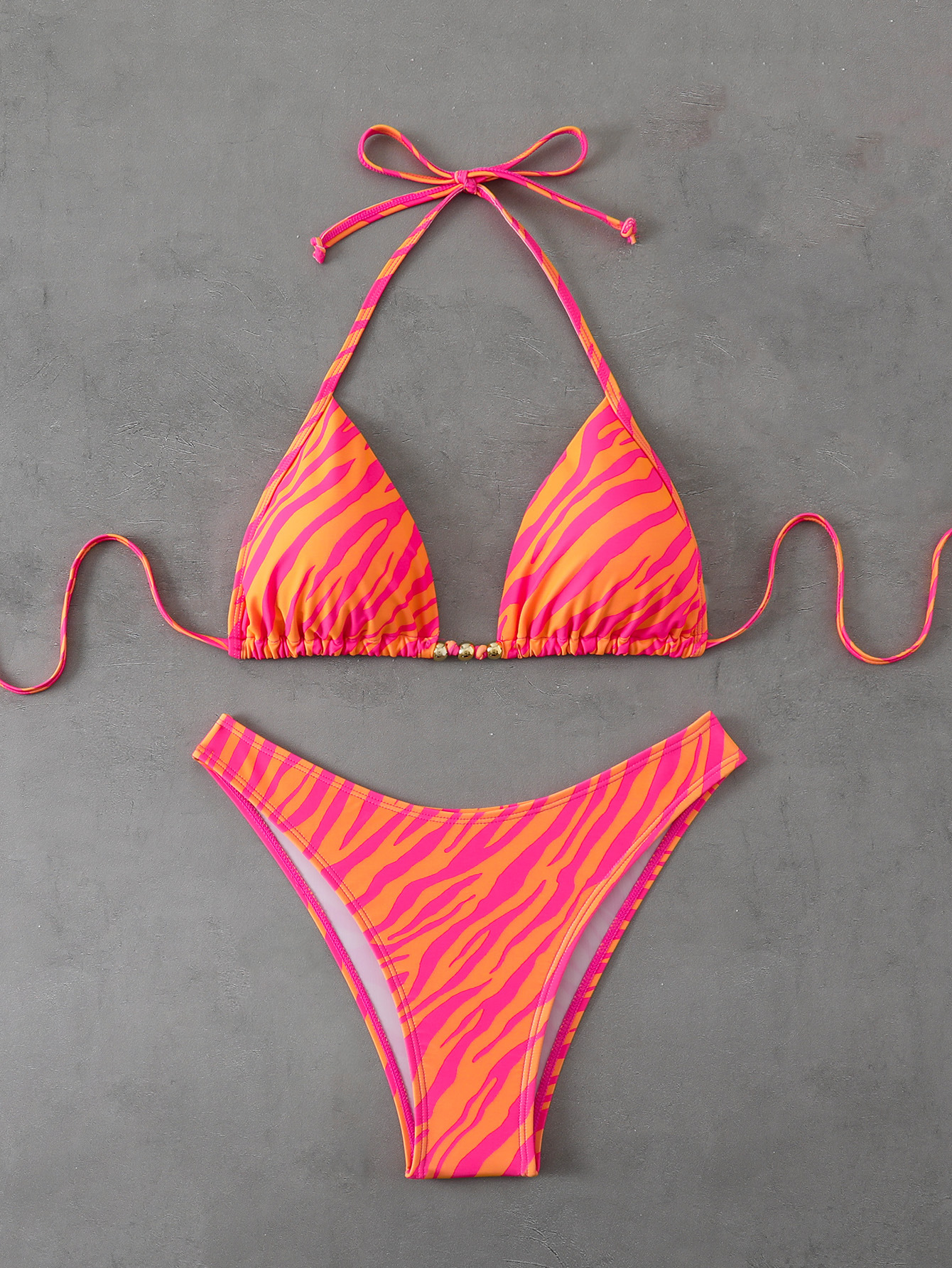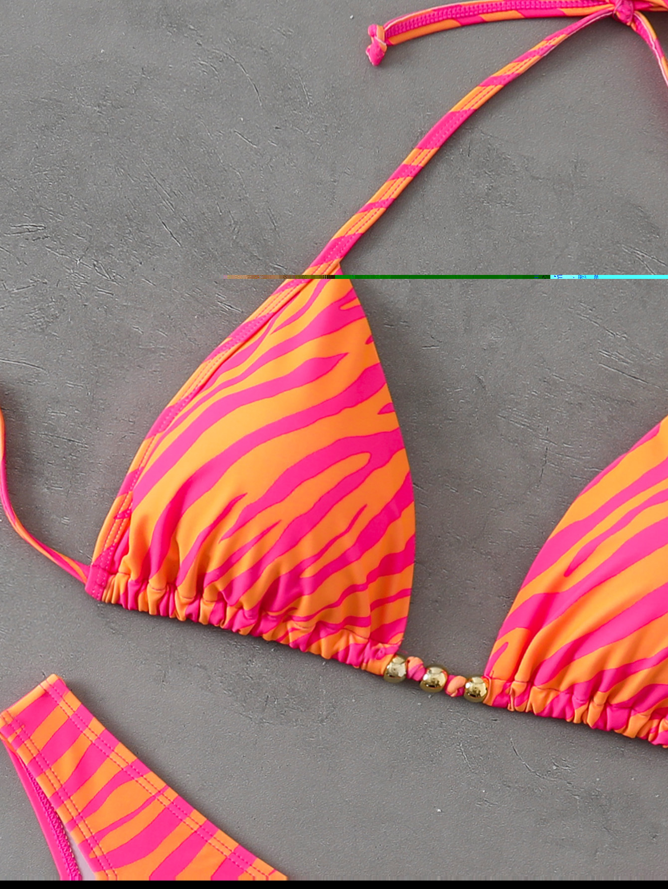 유럽과 미국의 국경을 넘는 새로운 여성 패션 인쇄 섹시한 교수형 목 레이스 업 3 점 분할 비키니 수영복 도매스토어 가기
