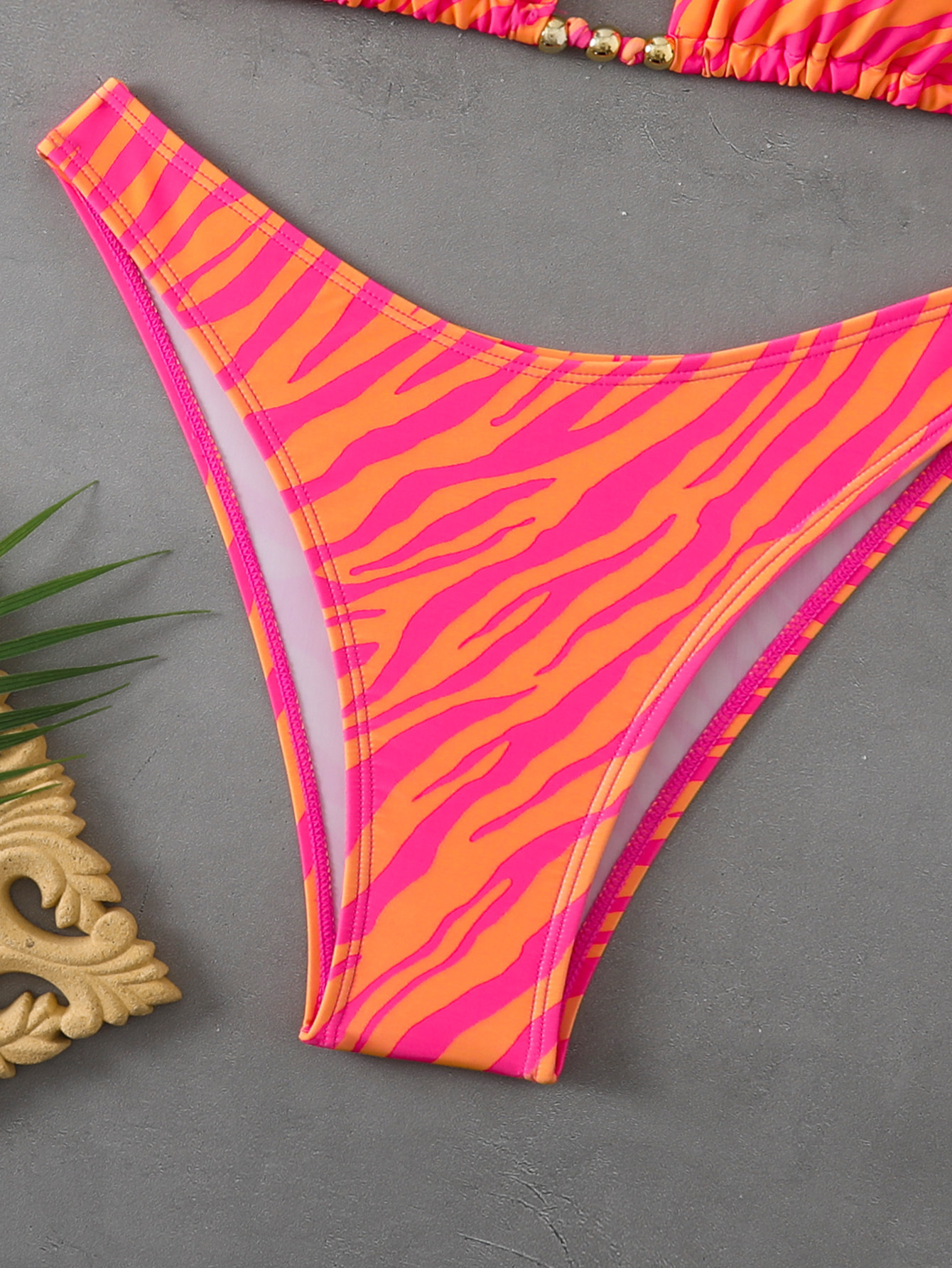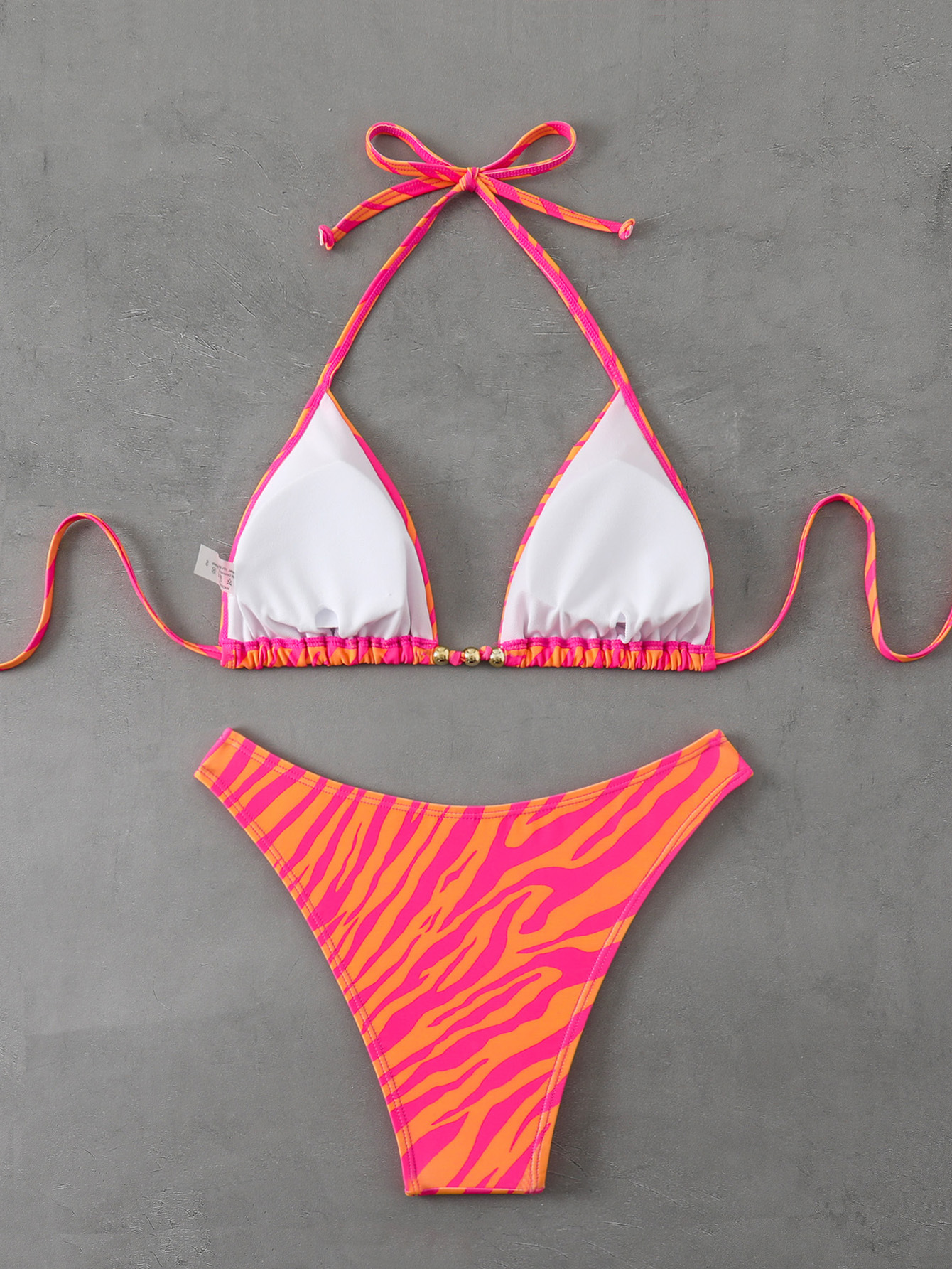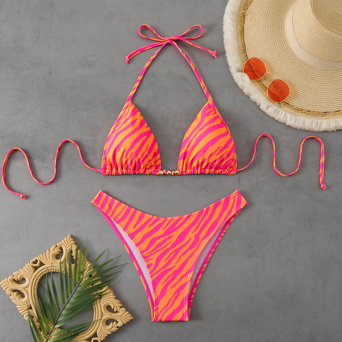 유럽과 미국의 국경을 넘는 새로운 여성 패션 인쇄 섹시한 교수형 목 레이스 업 3 점 분할 비키니 수영복 도매