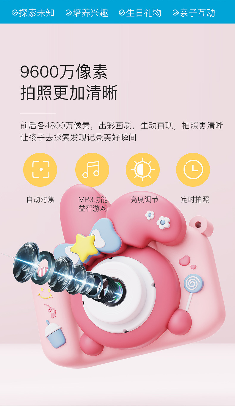 국경을 넘는 새로운 어린이 카메라 카메라 비디오 게임 음악 고화질 듀얼 카메라 디지털 카메라 생일 듣기