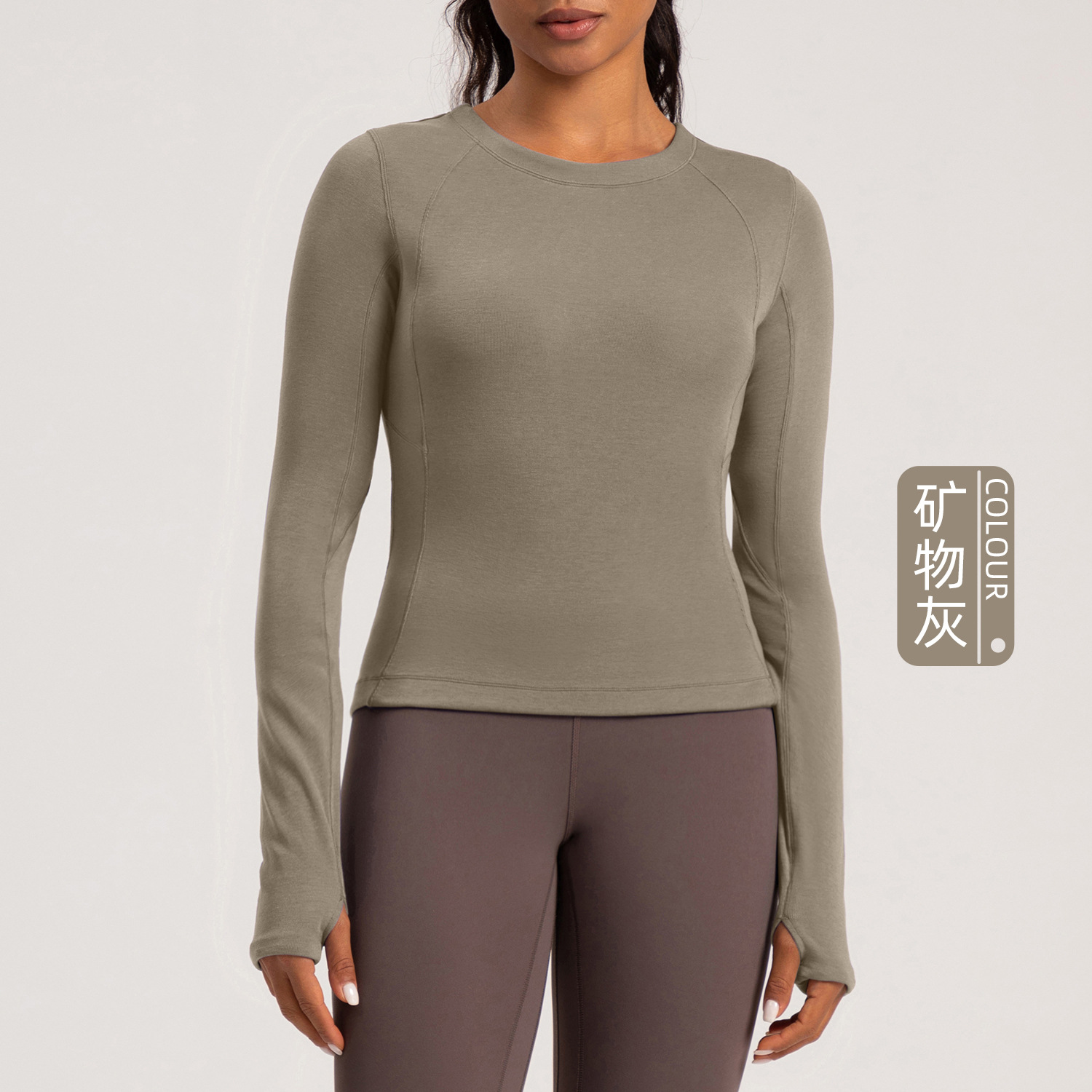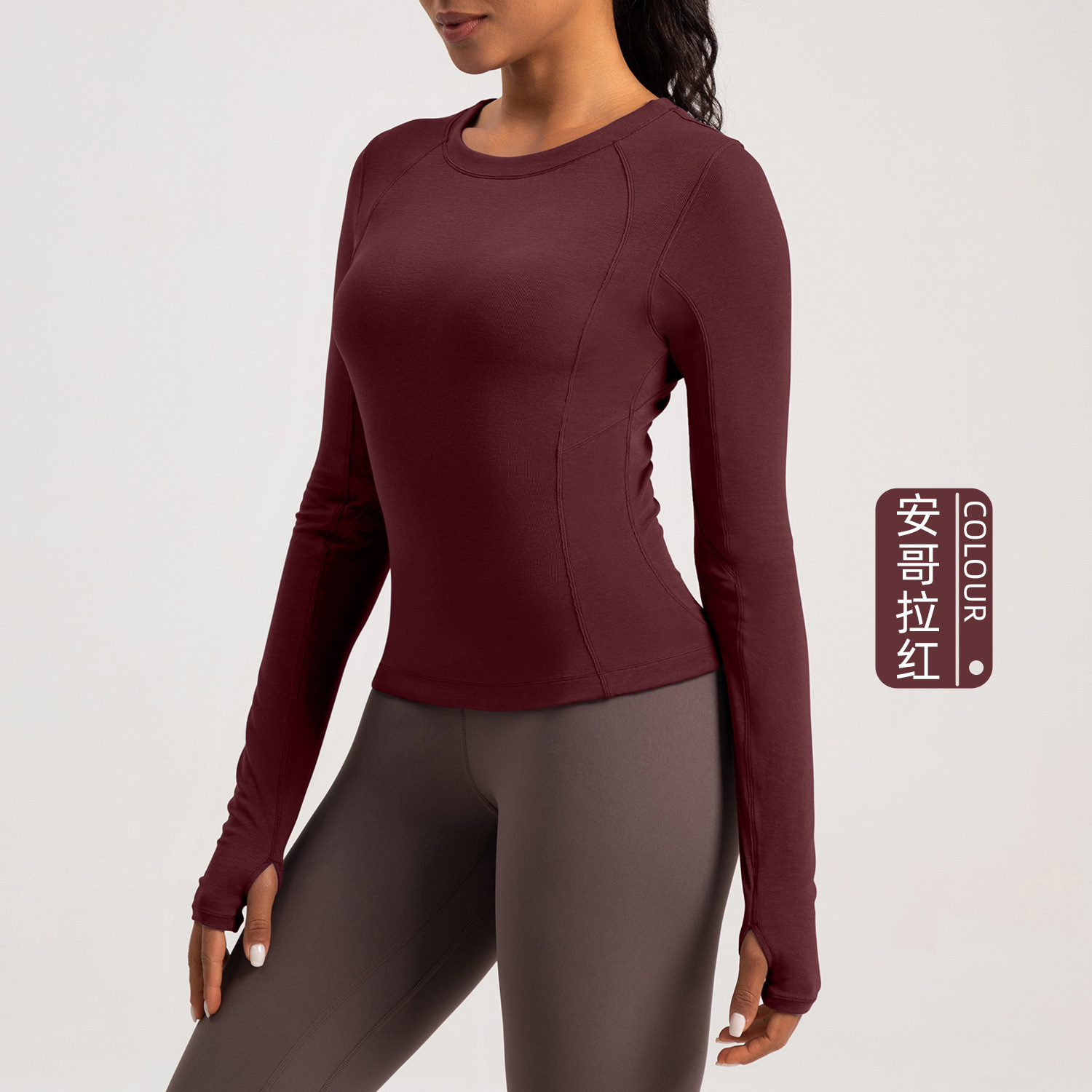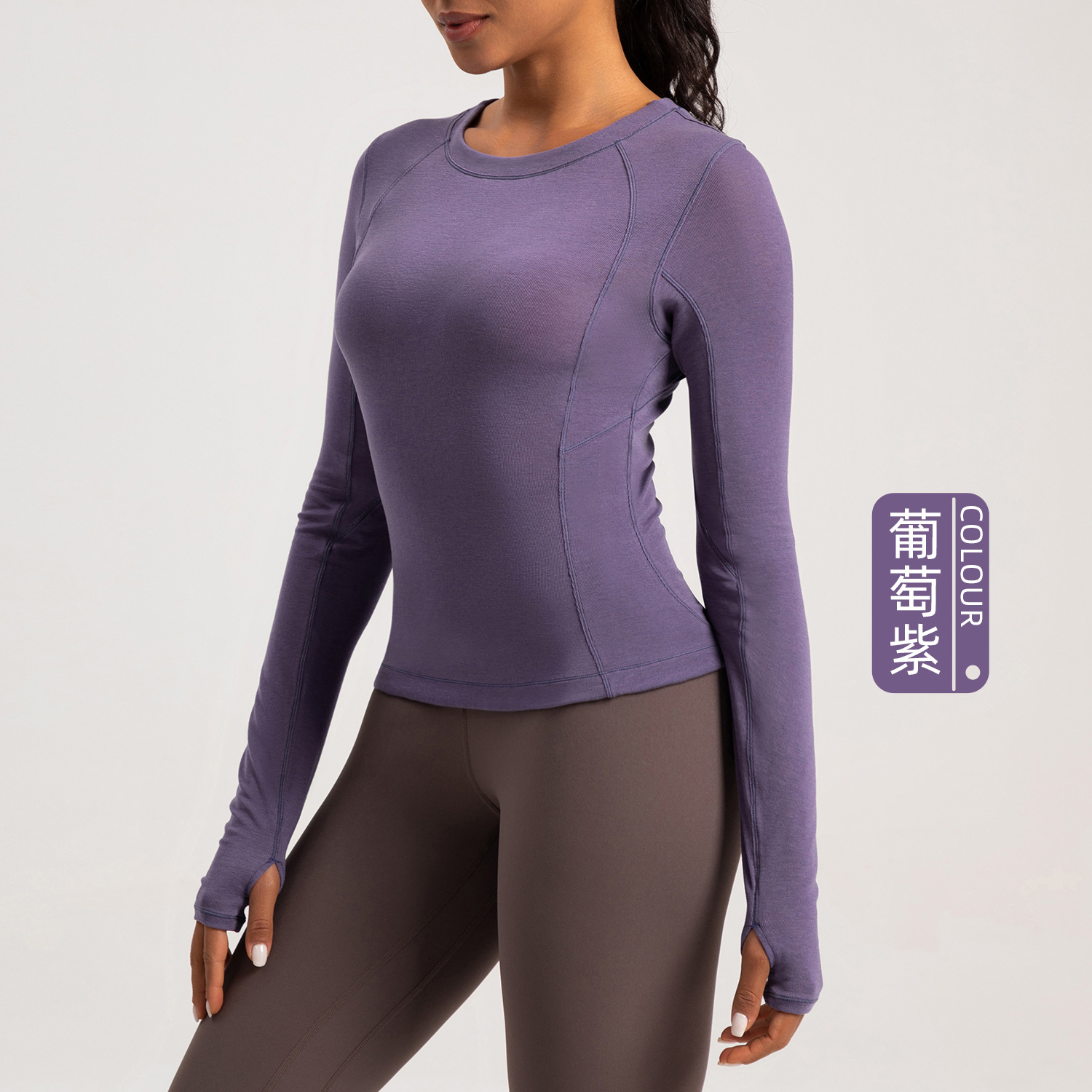아테나 루루 신상 울 요가복 여성용 메리노 라운드넥 누드 느낌 슬림 긴팔 티셔츠 피트니스 탑스토어 가기