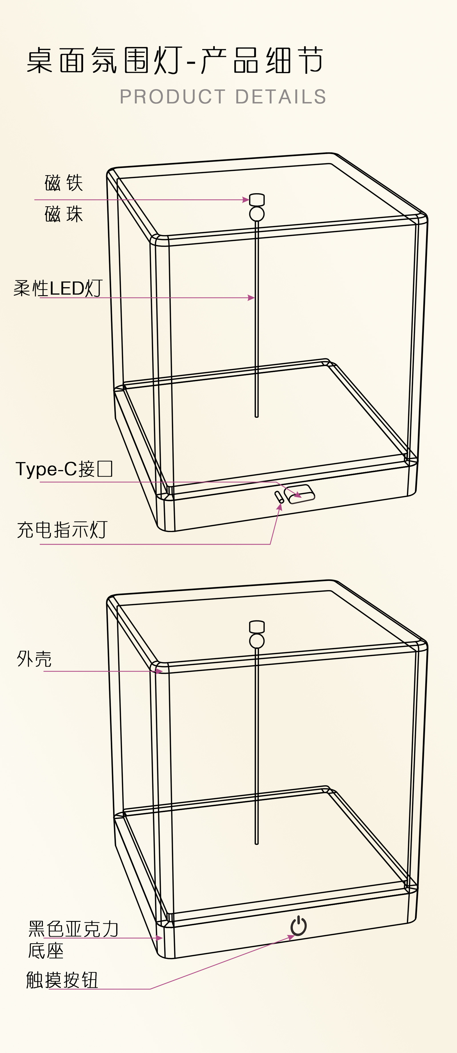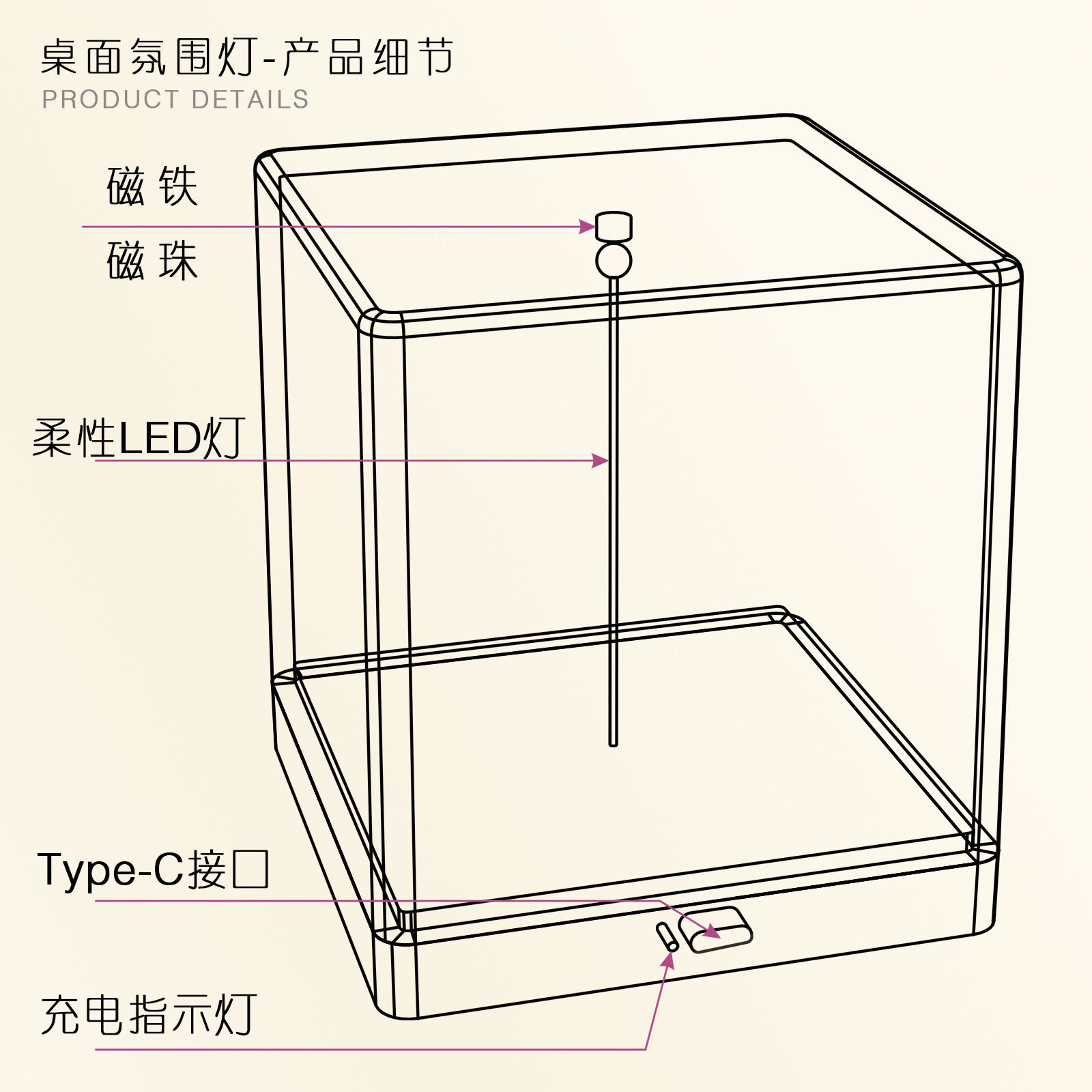 장식용 부드러운 조명 분위기의 퀀텀 램프, 침실 및 서재용 다단계 조광 충전식 터치 3D 플렉시블 자석식 야간 조명