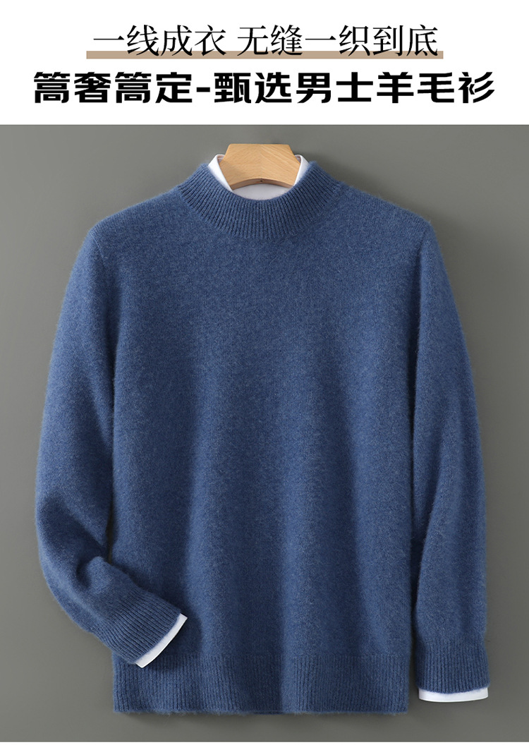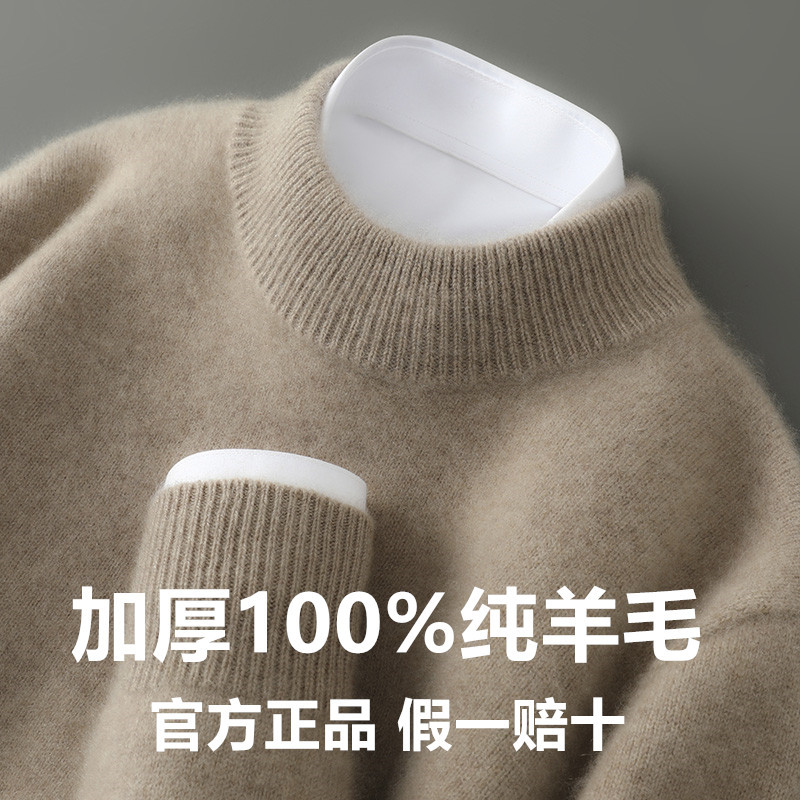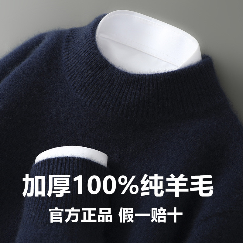 더블 좌초 두꺼운 100 순수 울 스웨터 남자 가을 및 겨울 세미 하이 넥 소프트 왁스 루즈 풀오버 니트베이스 셔츠 스웨터스토어 가기