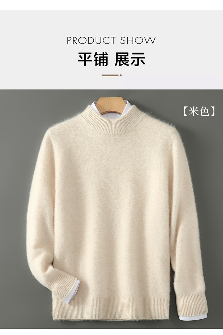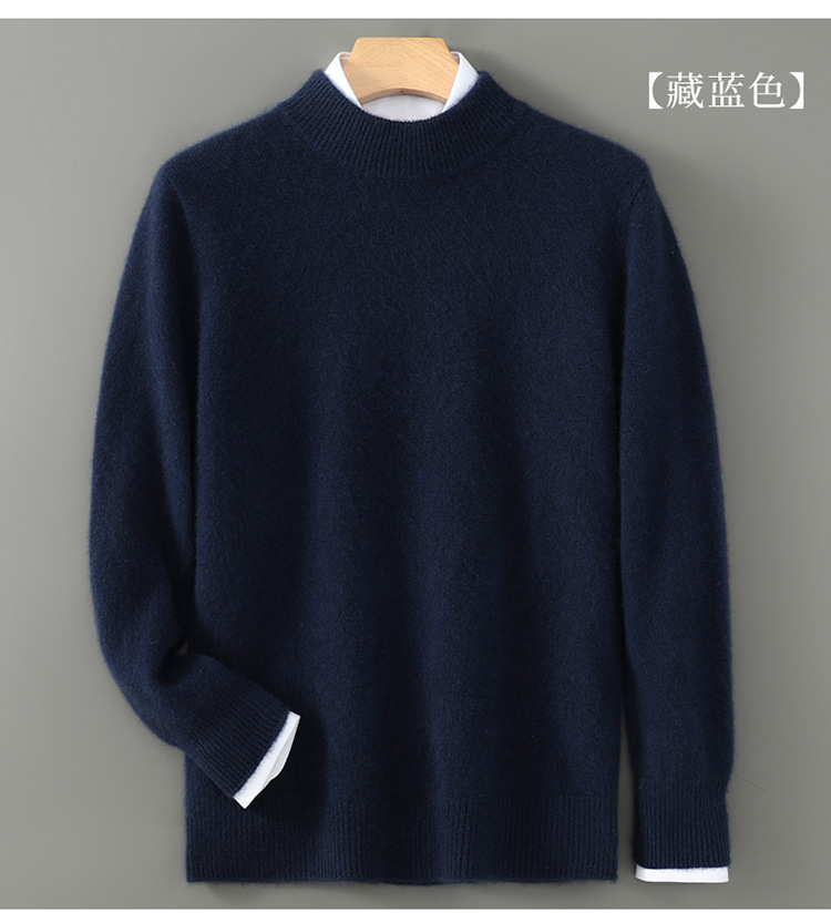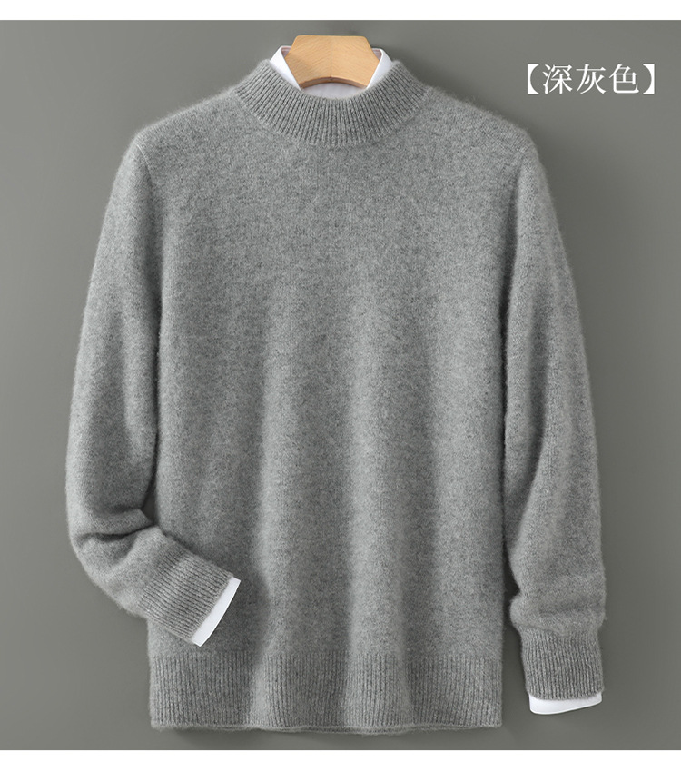 더블 좌초 두꺼운 100 순수 울 스웨터 남자 가을 및 겨울 세미 하이 넥 소프트 왁스 루즈 풀오버 니트베이스 셔츠 스웨터