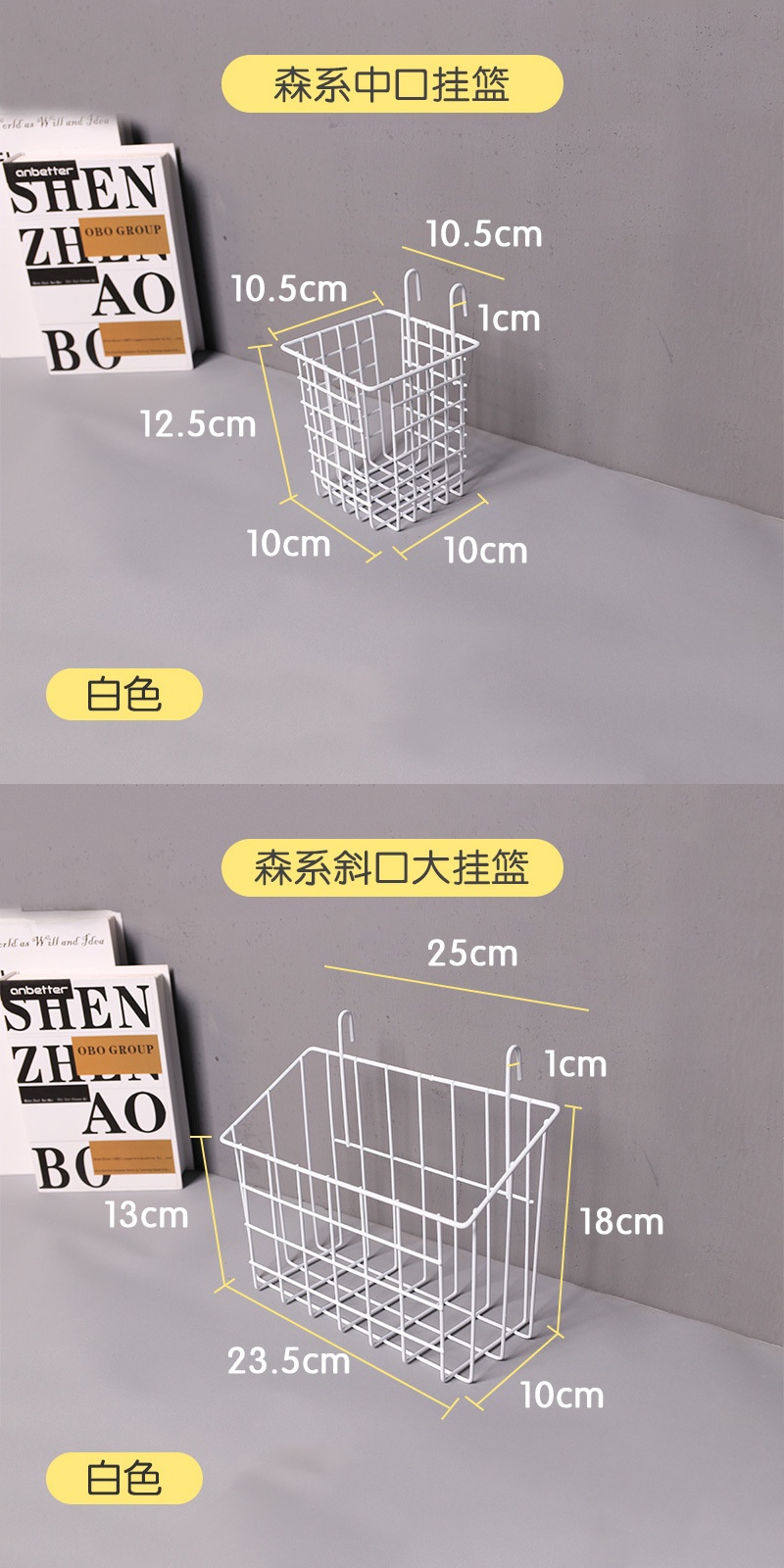 • 흰색 이중 후크 폐쇄 걸이 바구니 23.5*10*8