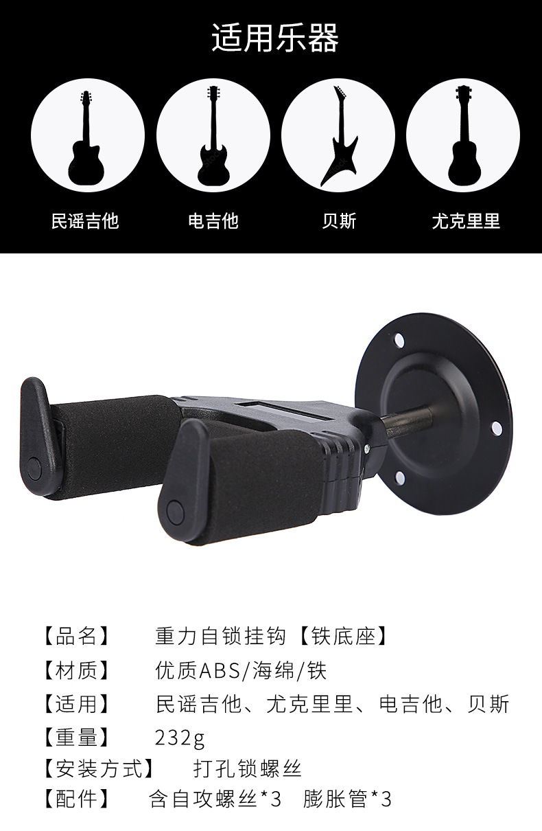 기타 후크 중력 셀프 잠금 기타 벽 행거 ukulele erhu 기타 벽 스탠드 기타 액세서리스토어 가기