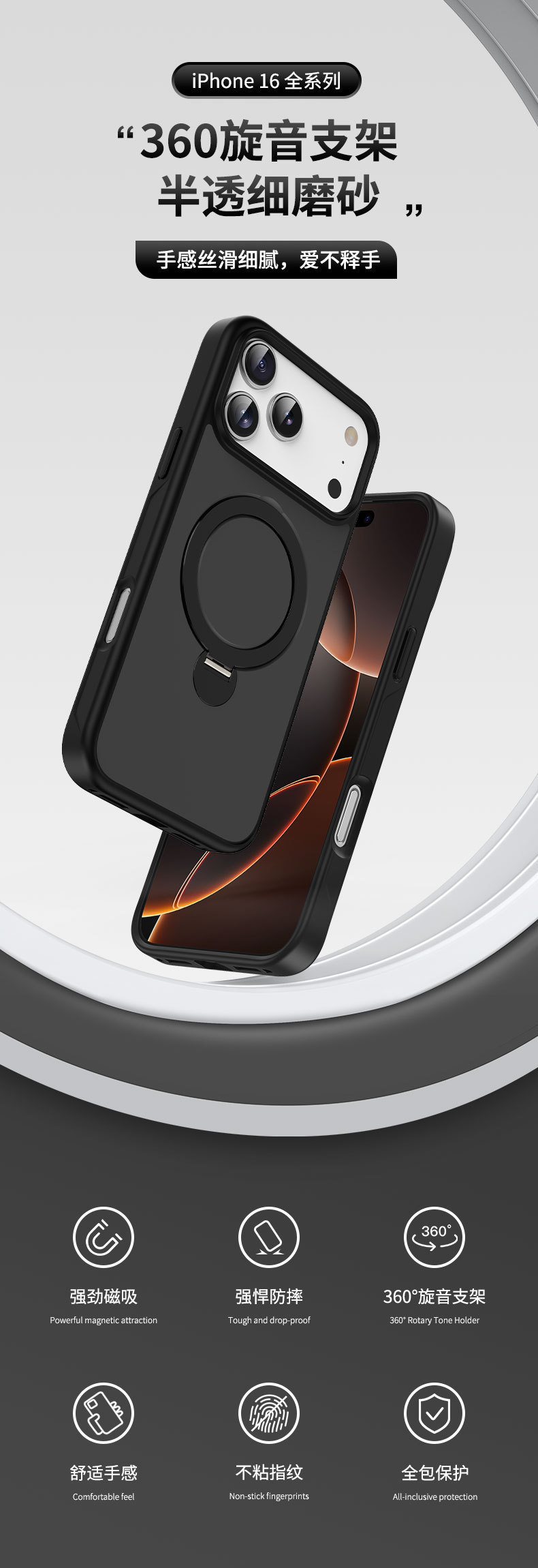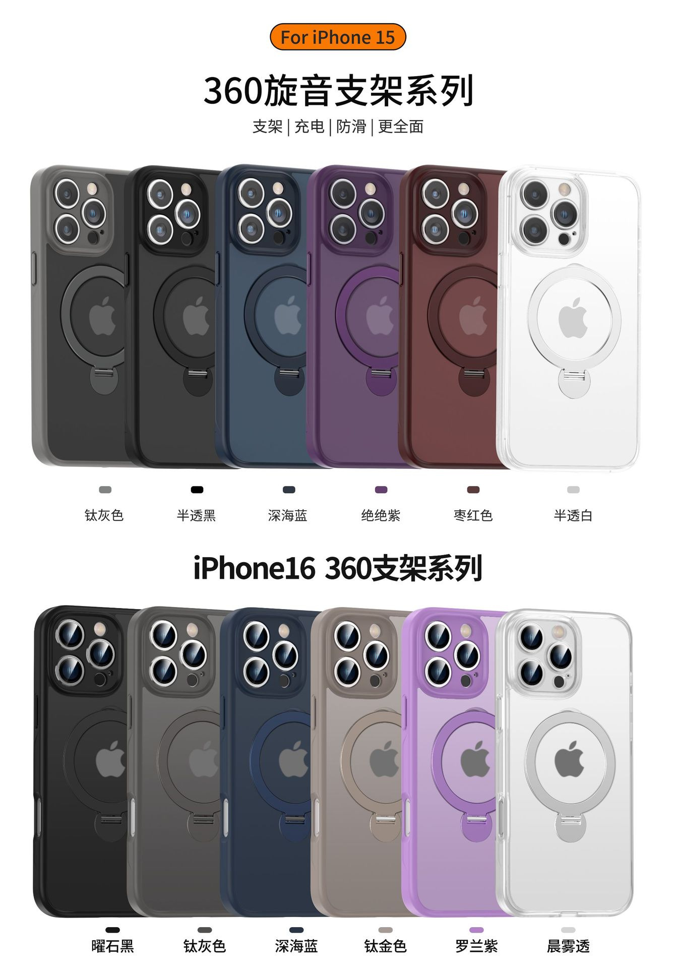 360 회전 자기 브래킷 iphone16 전화 케이스 프로스테드 모든 포함 애플 15ProMax 보호 커버에 적합