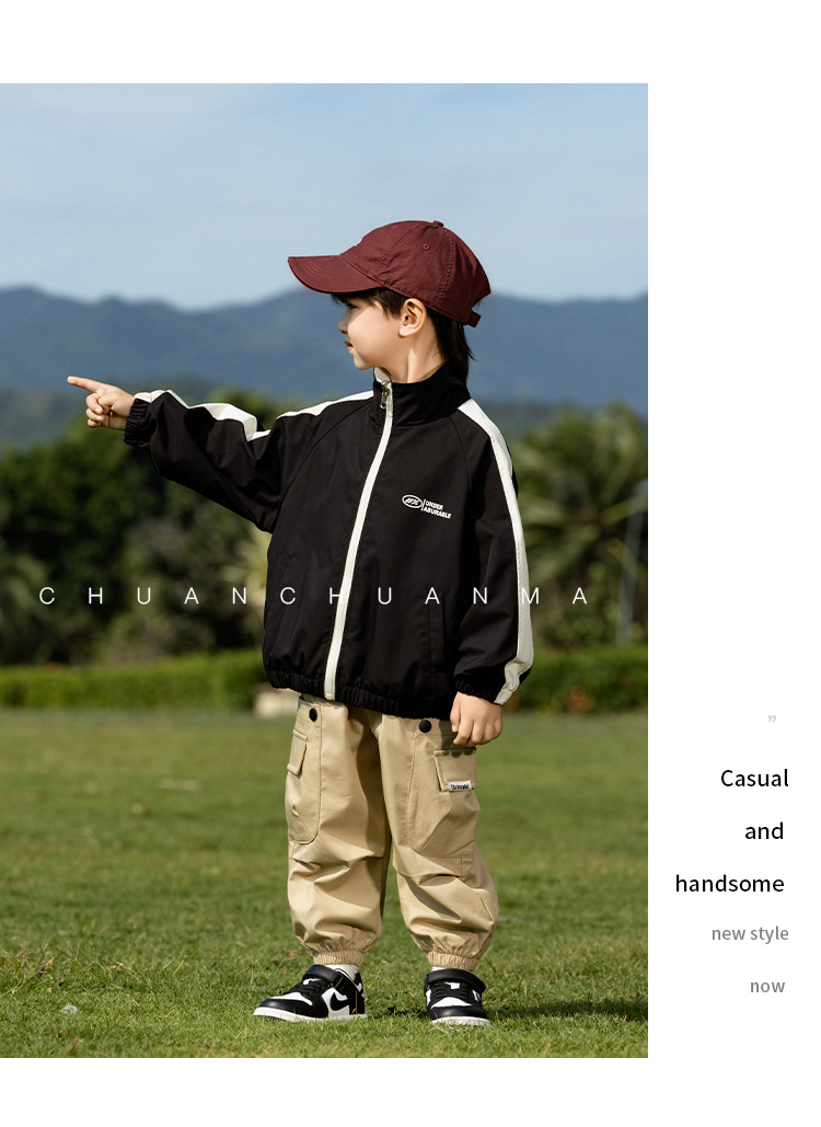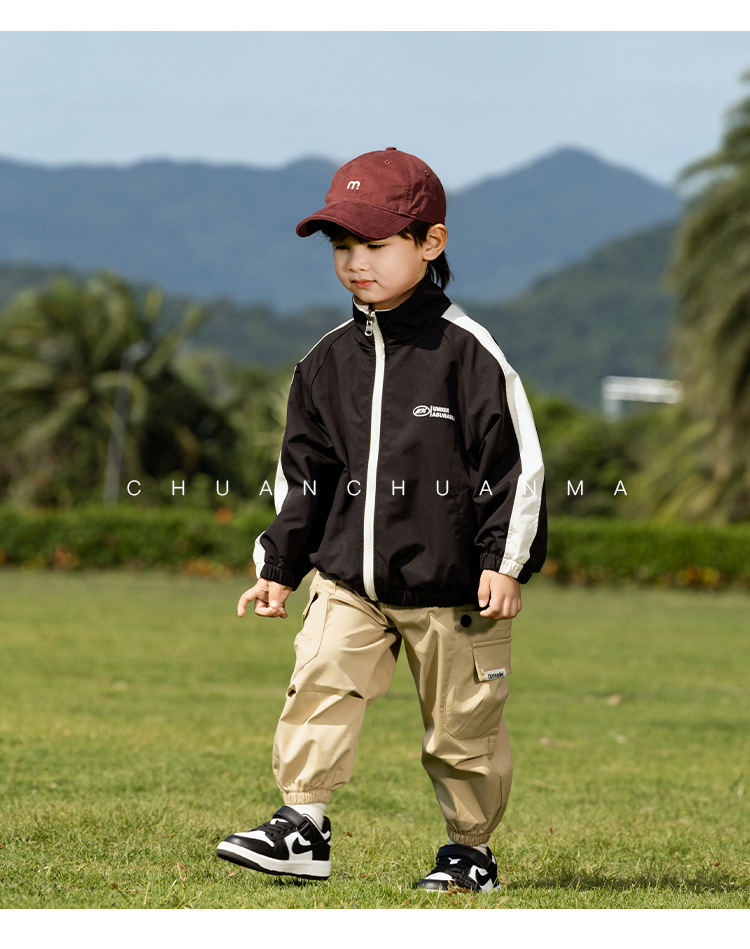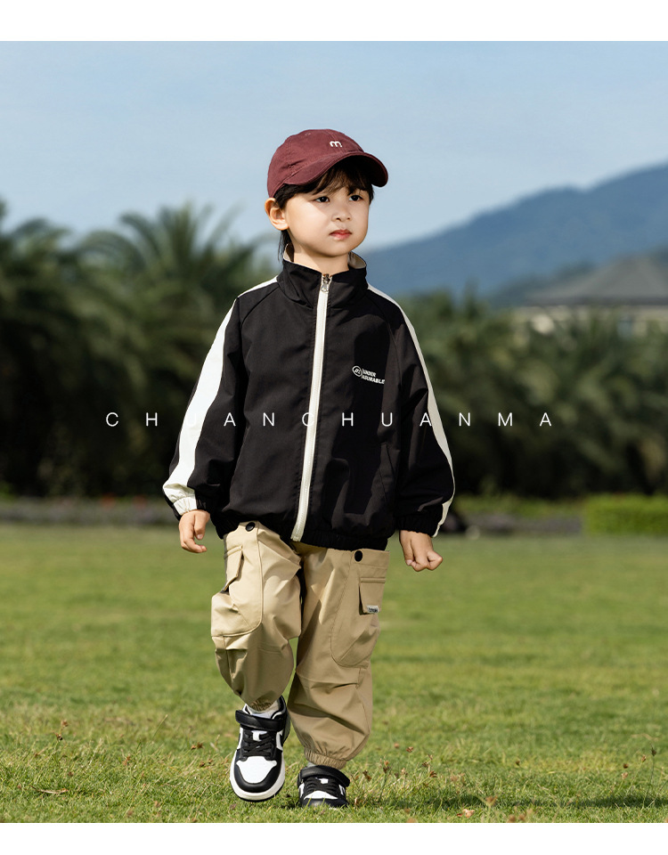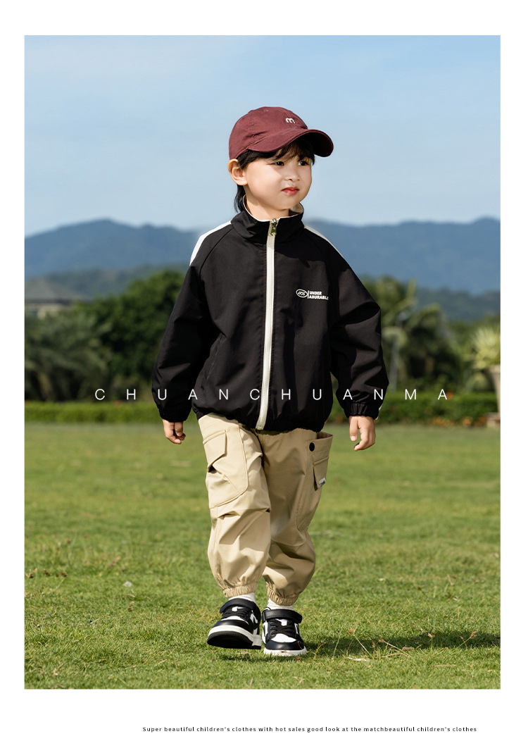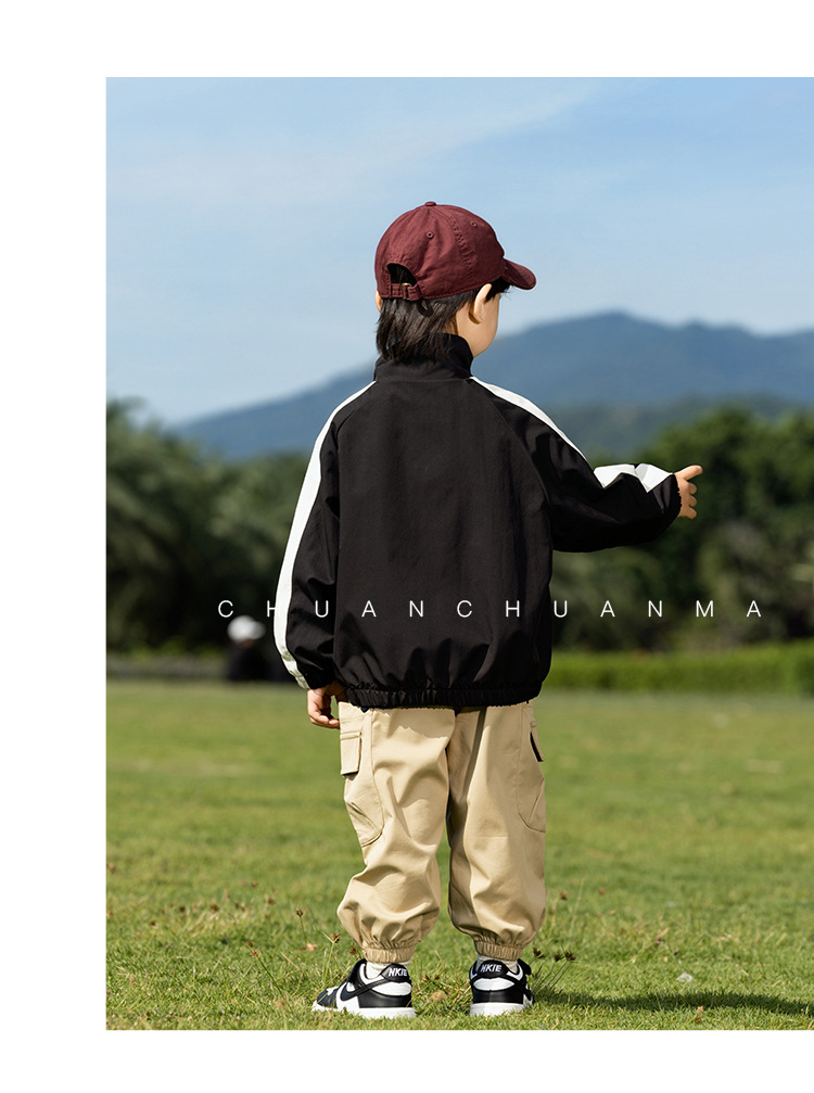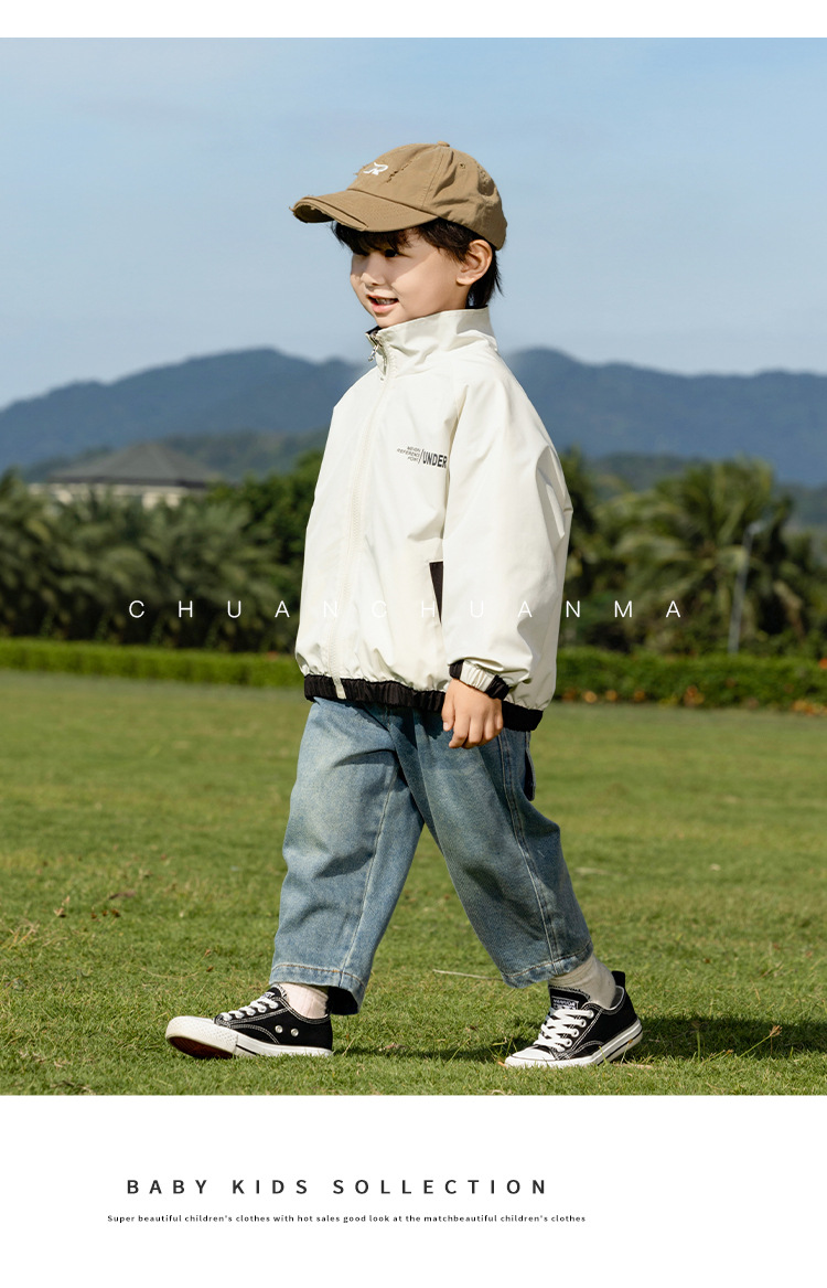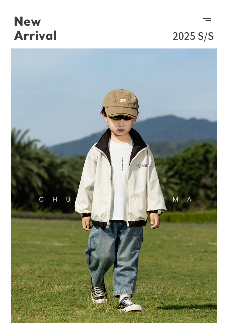 샤나오 2025 봄 새 아동복 일본 양면 자켓 소년의 봄과 가을 편지 유행 재킷