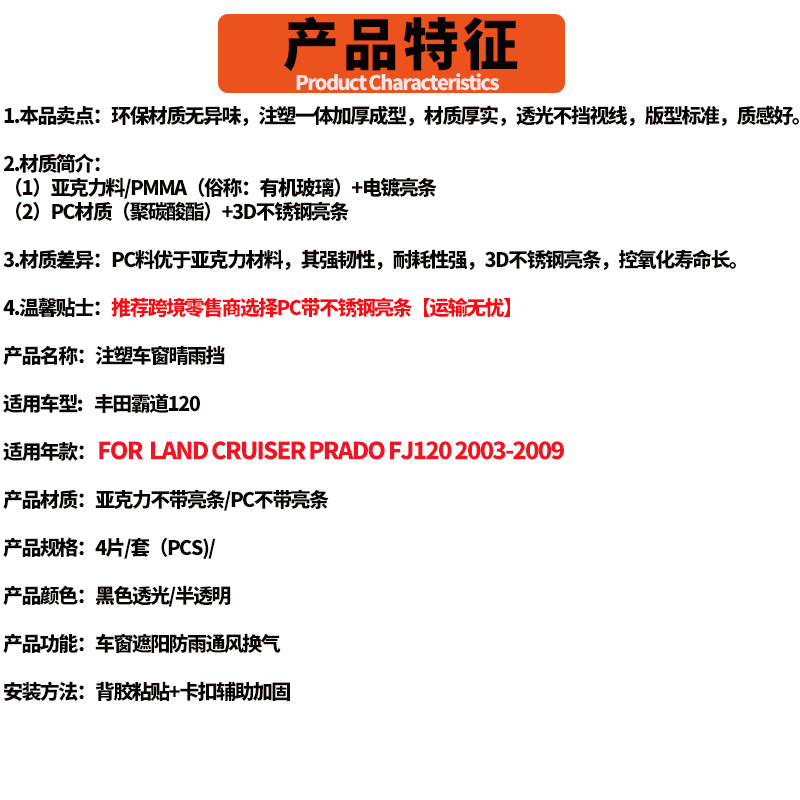비 차 비 방패를 방지하기 위해 2003-2009 Toyota 괴롭힘 Prado PRADO 창의 국경 간 적용스토어 가기
