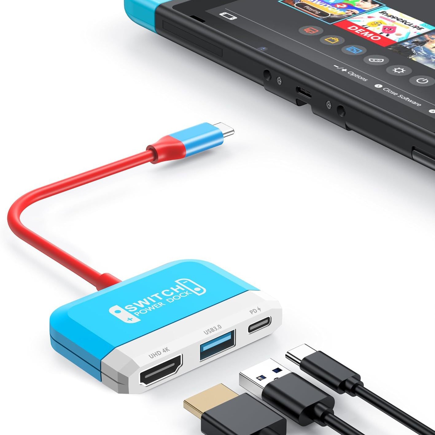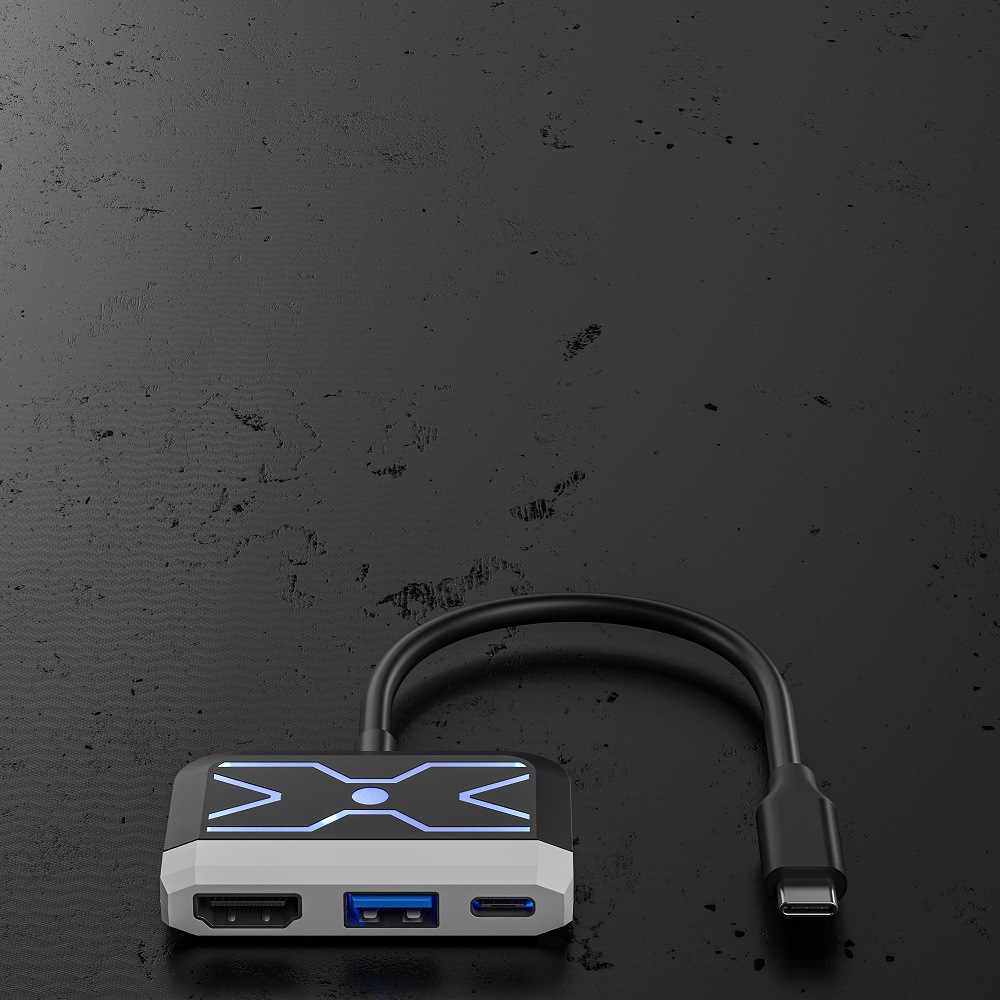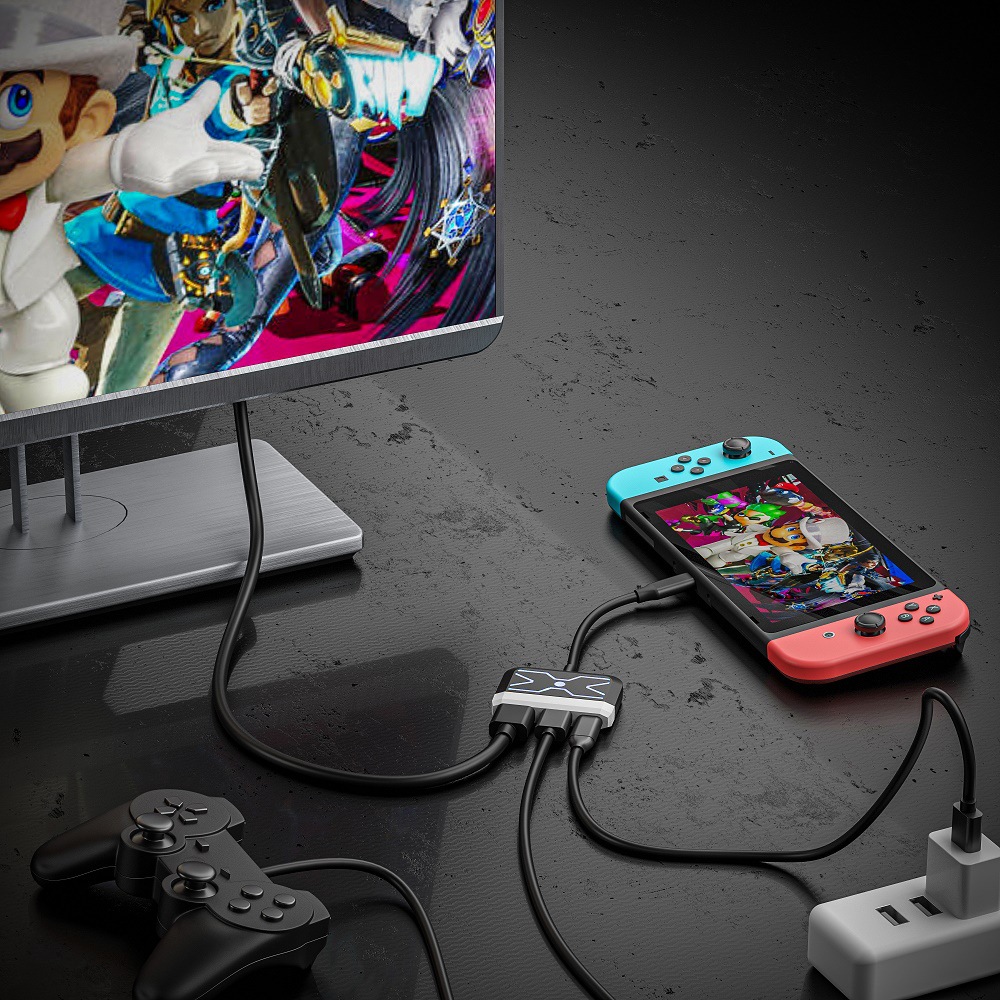USB C 3 대 1 도킹 스테이션 지원 화면 충전 데이터 전송, 1 대 3 다기능 도킹 스테이션스토어 가기